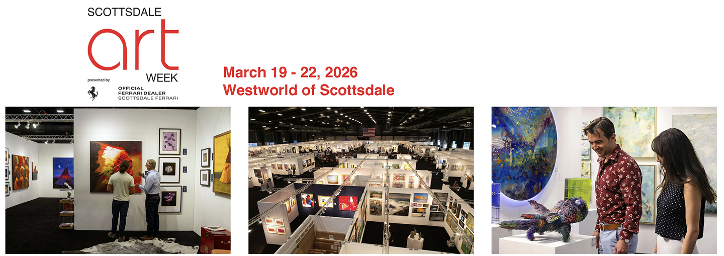 This spectacular event takes place at WestWorld’s expansive North Hall, a 120,000-square-foot facility. The 2026 edition of Scottsdale Art Week will offer patrons unique modern and contemporary works as well as historic, and Indigenous art. There is also cultural programing on topics such as art collection care and preservation, photography, global market trends, LatinX art, Indigenous contemporary art, the relationship between art and design, and Western art.