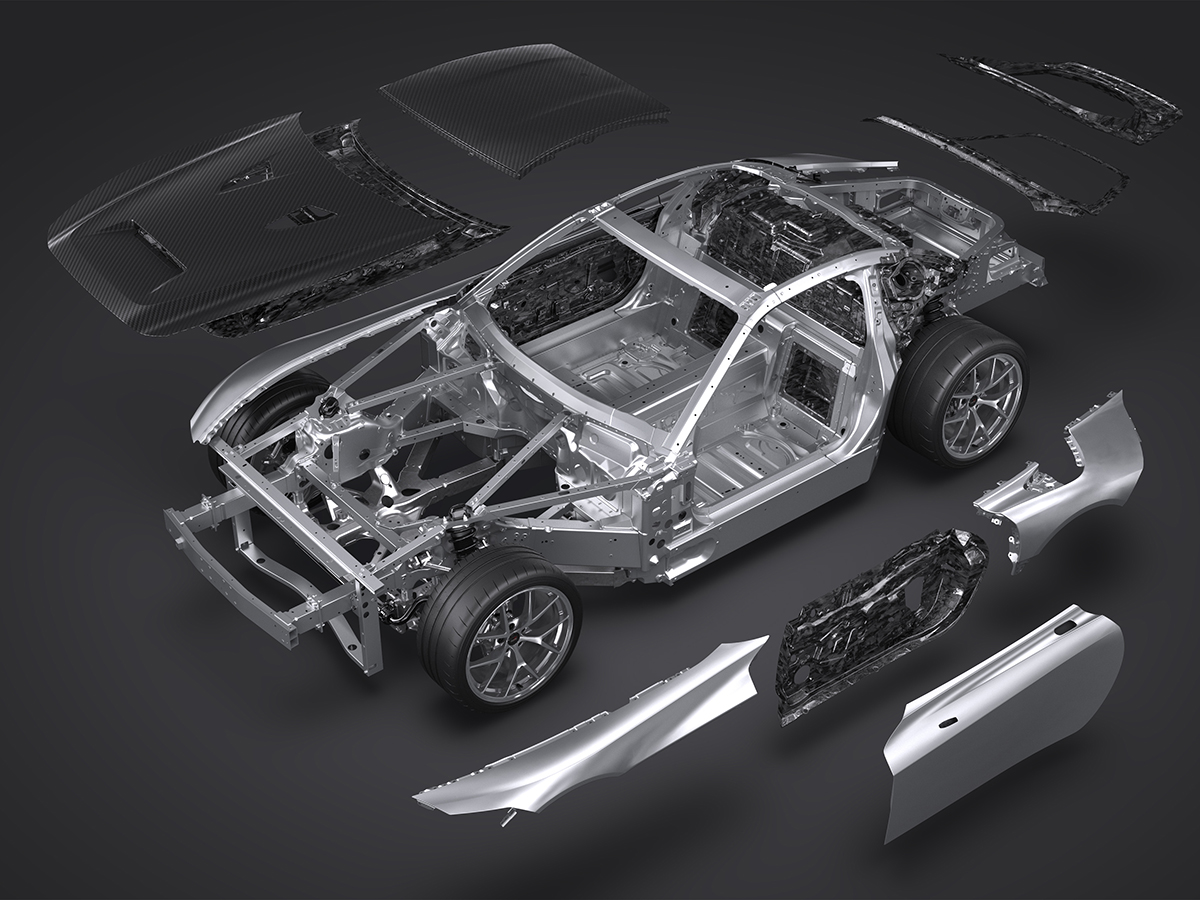As for low weight with high rigidity, which constitutes the second key element, the GR GT features Toyota’s first all-aluminum body frame. Additionally, the appropriate use of carbon fiber reinforced plastic (CFRP), plastic, and other materials in the body panels has resulted in a strong yet light body.