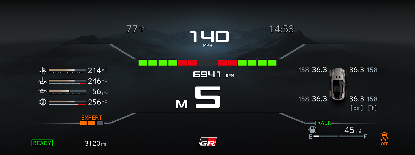 Exterior styling, in pursuit of aerodynamic performance, was also born from a process distinct from that of hitherto Toyota car-making. Although attention has conventionally been turned toward aerodynamics only after finalization of exterior styling, in the case of the GR GT, the ideal aerodynamic performance was established first, followed by consideration of exterior styling. Aerodynamics engineers and exterior designers worked together to achieve styling that pursues aerodynamic and cooling performance. Interior styling, as well, was meticulously crafted without compromise, based on ergonomics aimed at achieving the optimal driving position from a professional driver’s perspective and visibility needed for at-the-limit driving. Naturally, in addition to circuit driving, care has been taken to ensure suitability for everyday use.