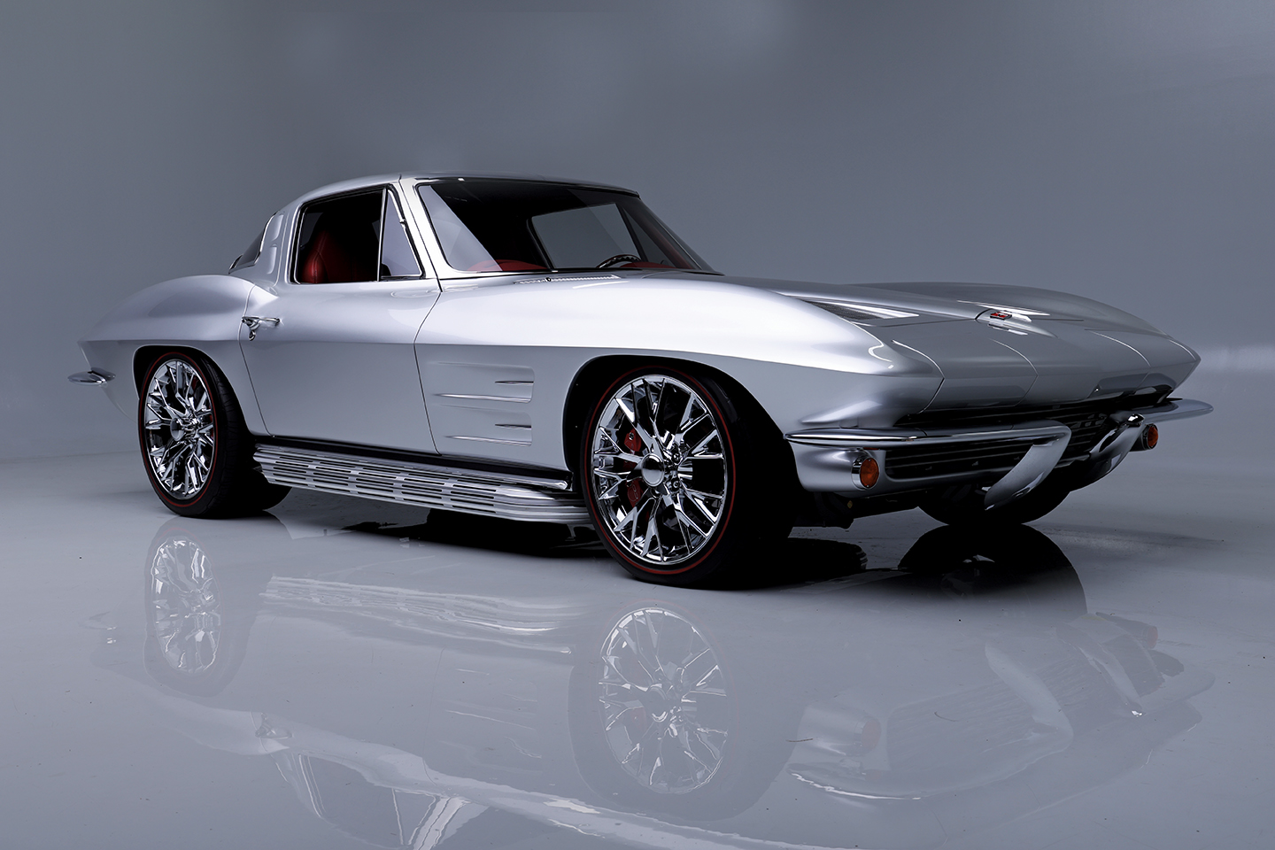 The second is a custom-built Split-Window by Jeff Hayes, completed in 2018. Beneath its silver body lies a modern 500hp LS3 Hot Cam engine paired to an automatic transmission, complemented by Z06 wheels, AutoMeter gauges, power accessories and a custom red interior. It’s a Resto-Mod interpretation that blends classic design with contemporary performance and comfort.