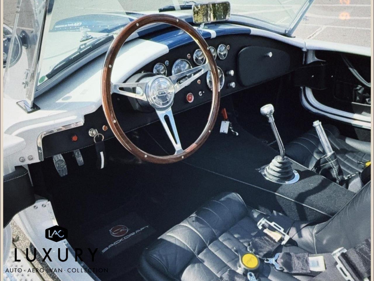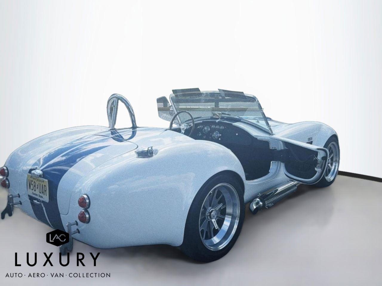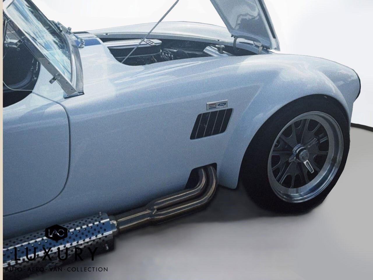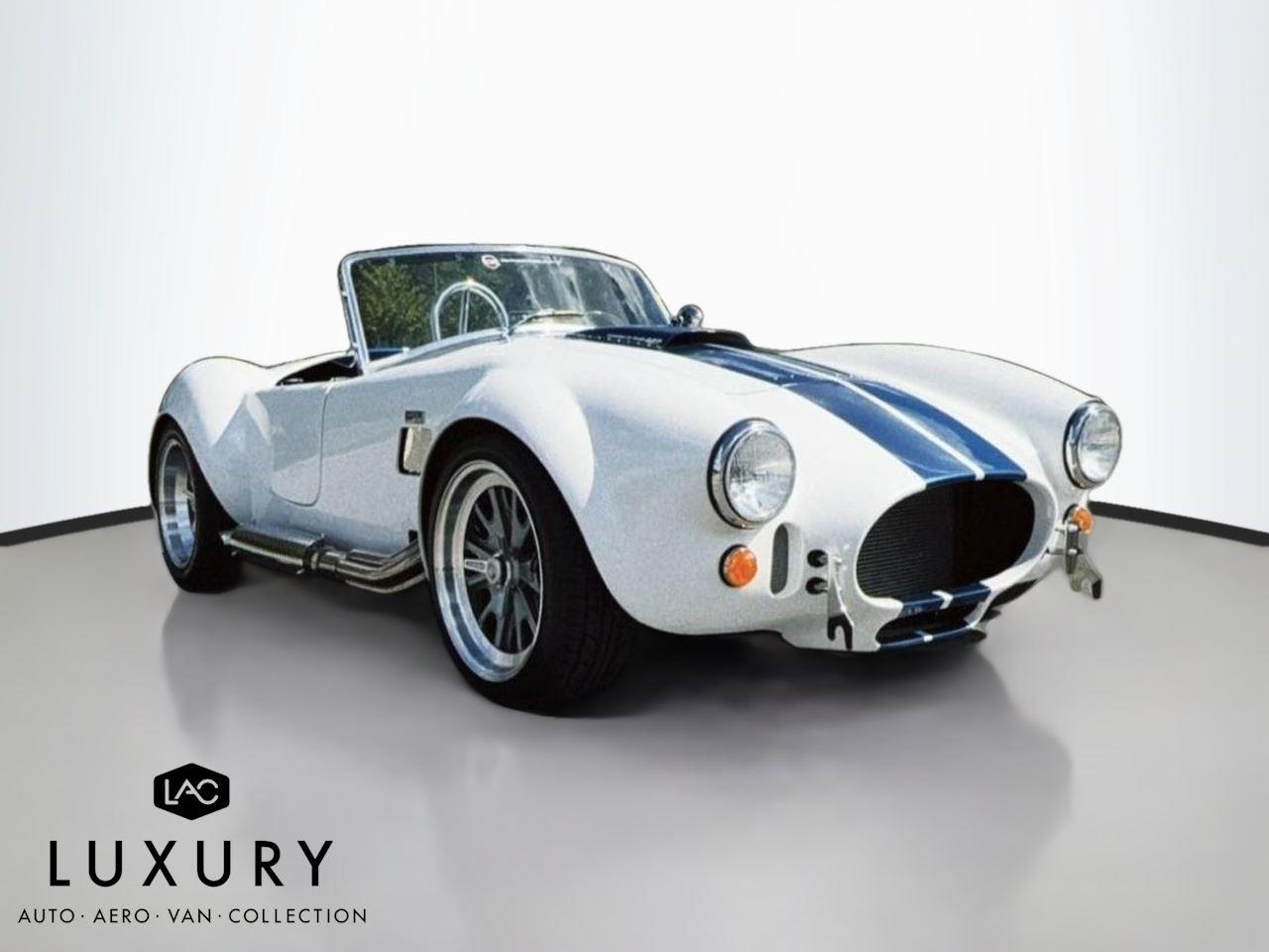 1965 SHELBY COBRA, Roadster Replica by Backdraft, EMINENT WHITE w/LIGHTNING BLUE STRIPES, BLACK BUCKET SEATS, Ford 427 V8 480hp, TREMEC T5, 5 Speed Manual Transmission, FEATURES & OPTIONS: Ford Racing Iconic built 427 V8 480hp, Holly carburetor, MSD ignition, Black Engine Bay, Brushed aluminum Ford Racing valve covers, Brushed aluminum air cleaner, Chrome accessories, Ceramic coated headers, Tremec T5 – 5 Speed manual. EXTERIOR Bespoke exterior color, Painted and polished finished 18 wheels, Twin stripes in blue, Ray Dot Mirror in chrome, Chromed side exhaust, Classic Style package. INTERIOR FEATURES: Center console in black carpet, Bespoke leather in Blue, German leather dash in blue, Full gauge package, Optional wood steering wheel, Optional black 4 Point safety harnesses, Chrome driver roll bar, Backdraft floormats, Carpeted trunk. SUSPENSION AND WHEELS/TIRES: 18 fully knockoff wheels, 245/40ZRx18 front, 295/40ZRx18 rear, BMW E36 suspension w/independent rear, BMW four wheel disc brakes, PLUS SO MUCH MOREnnnnAbout UsnLuxury Auto Collection is your premium source for luxury vehicles. Located in convenient sunny Scottsdale, AZ, we can ship vehicles wherever you are, from Los Angeles to Miami to Dallas, Chicago, Nashville, and beyond.nnLuxury Auto Collection is proud to be active supporters of a number of Non-Profits and organizations we feel do a great job in giving back to the community we live in and care about. Visit our website or contact us to find out more!nnWith you from A-ZnWhen it comes time to fund your next luxury vehicle, our finance department has all the resources you need.nWe have developed ongoing relationships with some of the top nationwide lenders, particularly those who specialize in financing premium brand-name automobiles. Apply for financing online to get a head start, or let us know if you’d prefer to work with your personal bank or lender. We’ll be happy to accommodate you.nnWe can’t wait to meet you!nn| Luxury Auto Collection | 9160 East Del Camino Dr, Suite B4 Scottsdale AZ 85258 | 480-582-0281 |