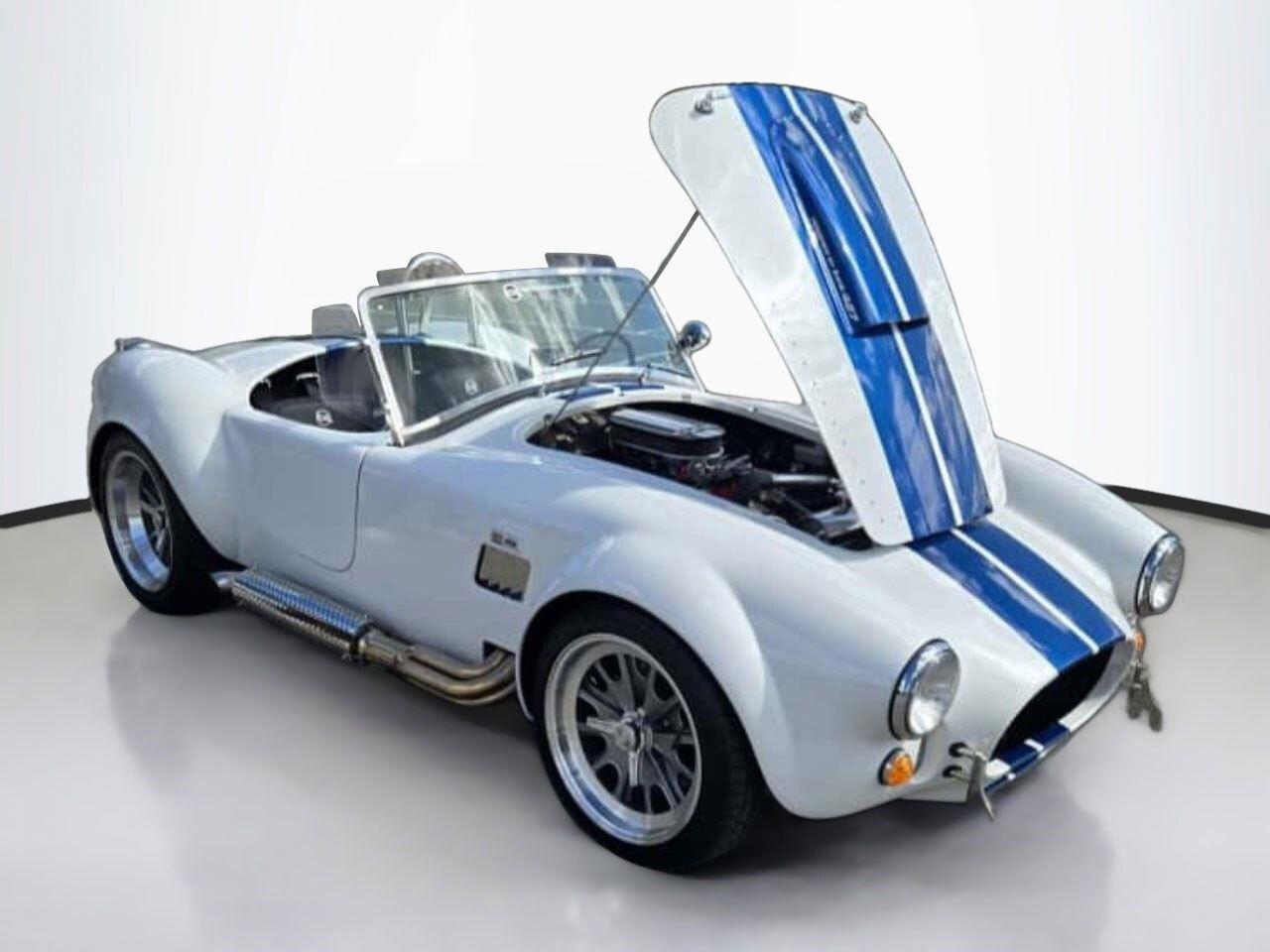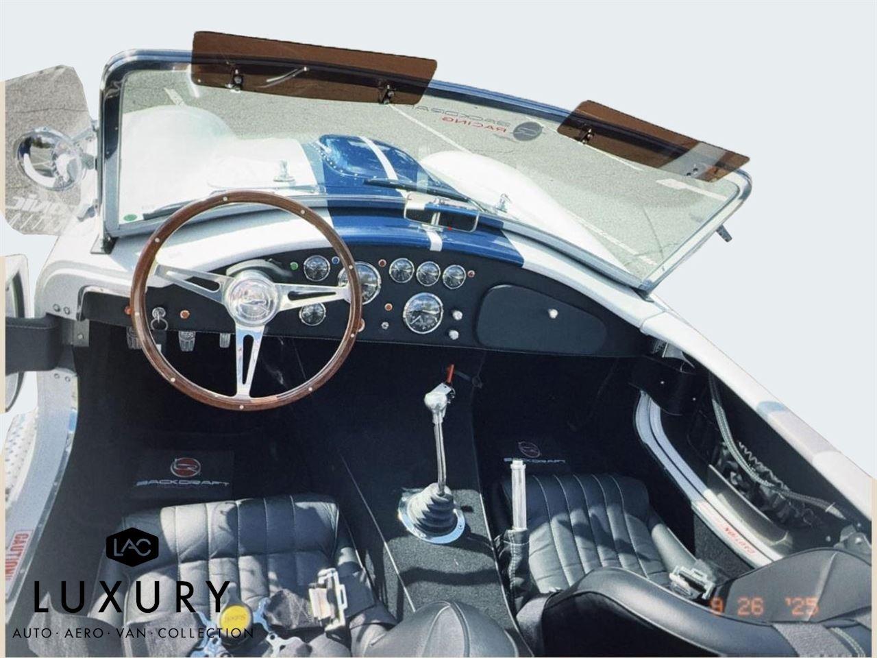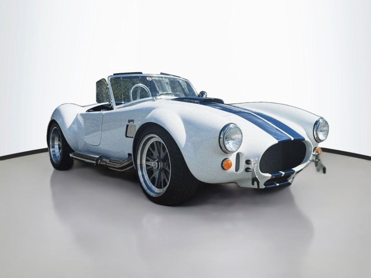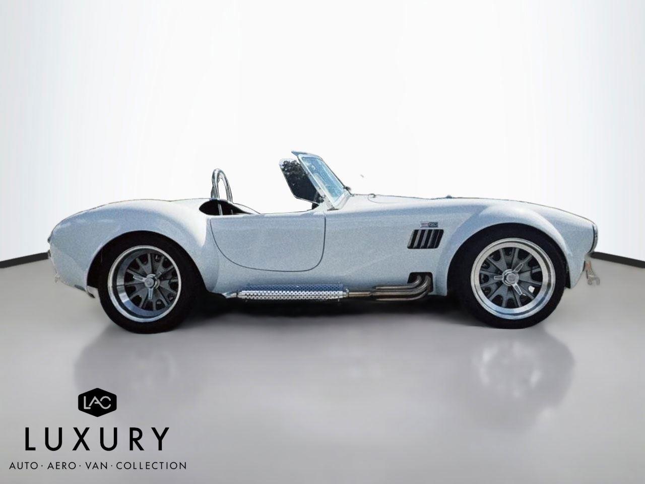 1965 SHELBY COBRA, Roadster Replica by Backdraft, EMINENT WHITE w/LIGHTNING BLUE STRIPES, BLACK BUCKET SEATS, Ford 427 V8 480hp, TREMEC T5, 5 Speed Manual Transmission, FEATURES & OPTIONS: Ford Racing Iconic built 427 V8 480hp, Holly carburetor, MSD ignition, Black Engine Bay, Brushed aluminum Ford Racing valve covers, Brushed aluminum air cleaner, Chrome accessories, Ceramic coated headers, Tremec T5 – 5 Speed manual. EXTERIOR Bespoke exterior color, Painted and polished finished 18 wheels, Twin stripes in blue, Ray Dot Mirror in chrome, Chromed side exhaust, Classic Style package. INTERIOR FEATURES: Center console in black carpet, Bespoke leather in Blue, German leather dash in blue, Full gauge package, Optional wood steering wheel, Optional black 4 Point safety harnesses, Chrome driver roll bar, Backdraft floormats, Carpeted trunk. SUSPENSION AND WHEELS/TIRES: 18 fully knockoff wheels, 245/40ZRx18 front, 295/40ZRx18 rear, BMW E36 suspension w/independent rear, BMW four wheel disc brakes, PLUS SO MUCH MOREnnnnAbout UsnLuxury Auto Collection is your premium source for luxury vehicles. Located in convenient sunny Scottsdale, AZ, we can ship vehicles wherever you are, from Los Angeles to Miami to Dallas, Chicago, Nashville, and beyond.nnLuxury Auto Collection is proud to be active supporters of a number of Non-Profits and organizations we feel do a great job in giving back to the community we live in and care about. Visit our website or contact us to find out more!nnWith you from A-ZnWhen it comes time to fund your next luxury vehicle, our finance department has all the resources you need.nWe have developed ongoing relationships with some of the top nationwide lenders, particularly those who specialize in financing premium brand-name automobiles. Apply for financing online to get a head start, or let us know if you’d prefer to work with your personal bank or lender. We’ll be happy to accommodate you.nnWe can’t wait to meet you!nn| Luxury Auto Collection | 9160 East Del Camino Dr, Suite B4 Scottsdale AZ 85258 | 480-582-0281 |