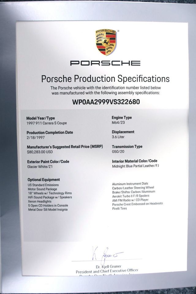 1997 993 2S WIDEBODY GLACIER WHITE on MIDNIGHT BLUE LTHR ONLY 28,032 MILES… ** DEALER PRINCIPAL PERSONAL PORSCHE COLLECTION ** ** MUSEUM QUALITY 100% ORIGINAL UNMOLESTED, NO PAINT, NO STORY, NO EXCUSE,NO DISAPPOINTMENT BIG OPTION SPEC EXAMPLE 993 2S WIDEBODY AIR-COOLED ** ** CLEAN CARFAX UPON YOUR REQUEST… ** EXCEEDING the EXPECTATIONS of OUR BUYERS!!! – Contact Internet Sales at 480-596-1611 or sales@scottsdalesport.com for more information. –