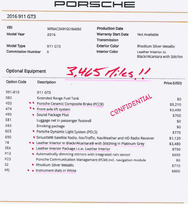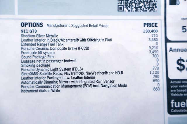 PORSCHE 911 GT3 RHODIUM SILVER on BLACK FULL LEATHER ONLY 3,465 MILES… ** FULL FRONT XPEL PPF PAINT PROTECTION ** PCCB: Porsche Carbon Ceramic Brakes,Yellow Calipers ** FRONT AXLE LIFT ** SPORT EXHAUST OPTION ** GT3 WHEELS FINISHED in PLATINUM ** FULL LEATHER/ALCANTARA PKG with LITE STITCHING ** HEADLINER FINISHED in ALCANTARA ** INTERIOR TRIM in BLACK LEATHER ** INSTRUMENT DIALS in WHITE ** EXTENDED RANGE FUEL TANK ** PDLS: Porsche Dynamic Light System ** BOSE SOUND PKG PLUS OPTION with SIRIUS-XM SAT. ** PCM: NAVIAGTION MANAGEMENT ** ALL KEYS, BOOKS,ORIGINAL WINDOW STICKER and DOCUMENTED SERVICE HISTORY from NEW CAR DELIVERY . ** PRIDE of OWNERSHIP FLAWLESS LOW 3,465mi EXAMPLE GT3 with ALL SUPPORTING DOCUMENTATION at DELIVERY… ** CLEAN CARFAX UPON YOUR REQUEST… ** We take GREAT PRIDE in our KNOWLEDGE of the MARKET. ** Our LOW MILE CARS are ALL HAND-PICKED for their QUALITY,EXCEPTIONAL CONDITION and ATTENTION to DETAIL. ** EXCEEDING the EXPECTATIONS or OUR CLIENTS est.1999 – Contact Internet Sales at 480-596-1611 or sales@scottsdalesport.com for more information. –