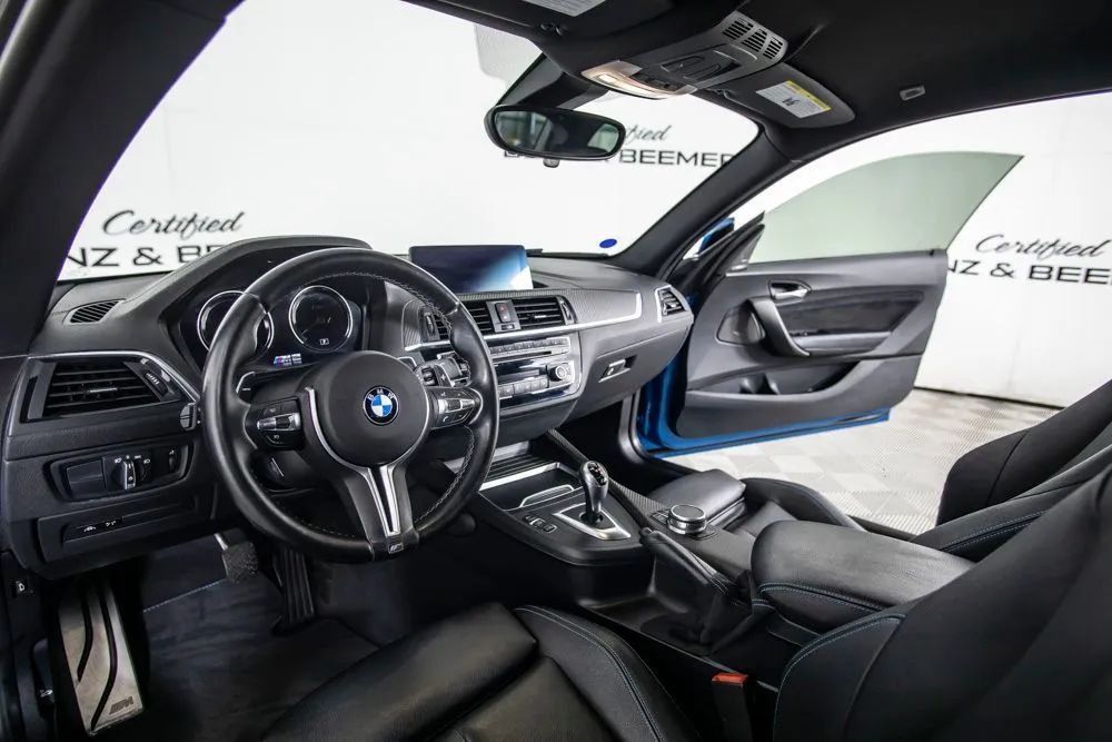 Compact, aggressive, and engineered for pure driving excitement, this 2018 BMW M2 delivers the raw performance and precision that define BMWs M division. With an original retail price of $60,495, this M2 stands out as one of the most engaging driver-focused cars in its class. Finished in iconic Long Beach Blue Metallic, this M2 commands attention with its wide stance, muscular fenders, and unmistakable performance styling. Its compact proportions and bold design make it both agile and visually striking, embodying the essence of a true sports coupe. Under the hood, a turbocharged inline-six engine delivers strong, responsive power, paired with the M Double Clutch Transmission with Drivelogic for lightning-fast gear changes and seamless acceleration. This setup provides an exhilarating driving experience, whether on winding roads or daily commutes. Inside, the cabin features black Dakota leather upholstery with blue contrast stitching, creating a sporty yet refined atmosphere. The Executive Package enhances comfort and technology with adaptive LED headlights, a heated steering wheel, and automatic high beams. Additional features such as wireless charging, a WiFi hotspot, and rear park distance control add modern convenience. Driver-focused technology like Active Driving Assistant and BMWs intuitive connectivity systems ensure both safety and ease of use, while the overall interior layout keeps the driver fully engaged. Rigorously Inspected & Serviced While this vehicle is not part of our Allstate Signature Certified due to the model year, it has undergone a thorough inspection and professional servicing to meet our high-quality standards The CBB Advantage: Your vehicle has been enhanced with the CBB Advantage Package, which includes: Premium Ceramic Paint Coating. Ceramic Window Tint. Applied immediately after our expert detailing process when the paint surface is at its cleanest these upgrades provide long-lasting protection, easier cleaning, and a showroom finish. While these enhancements typically cost $3,000+ at specialty shops, you’ll enjoy them for just $998 that will be added to the sales price. Ask a CBB Product Specialist about the many other benefits of the CBB Advantage. Ask a CBB Product Specialist about the many other benefits of the CBB Advantage. Certified Benz & Beemer Redefining the Luxury Car-Buying Experience. At Certified Benz & Beemer (CBB), our mission is simple: provide the highest-quality pre-owned luxury vehicles in a friendly, pressure-free environment. We believe that when trust and transparency lead the way, the result is the best car-buying experience you’ll ever have. Our dedication to customer satisfaction has earned us national recognition:DealerRater.com No. 1 Independent Dealer in the U.S. (2013) DealerRater.com No. 1 Independent Dealer in Arizona (since 2012) As the most trusted source for dealership reviews, DealerRater.com highlights what matters most: exceptional service, transparent pricing, and unforgettable experiences. Why Shop with CBB? We hand-select our luxury vehicles from across the Southwest and showcase them in our 92,000-square-foot climate-controlled showrooms. Every car we offer comes with full transparency: Best Upfront Pricing CARFAX Vehicle History Report Comprehensive Service Inspection Report Kelley Blue Book Report Market Analysis Report Certified Confidence For added peace of mind, every Certified vehicle includes: The CARFAX Vehicle History Report is based on data provided to CARFAX and may not include all information. We encourage every customer to review the CARFAX report, complete a physical inspection, and take a test drive for complete confidence. Second key & floor mats are included if pictured. Trade-in values can only be finalized after a physical inspection at our dealership. Certified Benz & Beemer. Luxury. Transparency. Tr