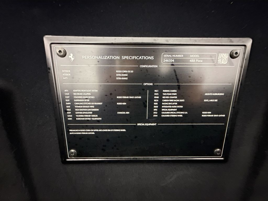 Navigation System|6 Speakers|AM/FM Radio|AM/FM radio|Radio data system|Air Conditioning|Automatic temperature control|Front dual zone A/C|Power steering|Power windows|Remote keyless entry|Steering wheel mounted audio controls|Adaptive suspension|Four wheel independent suspension|Speed-sensing steering|Traction control|4-Wheel Disc Brakes|ABS brakes|Ceramic disc brakes: front and rear|Dual front impact airbags|Dual front side impact airbags|Front anti-roll bar|Low tire pressure warning|Passenger cancellable airbag|Rear anti-roll bar|Brake assist|Electronic Stability Control|Exterior Parking Camera Rear|Rear Parking Sensors|Delay-off headlights|Fully automatic headlights|Headlight cleaning|Rear fog lights|Security system|Speed control|Bumpers: body-color|Heated door mirrors|Power door mirrors|Spoiler|Apple CarPlay|Compass|Driver door bin|Front reading lights|Illuminated entry|Leather steering wheel|Outside temperature display|Racing Carbon Seats|Sport steering wheel|Tachometer|Telescoping steering wheel|Tilt steering wheel|Trip computer|Voltmeter|Alcantara Seat Trim|Front Bucket Seats|Front Center Armrest|Passenger door bin|20″ Wheels|Alloy wheels|Rain sensing wipers|Variably intermittent wipers