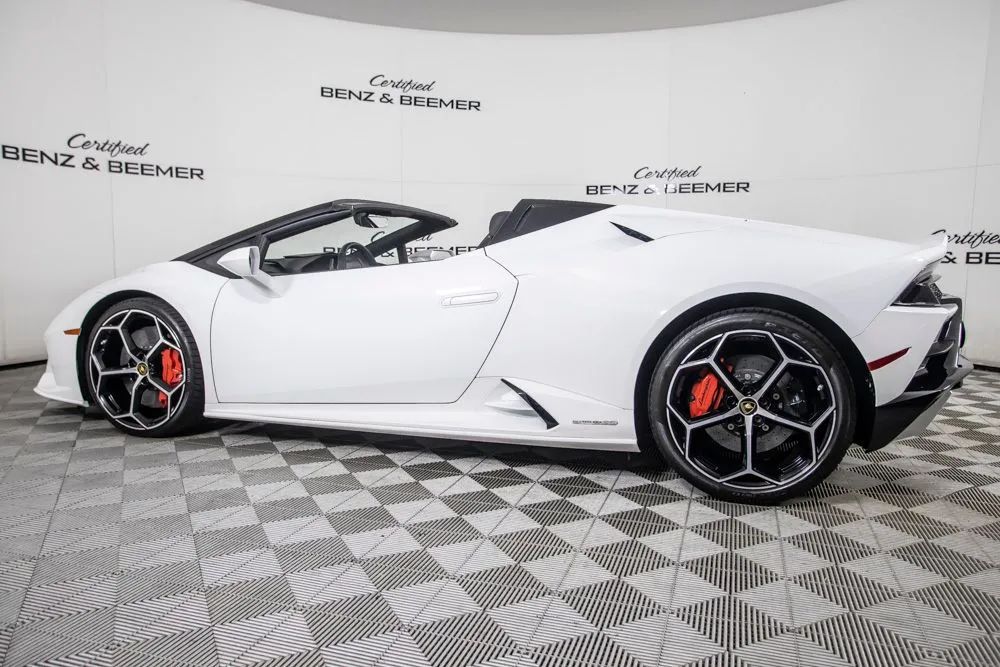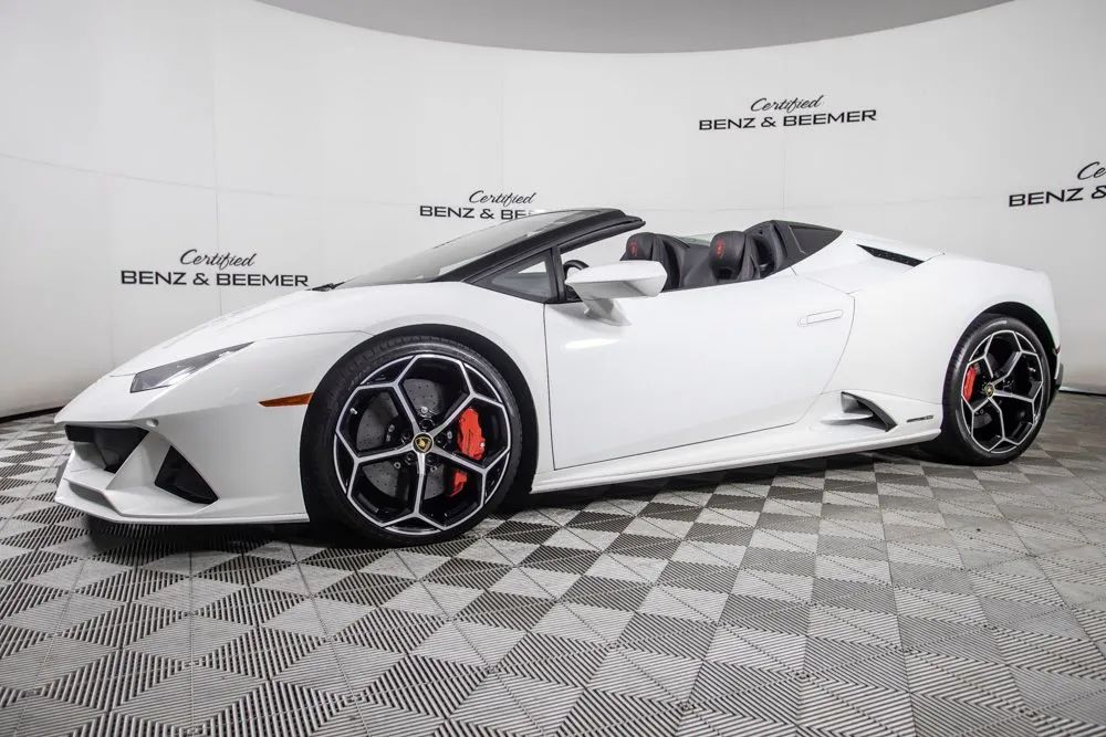 This 2020 Lamborghini Huracan EVO Spyder with only 2810 miles is a stunning combination of Italian supercar performance, open-top excitement, and precision engineering. Finished in striking white exterior paint, it features a Black interior with red hexagon-stitched seats that perfectly complement the cars aggressive and luxurious aesthetic. Powered by a naturally aspirated 5.2-liter V10 engine, the Huracan EVO Spyder delivers exhilarating acceleration and razor-sharp handling, providing an authentic supercar driving experience. The front axle lift system enhances versatility by allowing higher ground clearance for daily driving without compromising the vehicles low-slung performance stance. With its convertible design, advanced aerodynamics, and finely crafted interior, this 2020 Lamborghini Huracan EVO Spyder offers an unforgettable combination of speed, style, and luxury in a high-performance package. Certified & Inspected: The CBB Advantage: Your vehicle has been enhanced with the CBB Advantage Package, which includes: Premium Ceramic Paint Coating Ceramic Window Tint Applied immediately after our expert detailing process when the paint surface is at its cleanest these upgrades provide long-lasting protection, easier cleaning, and a showroom finish. While these enhancements typically cost $3,000+ at specialty shops, you’ll enjoy them for just $998 that will be added to the sales price. Ask a CBB Product Specialist about the many other benefits of the CBB Advantage. Certified Benz & Beemer Redefining the Luxury Car-Buying Experience. At Certified Benz & Beemer (CBB), our mission is simple: provide the highest-quality pre-owned luxury vehicles in a friendly, pressure-free environment. We believe that when trust and transparency lead the way, the result is the best car-buying experience you’ll ever have. Our dedication to customer satisfaction has earned us national recognition:DealerRater.com No. 1 Independent Dealer in the U.S. (2013)DealerRater.com No. 1 Independent Dealer in Arizona (since 2012) As the most trusted source for dealership reviews, DealerRater.com highlights what matters most: exceptional service, transparent pricing, and unforgettable experiences. Why Shop with CBB? We hand-select our luxury vehicles from across the Southwest and showcase them in our 92,000-square-foot climate-controlled showrooms. Every car we offer comes with full transparency: Best Upfront Pricing The CARFAX Vehicle History Report is based on data provided to CARFAX and may not include all information. We encourage every customer to review the CARFAX report, complete a physical inspection, and take a test drive for complete confidence. Second key & floor mats are included if pictured. Trade-in values can only be finalized after a physical inspection at our dealership. Certified Benz & Beemer. Luxury. Transparency. Trust.