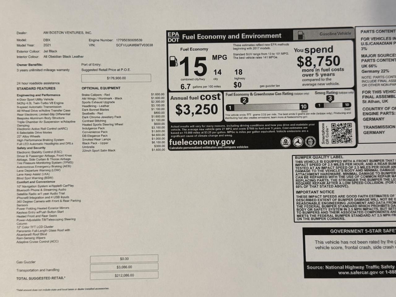 Luxury Auto Collection is pleased to offer this 2021 Aston Martin DBX | Forged Carbon Badges | Carbon Spoiler .nnNo Accidents! n nOTHER NOTABLE FEATURES AND OPTIONS YOU SHOULD KNOW ABOUT:nnnnnn