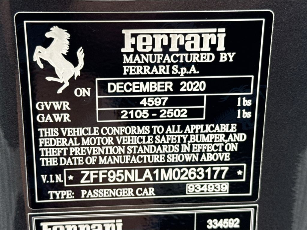 Navigation System|6 Speakers|AM/FM Radio|AM/FM radio|Radio data system|Air Conditioning|Automatic temperature control|Rear window defroster|Heads-Up Display|Power driver seat|Power steering|Power windows|Remote keyless entry|Steering wheel mounted audio controls|Adaptive suspension|Four wheel independent suspension|Speed-sensing steering|Traction control|4-Wheel Disc Brakes|ABS brakes|Ceramic disc brakes: front and rear|Dual front impact airbags|Dual front side impact airbags|Front anti-roll bar|Low tire pressure warning|Passenger cancellable airbag|Rear anti-roll bar|Brake assist|Electronic Stability Control|Exterior Parking Camera Rear|Rear Parking Sensors|Delay-off headlights|Fully automatic headlights|Rear fog lights|Security system|Speed control|Bumpers: body-color|Heated door mirrors|Power door mirrors|Spoiler|Apple CarPlay|Compass|Driver door bin|Front reading lights|Illuminated entry|Leather steering wheel|Outside temperature display|Overhead console|Sport steering wheel|Standard Seats|Tachometer|Telescoping steering wheel|Tilt steering wheel|Trip computer|Voltmeter|Front Bucket Seats|Front Center Armrest|Leather Seat Trim|Power passenger seat|Passenger door bin|Alloy wheels|Wheels: 20″ x 9.5″ Fr & 20″ x 11.5″ Rr|Rain sensing wipers|Variably intermittent wipers