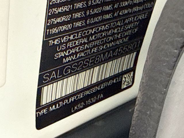 Air Conditioning, Climate Control, Dual Zone Climate Control, Cruise Control, Tinted Windows, Power Steering, Power Windows, Power Mirrors, Leather Steering Wheel, Leather Shifter, Power Drivers Seat, Power Passenger Seat, Memory Seat Position, Rear Air Conditioning, Wood Trim, Clock, Tachometer, Digital Info Center, Homelink System, Tilt Steering Wheel, Telescoping Steering Wheel, Steering Wheel Radio Controls, Sunroof, Moonroof, Driver Airbag, Passenger Airbag, Side Airbags, Keyless Entry, Security System, ABS Brakes, Traction Control, Dynamic Stability, Rear Defogger, Fog Lights, Intermittent Wipers, AM/FM, Anti-Theft, Factory Premium Sound System, Leather Interior Surface, Four Wheel Drive,3.31 Axle Ratio,Wheels: 21 7 Split-Spoke Gloss Silver,Wheels: 22 9 Split-Spoke Gloss Black,20-Way Htd/Cooled Front Bucket Seats,20-Way Heated/Cooled Front Bucket Seats, Perforated Windsor Leather Seat Trim, Park Pro Pack, Blind Spot Assist,360 Surround Camera, All Terrain Progress Control (ATPC),Terrain Response 2,Radio: 825W Meridian Surround Sound System,110V/180W Power Outlet Domestic Plug Socket, Suedecloth Headlining, Black Exterior Pack, Black Contrast Roof, Basic Rear Seat Convenience Pack, Chrome Locks Wheel Protection Pack, Exterior Protection Pack,360 Parking Aid, Narvik Black Mirror Caps, Clear Exit Monitor, Narvik Black Door Handle Surrounds, Narvik Black Front Tow Eye Cover, Narvik Black Grill Mesh, Narvik Black Hood & Tailgate Lettering, Driver Condition Monitor, Parallel/Perpendicular Park & Park Exit, Rear Traffic Monitor, Narvik Black Side Vent/Accent Graphic, Narvik Black Inner Surround, Narvik Black Tailgate Finisher,4-Wheel Disc Brakes, Apple CarPlay & Android Auto, Emergency communication system: InControl Protect, Navigation system: InControl Navigation Pro, Auto High-beam Headlights, Exterior Parking Camera Rear, Premium audio system: Meridian, Driver’s Seat Mounted Armrest, Front Center Armrest with Storage, Compass,19 Speakers, Heads-Up Display, Auto-dimming Rear-View mirror, Weather band radio, Ventilated front seats, Turn signal indicator mirrors, Telescoping steering wheel, Steering wheel memory, Split folding rear seat, Rear window wiper, Rear seat center armrest, Rear reading lights, Rear anti-roll bar, Rain sensing wipers, Radio data system, Power driver seat, Power door mirrors, Power adjustable front head restraints, Passenger vanity mirror, Passenger seat mounted armrest, Passenger door bin, Overhead console, Overhead airbag, Outside temperature display, Occupant sensing airbag, Low tire pressure warning, Illuminated entry, Heated steering wheel, Heated rear seats, Heated front seats, Heated door mirrors, Headlight cleaning, Head restraints memory, Genuine wood door panel insert, Genuine wood dashboard insert, Genuine wood console insert, Fully automatic headlights, Front reading lights, Front anti-roll bar, Four wheel independent suspension, Dual front side impact airbags, Dual front impact airbags, Driver vanity mirror, Driver door bin, Door auto-latch, Delay-off headlights, Bumpers: body-color, Brake assist, Automatic temperature control, Auto-leveling suspension, Auto-dimming door mirrors, Anti-whiplash front head restraints, Adjustable head restraints: driver and passenger, Adaptive suspension, Front Bucket Seats Air Conditioned Seats, Carpeted Floor Mats, Center Arm Rest, Child Proof Door Locks, Daytime Running Lights, Front AC Seats, Front Heated Seats, Heads Up Display, Heated Mirrors, Overhead Console, Parking Sensors, Power Lift Gate, Rear Fog Lamps, Rear Spoiler, Rear Spoiler, Rear Wipers, Roll Stability Control, Side Curtain Airbags, Sliding Rear Window, Tire Pressure Monitor,Vanity Mirrors –