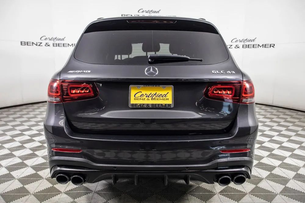 With an original MSRP of $72,015, this 2021 Mercedes-Benz GLC 43 AMG delivers an exciting blend of performance, luxury, and advanced technology in a compact performance SUV. Powered by AMG-tuned engineering and wrapped in aggressive styling, the GLC 43 offers a dynamic driving experience while maintaining everyday comfort and versatility. The interior is finished in distinctive AMG Power Red and Black leather, originally priced at $1,620, creating a bold and sporty cabin atmosphere. A panoramic roof, originally priced at $1,500, enhances the sense of space and allows natural light to fill the interior. The driver-focused cockpit is highlighted by a 12.3-inch digital instrument cluster that delivers crisp graphics and customizable displays, reinforcing the vehicles modern, performance-oriented design. Exterior styling is elevated by the AMG Night Package and 21-inch AMG split 10-spoke wheels, originally priced at $1,500, which give the GLC 43 a commanding stance and aggressive road presence. The Exterior Lighting Package and Adaptive Highbeam Assist provide enhanced visibility and a distinctive lighting signature in all driving conditions. Hands-Free Access adds convenience when loading cargo, while Surround View delivers a comprehensive 360-degree perspective to assist with parking and low-speed maneuvering. Entertainment and connectivity are handled by the Burmester premium sound system, delivering rich, immersive audio throughout the cabin. Integrated navigation with GPS and Apple CarPlay ensure seamless access to navigation, music, and communication, while a rearview camera adds everyday practicality. Combining AMG performance, bold design, and advanced luxury features, this 2021 Mercedes-Benz GLC 43 AMG stands out as a well-equipped performance SUV designed for drivers who demand both excitement and refinement. Certified & Inspected: The CBB Advantage: Your vehicle has been enhanced with the CBB Advantage Package, which includes: Premium Ceramic Paint Coating Ceramic Window Tint Applied immediately after our expert detailing process when the paint surface is at its cleanest these upgrades provide long-lasting protection, easier cleaning, and a showroom finish. While these enhancements typically cost $3,000+ at specialty shops, you’ll enjoy them for just $998 that will be added to the sales price. Ask a CBB Product Specialist about the many other benefits of the CBB Advantage. Certified Benz & Beemer Redefining the Luxury Car-Buying Experience. At Certified Benz & Beemer (CBB), our mission is simple: provide the highest-quality pre-owned luxury vehicles in a friendly, pressure-free environment. We believe that when trust and transparency lead the way, the result is the best car-buying experience you’ll ever have. Our dedication to customer satisfaction has earned us national recognition:DealerRater.com No. 1 Independent Dealer in the U.S. (2013)DealerRater.com No. 1 Independent Dealer in Arizona (since 2012) As the most trusted source for dealership reviews, DealerRater.com highlights what matters most: exceptional service, transparent pricing, and unforgettable experiences. Why Shop with CBB? We hand-select our luxury vehicles from across the Southwest and showcase them in our 92,000-square-foot climate-controlled showrooms. Every car we offer comes with full transparency: Best Upfront Pricing The CARFAX Vehicle History Report is based on data provided to CARFAX and may not include all information. We encourage every customer to review the CARFAX report, complete a physical inspection, and take a test drive for complete confidence. Second key & floor mats are included if pictured. Trade-in values can only be finalized after a physical inspection at our dealership. Certified Benz & Beemer. Luxury. Transparency. Trust.