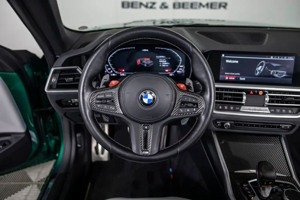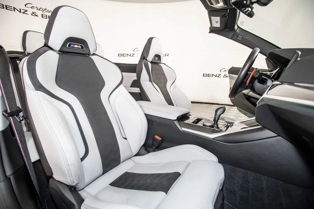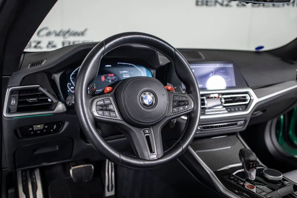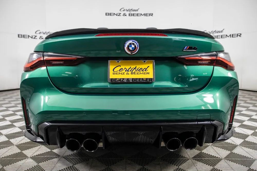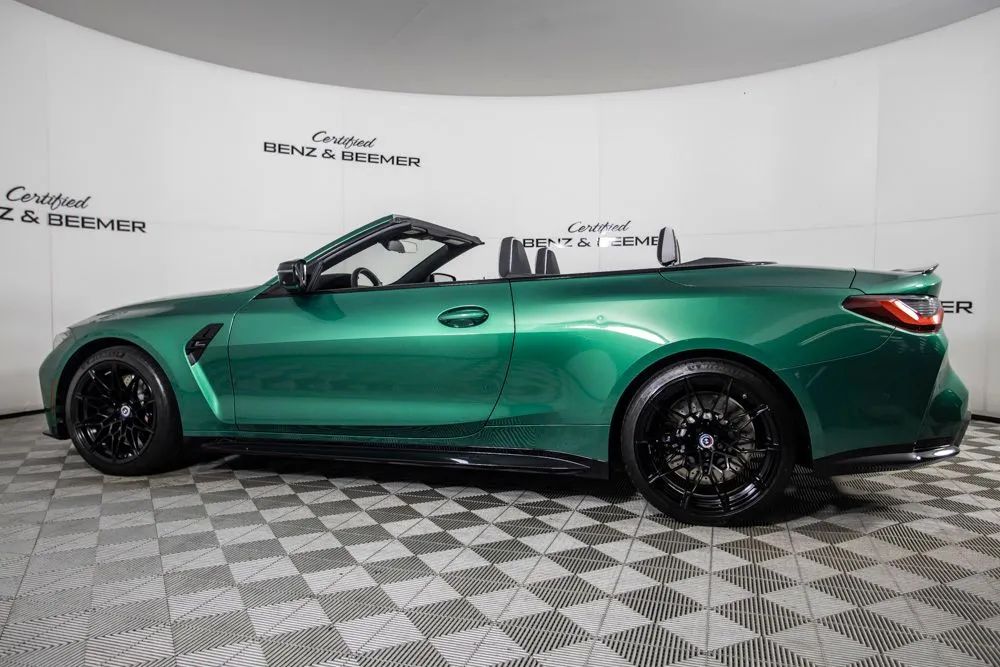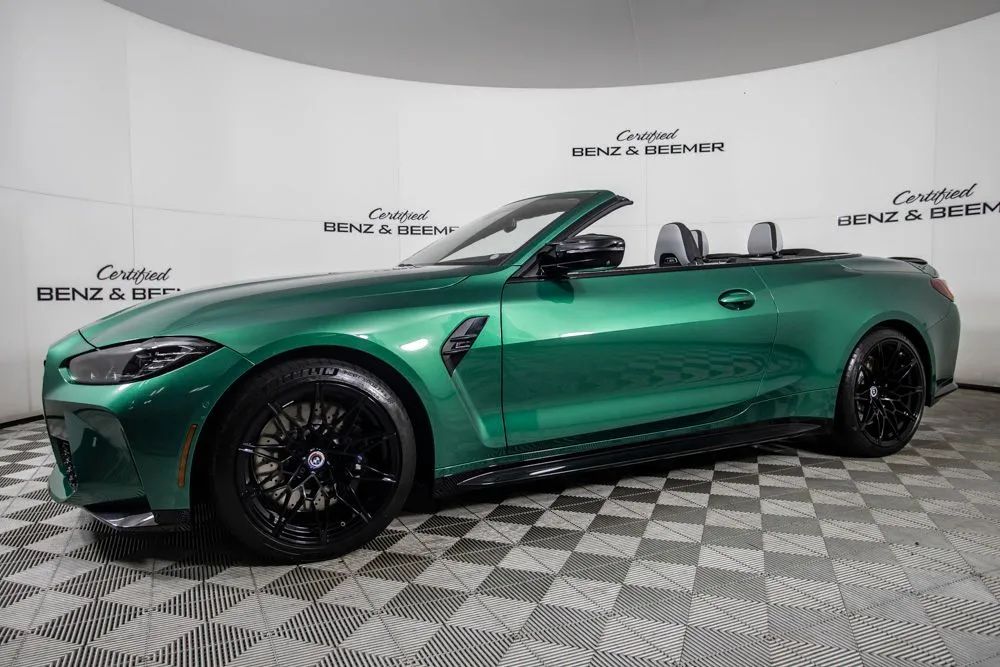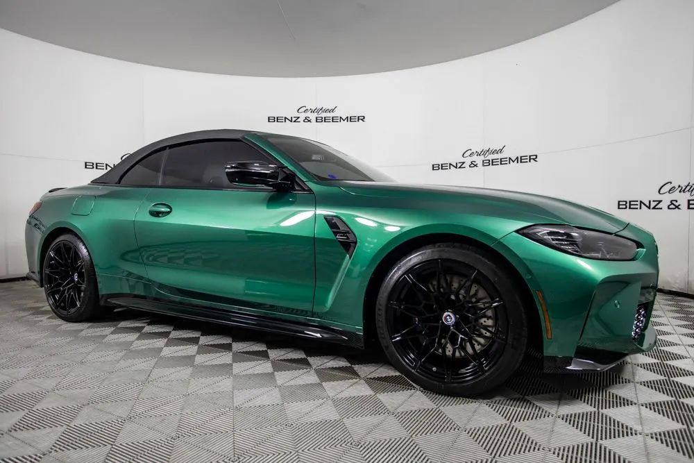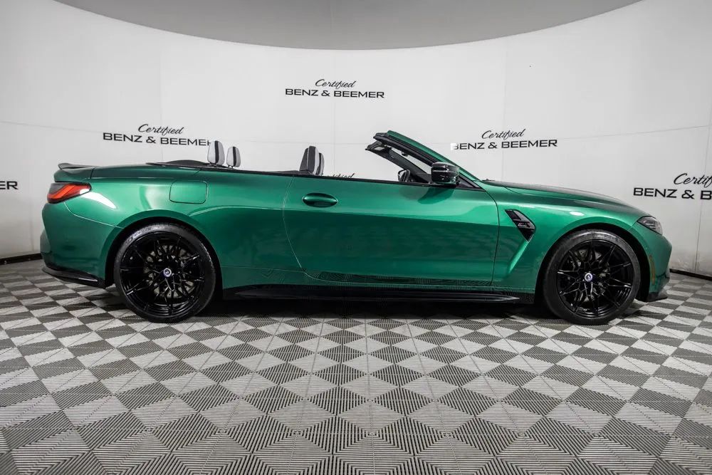 With an original MSRP of $91,795, this 2022 BMW M4 Competition Convertible delivers exhilarating open-air performance paired with refined luxury and cutting-edge technology. Finished in striking Isle of Man Green Metallic, the exterior is further enhanced by M Shadowline lights and M compound brakes with black calipers, emphasizing its aggressive M-performance presence and track-inspired design. The interior features a sophisticated Silverstone and Black leather cabin accented by carbon fiber interior trim, creating a bold yet refined driving environment. Equipped with the Executive Package, originally priced at $1,350, this M4 Competition Convertible offers heated and ventilated front seats for year-round comfort. The Parking Assistance Package adds advanced parking support for enhanced confidence in tight spaces, while remote engine start provides added convenience. Entertainment and connectivity are elevated by the Harman Kardon premium sound system and Apple CarPlay for seamless smartphone integration. A rearview camera enhances visibility when maneuvering, completing a well-rounded suite of advanced features. Combining breathtaking performance, luxurious appointments, and the freedom of convertible driving, this 2022 BMW M4 Competition Convertible is an exceptional choice for drivers seeking uncompromising performance with open-top excitement. Certified & Inspected: This vehicle has been rigorously inspected and is backed by a 2-Year/100,000 Mile Signature Certified Limited Warranty, powered by Allstate The CBB Advantage: Your vehicle has been enhanced with the CBB Advantage Package, which includes: Premium Ceramic Paint Coating Ceramic Window Tint Applied immediately after our expert detailing process when the paint surface is at its cleanest these upgrades provide long-lasting protection, easier cleaning, and a showroom finish. While these enhancements typically cost $3,000+ at specialty shops, you’ll enjoy them for just $998 that will be added to the sales price. Ask a CBB Product Specialist about the many other benefits of the CBB Advantage. Certified Benz & Beemer Redefining the Luxury Car-Buying Experience. At Certified Benz & Beemer (CBB), our mission is simple: provide the highest-quality pre-owned luxury vehicles in a friendly, pressure-free environment. We believe that when trust and transparency lead the way, the result is the best car-buying experience you’ll ever have. Our dedication to customer satisfaction has earned us national recognition:DealerRater.com No. 1 Independent Dealer in the U.S. (2013)DealerRater.com No. 1 Independent Dealer in Arizona (since 2012) As the most trusted source for dealership reviews, DealerRater.com highlights what matters most: exceptional service, transparent pricing, and unforgettable experiences. Why Shop with CBB? We hand-select our luxury vehicles from across the Southwest and showcase them in our 92,000-square-foot climate-controlled showrooms. Every car we offer comes with full transparency: Best Upfront Pricing The CARFAX Vehicle History Report is based on data provided to CARFAX and may not include all information. We encourage every customer to review the CARFAX report, complete a physical inspection, and take a test drive for complete confidence. Second key & floor mats are included if pictured. Trade-in values can only be finalized after a physical inspection at our dealership. Certified Benz & Beemer. Luxury. Transparency. Trust.