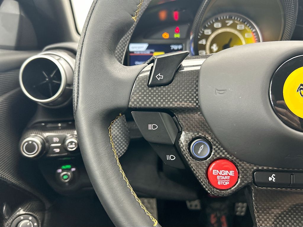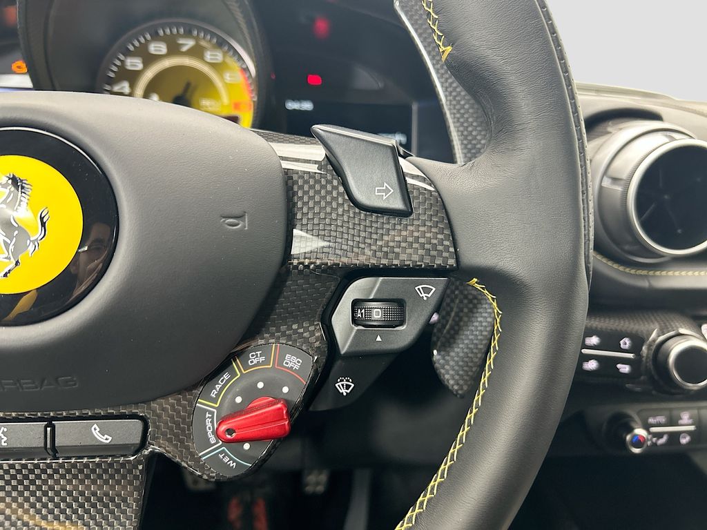 Navigation System|6 Speakers|AM/FM radio: SiriusXM|Radio data system|Radio: AM/FM Audio System|Air Conditioning|Automatic temperature control|Front dual zone A/C|Power driver seat|Power steering|Power windows|Remote keyless entry|Steering wheel mounted audio controls|Adaptive suspension|Four wheel independent suspension|Speed-sensing steering|Traction control|4-Wheel Disc Brakes|ABS brakes|Ceramic disc brakes: front and rear|Dual front impact airbags|Dual front side impact airbags|Front anti-roll bar|Low tire pressure warning|Passenger cancellable airbag|Rear anti-roll bar|Electronic Stability Control|Exterior Parking Camera Rear|Delay-off headlights|Fully automatic headlights|Rear fog lights|Security system|Speed control|Auto-dimming door mirrors|Bumpers: body-color|Heated door mirrors|Power door mirrors|Spoiler|Apple CarPlay|Auto-dimming Rear-View mirror|Driver door bin|Front reading lights|Garage door transmitter|Illuminated entry|Leather steering wheel|Outside temperature display|Overhead console|Passenger vanity mirror|Sport steering wheel|Squared Racing Carbon Seats|Tachometer|Telescoping steering wheel|Tilt steering wheel|Trip computer|Voltmeter|Alcantara Seat Trim|Front Bucket Seats|Front Center Armrest|Power passenger seat|Passenger door bin|Alloy wheels|Wheels: 20″ x 10″ J Fr & 20″ x 11.5″ J Rr Forged|Rain sensing wipers|Variably intermittent wipers