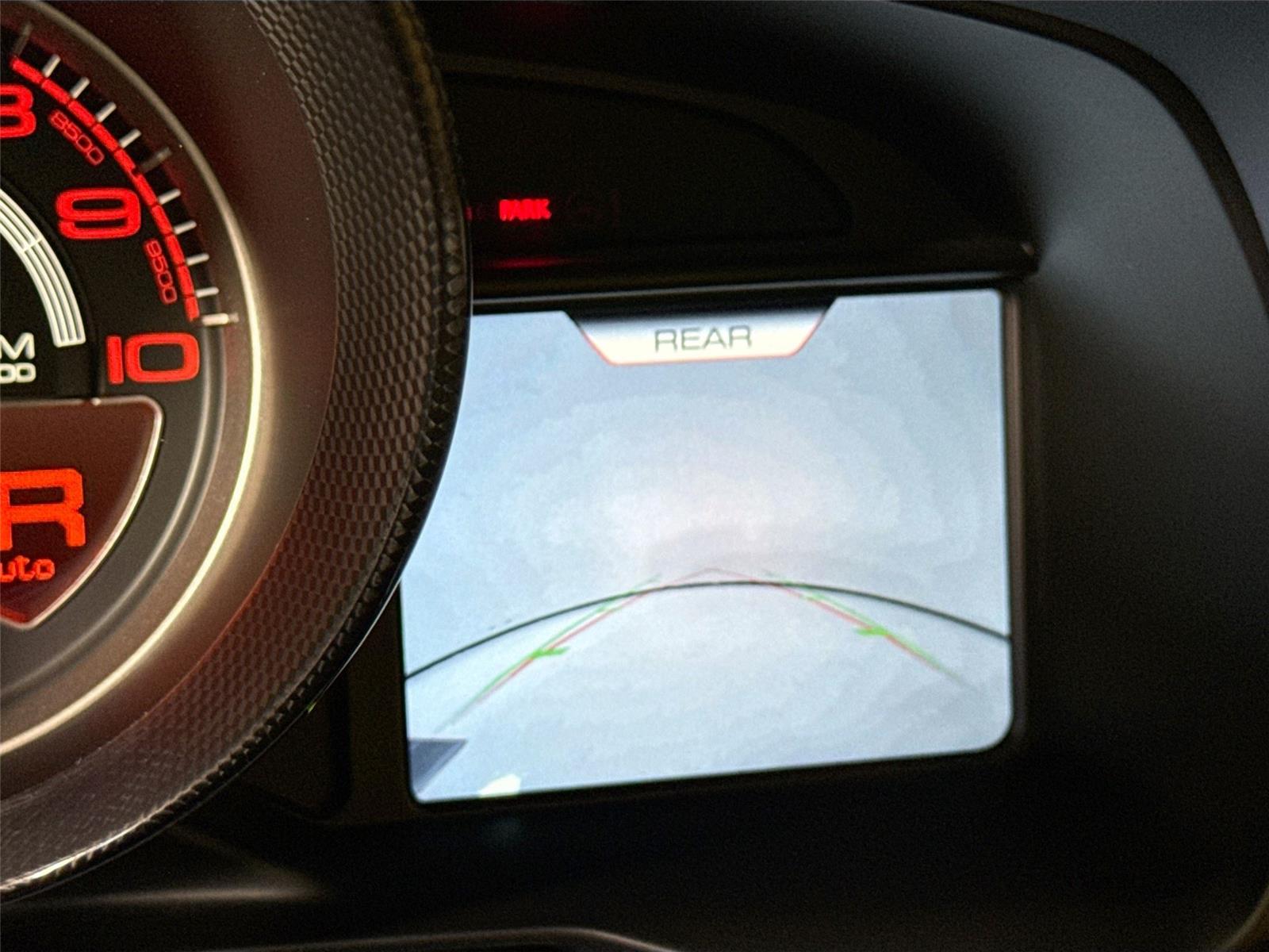 - The vehicle is equipped with a camera that displays an image of the area behind the vehicle on an interior display.