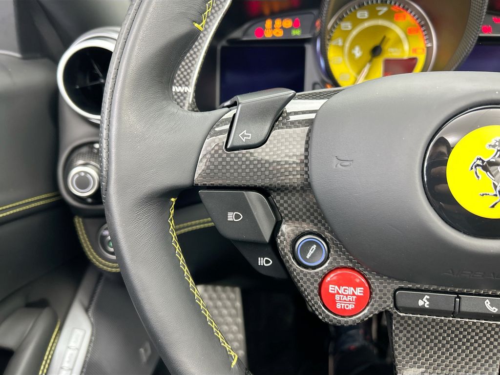 Navigation System|Convertible Hard Top|7 Speakers|AM/FM radio: SiriusXM|Radio data system|Radio: AM/FM/Satellite|Air Conditioning|Automatic temperature control|Front dual zone A/C|Rear window defroster|Power driver seat|Power steering|Power windows|Remote keyless entry|Steering wheel mounted audio controls|Four wheel independent suspension|Speed-sensing steering|Traction control|4-Wheel Disc Brakes|ABS brakes|Ceramic disc brakes: front and rear|Dual front impact airbags|Dual front side impact airbags|Front anti-roll bar|Integrated roll-over protection|Low tire pressure warning|Rear anti-roll bar|Yellow Brake Calipers|Electronic Stability Control|Delay-off headlights|Fully automatic headlights|Rear fog lights|Security system|Speed control|Black Ceramic Exhaust Pipes|Bumpers: body-color|Exterior Carbon Components|Heated door mirrors|Power door mirrors|Spoiler|Aluminum Driver & Passenger Footrest|Apple CarPlay|Carbon Interior Upgrade|Convertible roof lining|Driver door bin|Front reading lights|Illuminated entry|Outside temperature display|Overhead console|Passenger vanity mirror|Power convertible roof|Rear seat center armrest|Squared Pattern Seats|Tachometer|Telescoping steering wheel|Tilt steering wheel|Trip computer|Yellow Rev Counter|Front Bucket Seats|Front Center Armrest|Leather Seat Trim|Power passenger seat|Passenger door bin|Alloy wheels|Wheels: 20″ Forged Dynamic Diamond|Glass rear window|Rain sensing wipers|Variably intermittent wipers