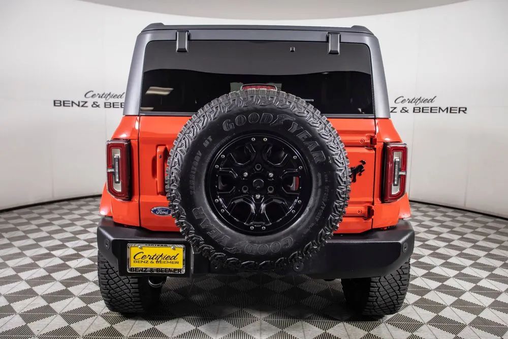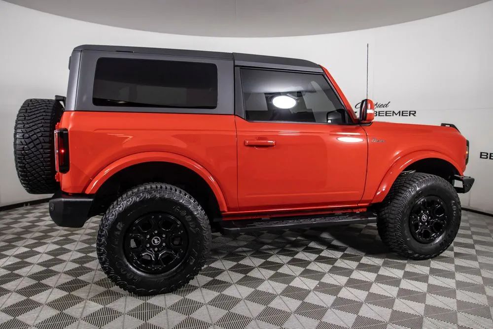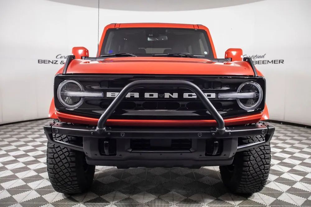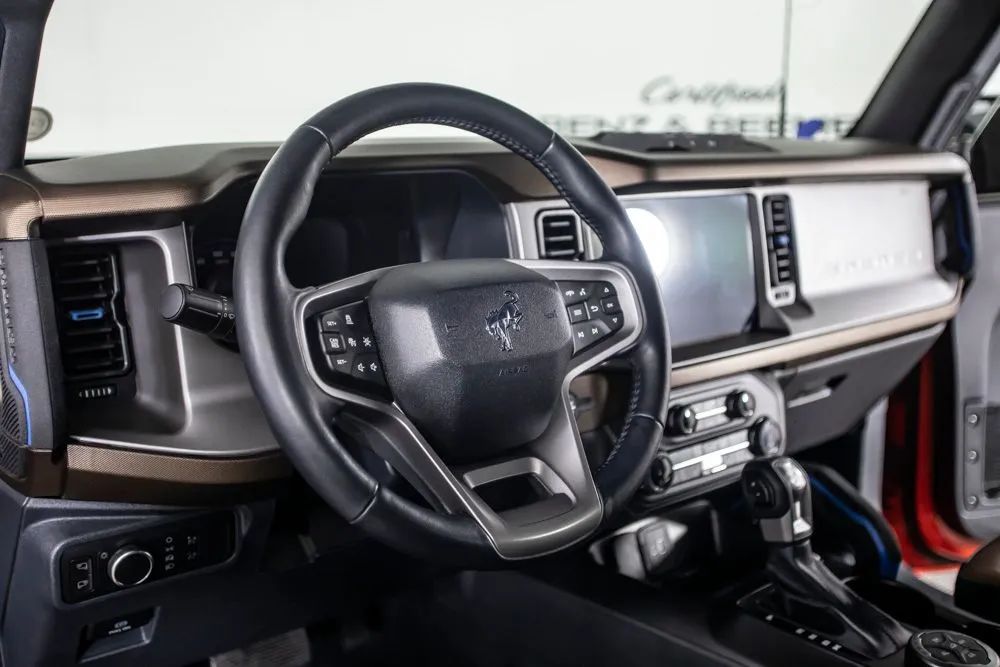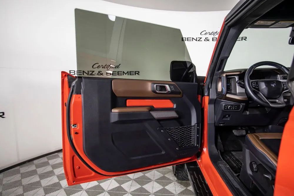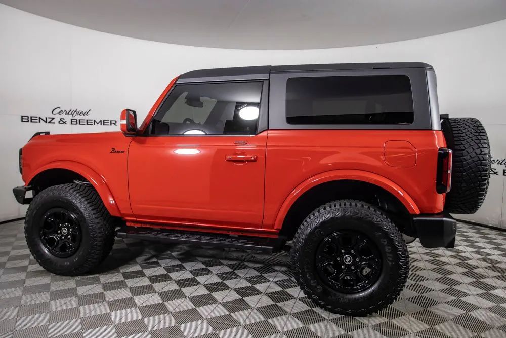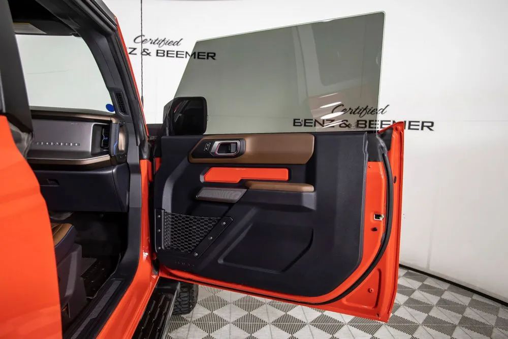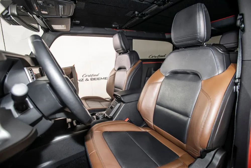 The original MSRP for this 2022 Ford Bronco Outer Banks was $53,430, which includes $9,390 in factory-installed options added to the base suggested price of $42,445 when new. The 2022 Ford Bronco Outer Banks delivers a perfect blend of rugged off-road capability and modern comfort, powered by a strong 2.7-liter EcoBoost V6 engine paired with a 10-speed automatic transmission for smooth yet responsive performance both on and off the road. Designed for adventure, this Bronco is equipped with a heavy-duty modular front bumper and brush guard, enhancing durability and protection when tackling more challenging terrain. Finished in bold Race Red with a Roast and Black leather-trimmed interior, this Outer Banks model offers a distinctive look combined with upscale interior materials. Heated leather-trimmed and vinyl bucket seats provide comfort in all conditions, while added features like a heated steering wheel and additional sound deadening improve overall ride quality and refinement. This Bronco is equipped with the highly desirable Equipment Group 314A Lux Package, which significantly upgrades technology and convenience. Highlights include a large 12-inch touchscreen with SYNC 4, connected navigation, a premium B&O sound system by Bang & Olufsen, wireless charging, and SiriusXM with 360L. Additional features such as a universal garage door opener, multiple USB charging ports, and an information-on-demand panel enhance everyday usability. Advanced safety and driver assistance features include adaptive cruise control, evasive steering assist, front parking sensors, and a 360-degree camera system, providing added confidence whether navigating city streets or off-road trails. Certified & Inspected: This vehicle has been rigorously inspected and is backed by a 2-Year/100,000 Mile Signature Certified Limited Warranty, powered by Allstate The CBB Advantage: Your vehicle has been enhanced with the CBB Advantage Package, which includes: Premium Ceramic Paint Coating Ceramic Window Tint Applied immediately after our expert detailing process when the paint surface is at its cleanest these upgrades provide long-lasting protection, easier cleaning, and a showroom finish. While these enhancements typically cost $3,000+ at specialty shops, you’ll enjoy them for just $998 that will be added to the sales price. Ask a CBB Product Specialist about the many other benefits of the CBB Advantage. Certified Benz & Beemer Redefining the Luxury Car-Buying Experience. At Certified Benz & Beemer (CBB), our mission is simple: provide the highest-quality pre-owned luxury vehicles in a friendly, pressure-free environment. We believe that when trust and transparency lead the way, the result is the best car-buying experience you’ll ever have. Our dedication to customer satisfaction has earned us national recognition:DealerRater.com No. 1 Independent Dealer in the U.S. (2013)DealerRater.com No. 1 Independent Dealer in Arizona (since 2012) As the most trusted source for dealership reviews, DealerRater.com highlights what matters most: exceptional service, transparent pricing, and unforgettable experiences. Why Shop with CBB? We hand-select our luxury vehicles from across the Southwest and showcase them in our 92,000-square-foot climate-controlled showrooms. Every car we offer comes with full transparency: Best Upfront Pricing The CARFAX Vehicle History Report is based on data provided to CARFAX and may not include all information. We encourage every customer to review the CARFAX report, complete a physical inspection, and take a test drive for complete confidence. Second key & floor mats are included if pictured. Trade-in values can only be finalized after a physical inspection at our dealership. Certified Benz & Beemer. Luxury. Transparency. Trust.
