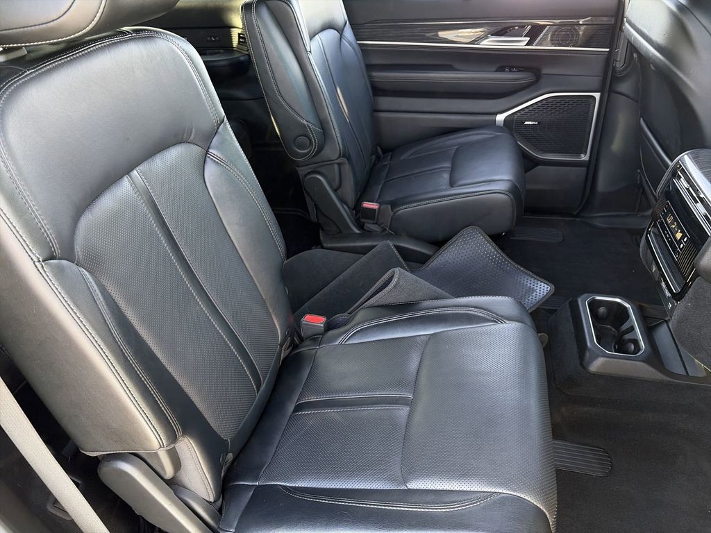 Navigation System|Convenience Group I|Flexible Seating Group|Quick Order Package 22N|10 Speakers|AM/FM radio: SiriusXM with 360L|Audio memory|Radio data system|Radio: Uconnect 5 Nav w/10.1″ Display|Air Conditioning|Automatic temperature control|Front dual zone A/C|Rear air conditioning|Rear dual zone A/C|Rear window defroster|Heads-Up Display|Memory seat|Pedal memory|Power driver seat|Power steering|Power windows|Remote keyless entry|Steering wheel memory|Steering wheel mounted audio controls|Auto-leveling suspension|Four wheel independent suspension|Normal Duty Suspension|Speed-sensing steering|Traction control|4-Wheel Disc Brakes|ABS brakes|Anti-whiplash front head restraints|Dual front impact airbags|Dual front side impact airbags|Front anti-roll bar|Intersection Collision Assist System|Knee airbag|Low tire pressure warning|Occupant sensing airbag|Overhead airbag|Power adjustable front head restraints|Rear anti-roll bar|Power Liftgate|Brake assist|Electronic Stability Control|Exterior Parking Camera Rear|Auto High-beam Headlights|Delay-off headlights|Front fog lights|Fully automatic headlights|Panic alarm|Security system|Speed control|Auto-dimming door mirrors|Bumpers: body-color|Heated door mirrors|Power door mirrors|Turn signal indicator mirrors|2nd Row Manual Window Shades|Adjustable pedals|Auto-dimming Rear-View mirror|Compass|Driver door bin|Driver vanity mirror|Drowsy Driver Detection|Floor Console w/Cupholder|Front Passenger Interactive Display|Front reading lights|Garage door transmitter|Genuine wood console insert|Genuine wood dashboard insert|Genuine wood door panel insert|Heated steering wheel|Illuminated entry|Outside temperature display|Overhead console|P&P Park & Unpark Assist w/Stop System|Passenger seat mounted armrest|Passenger vanity mirror|Rear reading lights|Rear seat center armrest|Surround View Camera System|Tachometer|Telescoping steering wheel|Tilt steering wheel|Traffic Sign Recognition|Trip computer|Voltmeter|3rd row seats: bench|7-Passenger Seating|Driver’s Seat Mounted Armrest|Front Bucket Seats|Heated front seats|Heated rear seats|Leather Trimmed Bucket Seats|Power passenger seat|Power Tip/Slide Recline 2nd Row Buckets|Reclining 3rd row seat|Split folding rear seat|Ventilated front seats|Front Center Armrest w/Storage|Passenger door bin|Alloy wheels|Wheels: 20″ x 9.0″ Premium 2 Aluminum|Rain sensing wipers|Rear window wiper|Speed-Sensitive Wipers|Variably intermittent wipers|3.21 Rear Axle Ratio