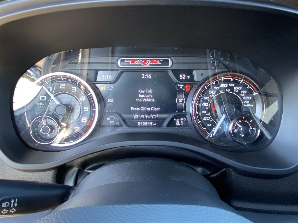 Navigation System|Quick Order Package 29Y|TRX Level 2 Equipment Group|10 Speakers|AM/FM radio: SiriusXM with 360L|harman/kardon 19 Speaker Premium Sound|Radio data system|Radio: Uconnect 5 Nav w/12.0″ Display|Air Conditioning|Automatic temperature control|Front dual zone A/C|Rear Window Defroster|Driver Seat Memory|Exterior Mirrors w/Memory|Heads-Up Display|Heated Second Row Seats|Power Adjustable Pedals w/Memory|Power driver seat|Power steering|Power windows|Radio/Driver Seat/Mirrors/Pedals Memory|Rear 60/40 Folding Seat|Remote keyless entry|Steering wheel mounted audio controls|Universal Garage Door Opener|Adaptive suspension|Leather/Suede Flat-Bottom Steering Wheel|Traction control|2-Door Passive Entry, Front Door Locks|4-Wheel Disc Brakes|ABS brakes|Dual front impact airbags|Dual front side impact airbags|Front anti-roll bar|Front wheel independent suspension|Low tire pressure warning|Occupant sensing airbag|Overhead airbag|Remote Tailgate Release|Dual-Pane Panoramic Sunroof|Blind Spot & Cross Path Detection|Brake assist|Electronic Stability Control|ParkView Rear Back-Up Camera|Auto High-beam Headlights|Delay-off headlights|Front fog lights|Fully automatic headlights|Panic alarm|Security system|Speed control|Auto-dimming door mirrors|Black Exterior Mirrors|Body Color Door Handles|Exterior Mirrors Courtesy Lamps|Exterior Mirrors w/Heating Element|Exterior Mirrors w/Supplemental Signals|Heated door mirrors|LED CHMSL Lamp|Pick-Up Box Lighting|Power door mirrors|Power-Folding Mirrors|Rear step bumper|Turn signal indicator mirrors|#2 Seat Foam Cushion|Apple CarPlay/Android Auto|Auto-dimming Rear-View mirror|Center Console Parts Module|Compass|Digital Rearview Mirror|Dome Dual LED Reading Lamp|Driver door bin|Driver/Passenger Wrapped Assist Handles|Front Door Accent Lighting|Front reading lights|Full Length Premium Upgraded Floor Console|Heated Steering Wheel|Illuminated entry|IP LED Ambient Light Pipe|Leather Shift Knob|Leather steering wheel|Luxury Front Door Trim Panel|MOPAR Bright Pedal Kit|Outside temperature display|Overhead console|ParkSense Front/Rear Park Assist w/Stop|Passenger vanity mirror|Premium Wrapped IP Bezel|Rear Door Accent Lighting|Rear seat center armrest|Sport steering wheel|Sun Visors w/Illuminated Vanity Mirrors|Surround View Camera System|Tachometer|Telescoping steering wheel|Tilt steering wheel|Trip computer|Voltmeter|Wireless Charging Pad|4 Way Front Headrests|Bucket Seats|Cloth/Vinyl Bucket Seats|Front Bucket Seats|Heated Front Seats|Leather Trimmed Bucket Seats|Power 4-Way Driver Lumbar Adjust|Power 4-Way Passenger Lumbar Adjust|Power 8-Way Driver & Passenger Seats|Rear 60/40 Folding Split Recline Seat|Split folding rear seat|Ventilated Front Seats|Ventilated Rear Seats|Front Center Armrest w/Storage|Front Seat Back Map Pockets|Passenger door bin|Rear Underseat Compartment Storage|Trailer Brake Control|Alloy wheels|Wheels: 18″ x 9″ Black Paint/Polish Aluminum|Rain Sensitive Windshield Wipers|Variably intermittent wipers|3.55 Rear Axle Ratio