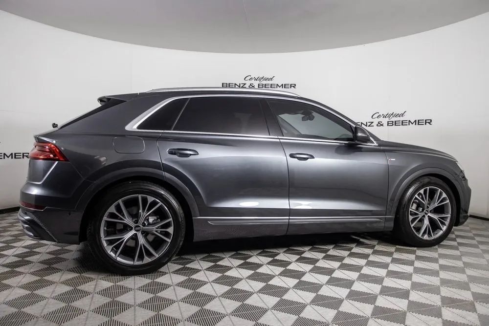 {“This exceptionally well-equipped Audi Q8 arrives with a commanding $84,890 original MSRP, featuring the top-tier Prestige Package ($10,300) and a suite of executive-level features designed for premium comfort and high-end convenience. Finished in Samurai Gray Metallic, luxury SUV blends subtle elegance with bold design. Inside, the cabin offers first-class comfort with Heated and Ventilated Front Seats, Heated Rear Seats, Power Rear Side Window Sunshades, and Power Soft-Close Doors. The Comfort Adaptive Air Suspension delivers a smooth and composed ride, whether cruising on the highway or gliding through city streets. Technology is equally advanced, with highlights such as the Audi Adaptive Cruise Assist, a sharp Heads-Up Display, and Remote Park Assist Plus, allowing the vehicle to maneuver in and out of tight spaces autonomously. The immersive Bang & Olufsen 3D Premium Sound System provides concert-quality audio, while the Top View Camera System and Rear View Camera enhance safety and ease of driving in all conditions. Also equipped with Navigation/GPS, Apple CarPlay, and the Executive Package, this Q8 delivers a seamless blend of performance, innovation, and high-end luxury perfect for drivers who expect the very best in refinement and technology. Certified & Inspected: This vehicle is rigorously inspected and comes with a 2-Year/100,000 Mile Signature Certified Limited Warranty, powered by Allstate. The CBB Advantage Enhance your vehicle with the CBB Advantage Package, which includes: Premium Ceramic Paint Coating Ceramic Window Tint Applied immediately after our expert detailing process when the paint surface is at its cleanest these upgrades provide long-lasting protection, easier cleaning, and a showroom finish. While these enhancements typically cost $3,000+ at specialty shops, you’ll enjoy them for just $998 added to the sales price. Ask a CBB Product Specialist about the many other benefits of the CBB Advantage. Certified Benz & Beemer Redefining the Luxury Car-Buying Experience At Certified Benz & Beemer (CBB), our mission is simple: provide the highest-quality pre-owned luxury vehicles in a friendly, pressure-free environment. We believe that when trust and transparency lead the way, the result is the best car-buying experience you’ll ever have. Our dedication to customer satisfaction has earned us national recognition: DealerRater.com No. 1 Independent Dealer in the U.S. (2013) DealerRater.com No. 1 Independent Dealer in Arizona (since 2012) As the most trusted source for dealership reviews, DealerRater.com highlights what matters most: exceptional service, transparent pricing, and unforgettable experiences. Why Shop with CBB? We hand-select our luxury vehicles from across the Southwest and showcase them in our 92,000-square-foot climate-controlled showrooms. Every car we offer comes with full transparency: Best Upfront Pricing CARFAX Vehicle History Report Comprehensive Service Inspection Report Kelley Blue Book Report Market Analysis Report Certified Confidence For added peace of mind, every Certified vehicle includes: 2-Year / 100,000-Mile Warranty backed by Allstate 3-Day Satisfaction Guarantee (with exclusions for select high-performance vehicles) Important Notes The CARFAX Vehicle History Report is based on data provided to CARFAX and may not include all information. We encourage every customer to review the CARFAX report, complete a physical inspection, and take a test drive for complete confidence. Second key & floor mats are included if pictured. Trade-in values can only be finalized after a physical inspection at our dealership. Certified Benz & Beemer Luxury. Transparency. Trust.”}