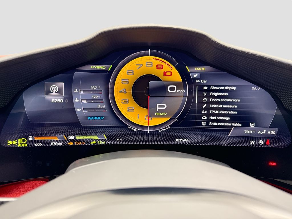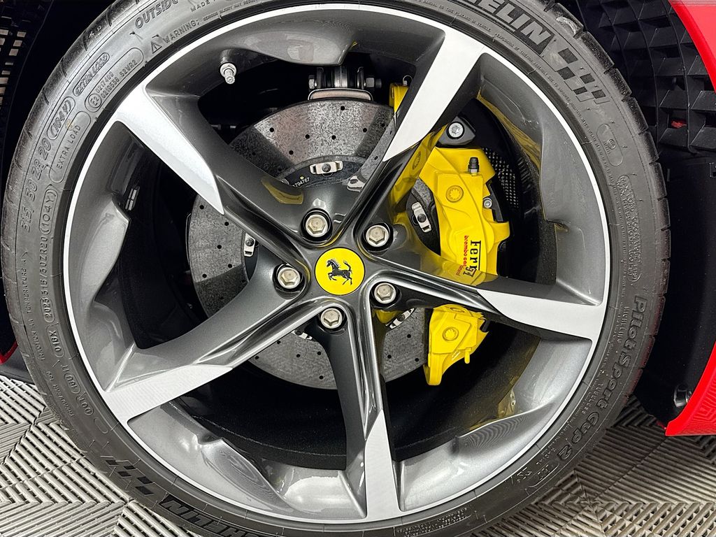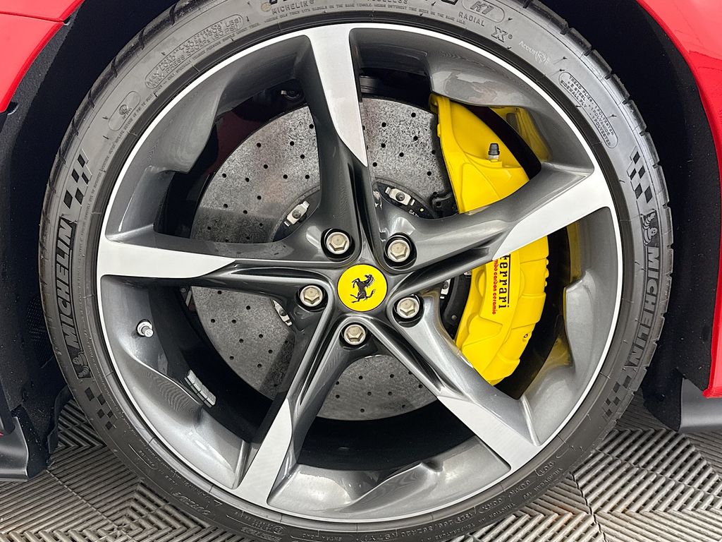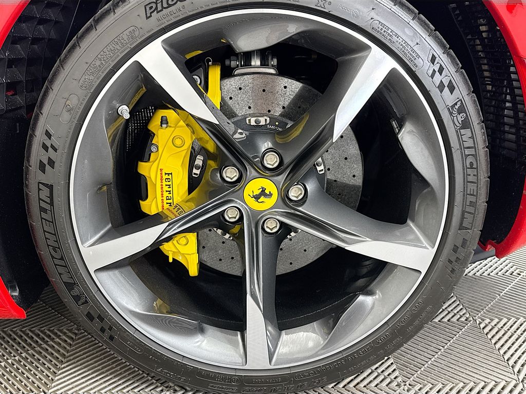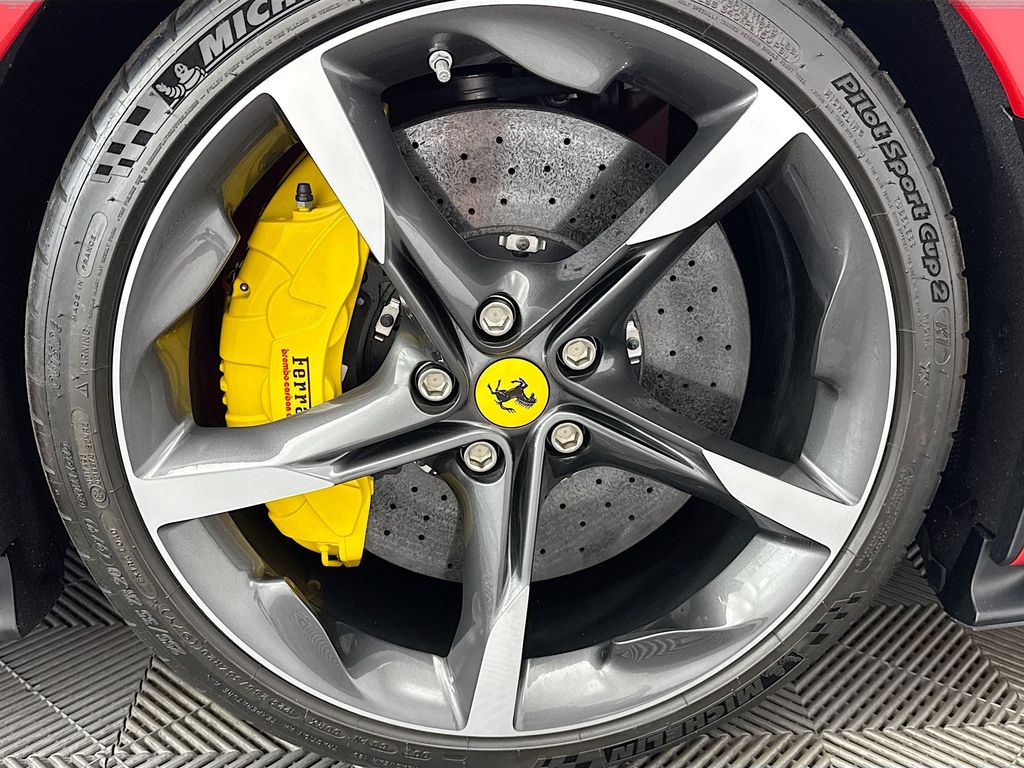 Navigation System|6 Speakers|AM/FM radio|AM/FM Stereo|Radio data system|Air Conditioning|Automatic temperature control|Rear window defroster|Heads-Up Display|Power driver seat|Power steering|Power windows|Remote keyless entry|Steering wheel mounted audio controls|Adaptive suspension|Four wheel independent suspension|Speed-sensing steering|Traction control|4-Wheel Disc Brakes|ABS brakes|Ceramic disc brakes: front and rear|Dual front impact airbags|Dual front side impact airbags|Front anti-roll bar|Low tire pressure warning|Passenger cancellable airbag|Rear anti-roll bar|Brake assist|Electronic Stability Control|Exterior Parking Camera Rear|Rear Parking Sensors|Delay-off headlights|Fully automatic headlights|Rear fog lights|Security system|Speed control|Bumpers: body-color|Heated door mirrors|Power door mirrors|Spoiler|Apple CarPlay|Compass|Driver door bin|Front reading lights|Illuminated entry|Leather steering wheel|Outside temperature display|Overhead console|Sport steering wheel|Standard Seats|Tachometer|Telescoping steering wheel|Tilt steering wheel|Trip computer|Voltmeter|Front Bucket Seats|Front Center Armrest|Leather Seat Trim|Power passenger seat|Passenger door bin|Alloy wheels|Wheels: 20″ x 9.5″ Fr & 20″ x 11.5″ Rr|Rain sensing wipers|Variably intermittent wipers