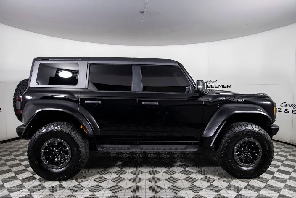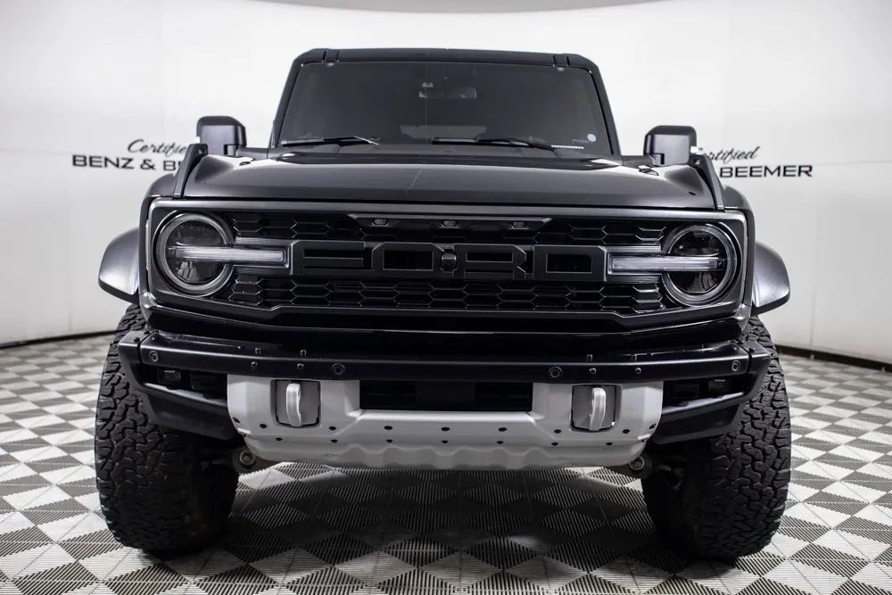 With an original MSRP of $95,245, this 2023 Ford Bronco Raptor represents the ultimate expression of off-road capability combined with modern technology and premium comfort. Built to conquer extreme terrain while maintaining everyday usability, the Bronco Raptor delivers aggressive styling, rugged performance, and a commanding road presence. This example is equipped with the Equipment Group 374A Lux Package, originally priced at $3,050, which adds a comprehensive suite of upscale convenience and driver-assistance features. Highlights include adaptive cruise control, evasive steering assist, a wireless smartphone charging pad, and enhanced interior technology designed to elevate both on-road and off-road driving experiences. The B&O premium sound system delivers rich, powerful audio, ensuring entertainment remains top-tier no matter the terrain. Additional performance-focused upgrades include 17-inch black forged beadlock-capable wheels, originally priced at $1,995, providing exceptional durability and capability for serious off-road use. The Interior Carbon Fiber Package, originally priced at $1,725, adds a distinctive, performance-inspired finish to the cabin. Apple CarPlay integration offers seamless smartphone connectivity, while the rearview camera assists with parking and low-speed maneuvering. Combining extreme off-road prowess, advanced technology, and premium features, this 2023 Ford Bronco Raptor stands out as a highly optioned and capable SUV designed for drivers who demand adventure without compromise. Certified & Inspected: This vehicle has been rigorously inspected and is backed by a 2-Year/100,000 Mile Signature Certified Limited Warranty, powered by Allstate The CBB Advantage: Your vehicle has been enhanced with the CBB Advantage Package, which includes: Premium Ceramic Paint Coating Ceramic Window Tint Applied immediately after our expert detailing process when the paint surface is at its cleanest these upgrades provide long-lasting protection, easier cleaning, and a showroom finish. While these enhancements typically cost $3,000+ at specialty shops, you’ll enjoy them for just $998 that will be added to the sales price. Ask a CBB Product Specialist about the many other benefits of the CBB Advantage. Certified Benz & Beemer Redefining the Luxury Car-Buying Experience. At Certified Benz & Beemer (CBB), our mission is simple: provide the highest-quality pre-owned luxury vehicles in a friendly, pressure-free environment. We believe that when trust and transparency lead the way, the result is the best car-buying experience you’ll ever have. Our dedication to customer satisfaction has earned us national recognition:DealerRater.com No. 1 Independent Dealer in the U.S. (2013)DealerRater.com No. 1 Independent Dealer in Arizona (since 2012) As the most trusted source for dealership reviews, DealerRater.com highlights what matters most: exceptional service, transparent pricing, and unforgettable experiences. Why Shop with CBB? We hand-select our luxury vehicles from across the Southwest and showcase them in our 92,000-square-foot climate-controlled showrooms. Every car we offer comes with full transparency: Best Upfront Pricing The CARFAX Vehicle History Report is based on data provided to CARFAX and may not include all information. We encourage every customer to review the CARFAX report, complete a physical inspection, and take a test drive for complete confidence. Second key & floor mats are included if pictured. Trade-in values can only be finalized after a physical inspection at our dealership. Certified Benz & Beemer. Luxury. Transparency. Trust.