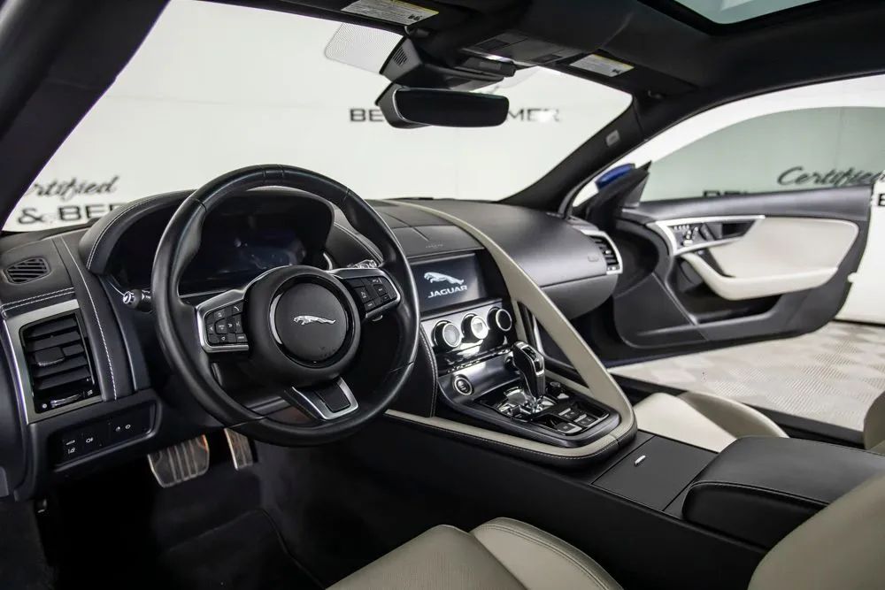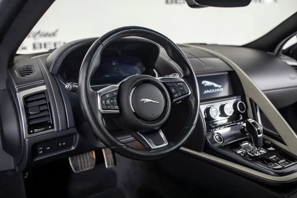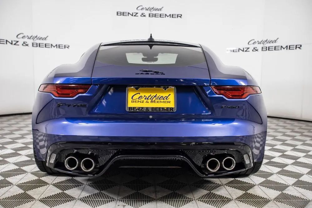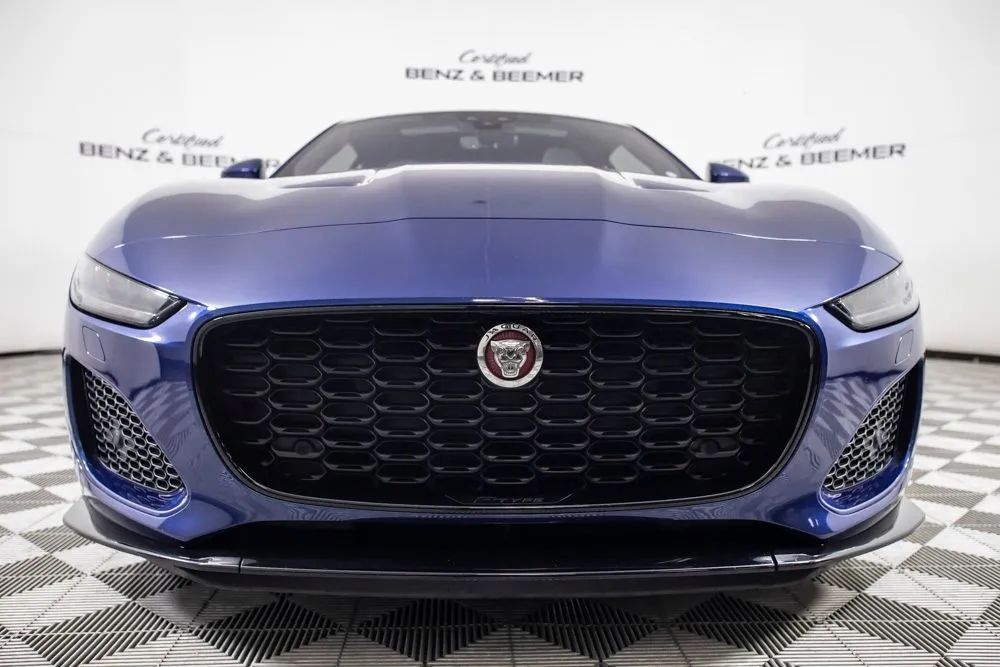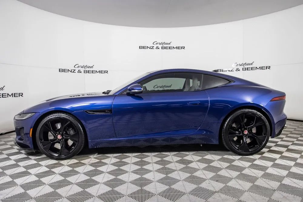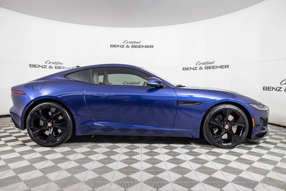 With an original MSRP of $84,725, this 2023 Jaguar F-TYPE P450 delivers a captivating blend of exhilarating performance, timeless design, and refined luxury in a true sports car package. Finished in Bluefire Blue Metallic, the exterior is further enhanced by the Black Exterior Package, originally priced at $1,100, along with 20-inch five-spoke gloss black wheels and red brake calipers, giving the vehicle a bold, aggressive presence that perfectly matches its performance-focused character. The interior is appointed with Light Oyster Windsor leather, originally priced at $1,650, creating a bright and upscale cabin that contrasts beautifully with the exterior. The 12-way heated front seats, originally priced at $1,500, provide exceptional comfort and adjustability, while the fixed panoramic roof, originally priced at $1,200, fills the cabin with natural light and enhances the open, sporty feel. Keyless entry adds everyday convenience, making access effortless. A Meridian sound system delivers rich, high-fidelity audio, while Bluetooth connectivity allows seamless hands-free calling and wireless audio streaming. A rearview camera assists with parking and low-speed maneuvering, adding practicality to this high-performance sports car. Combining powerful V8 performance, elegant craftsmanship, and modern technology, this 2023 Jaguar F-TYPE P450 stands out as a striking and well-optioned example designed for drivers who appreciate both excitement and sophistication. Certified & Inspected: This vehicle has been rigorously inspected and is backed by a 2-Year/100,000 Mile Signature Certified Limited Warranty, powered by Allstate The CBB Advantage: Your vehicle has been enhanced with the CBB Advantage Package, which includes: Premium Ceramic Paint Coating Ceramic Window Tint Applied immediately after our expert detailing process when the paint surface is at its cleanest these upgrades provide long-lasting protection, easier cleaning, and a showroom finish. While these enhancements typically cost $3,000+ at specialty shops, you’ll enjoy them for just $998 that will be added to the sales price. Ask a CBB Product Specialist about the many other benefits of the CBB Advantage. Certified Benz & Beemer Redefining the Luxury Car-Buying Experience. At Certified Benz & Beemer (CBB), our mission is simple: provide the highest-quality pre-owned luxury vehicles in a friendly, pressure-free environment. We believe that when trust and transparency lead the way, the result is the best car-buying experience you’ll ever have. Our dedication to customer satisfaction has earned us national recognition:DealerRater.com No. 1 Independent Dealer in the U.S. (2013)DealerRater.com No. 1 Independent Dealer in Arizona (since 2012) As the most trusted source for dealership reviews, DealerRater.com highlights what matters most: exceptional service, transparent pricing, and unforgettable experiences. Why Shop with CBB? We hand-select our luxury vehicles from across the Southwest and showcase them in our 92,000-square-foot climate-controlled showrooms. Every car we offer comes with full transparency: Best Upfront Pricing The CARFAX Vehicle History Report is based on data provided to CARFAX and may not include all information. We encourage every customer to review the CARFAX report, complete a physical inspection, and take a test drive for complete confidence. Second key & floor mats are included if pictured. Trade-in values can only be finalized after a physical inspection at our dealership. Certified Benz & Beemer. Luxury. Transparency. Trust.