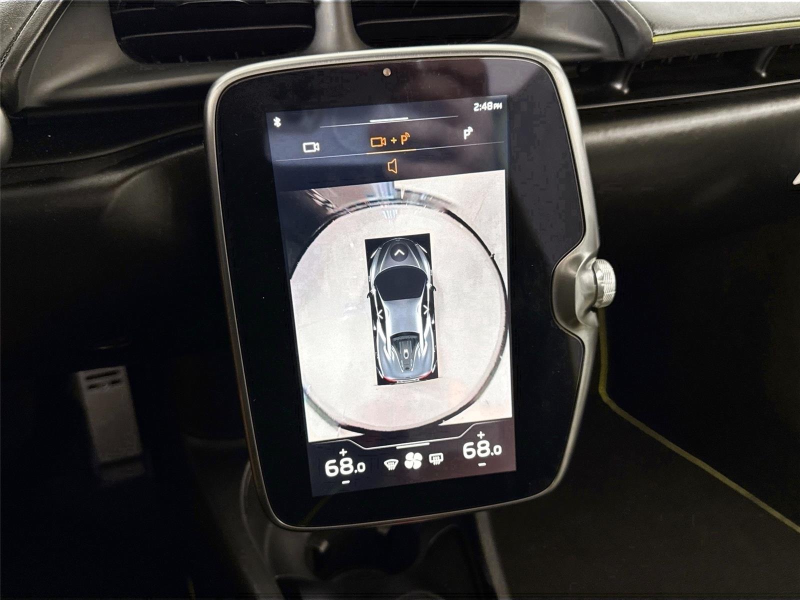 - The vehicle is equipped with a camera that displays an image of the area behind the vehicle on an interior display.