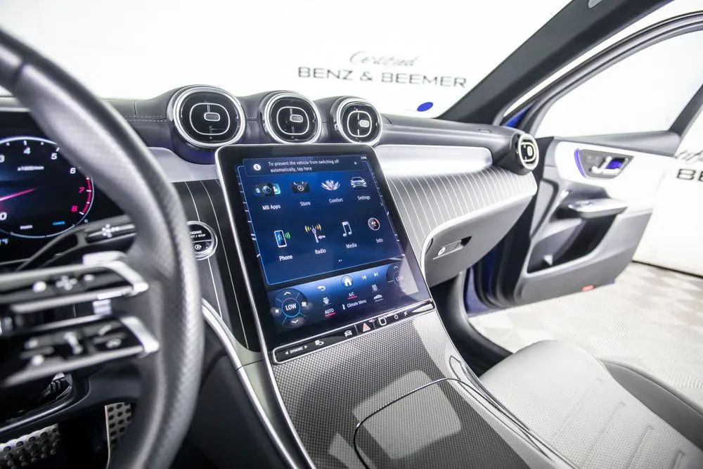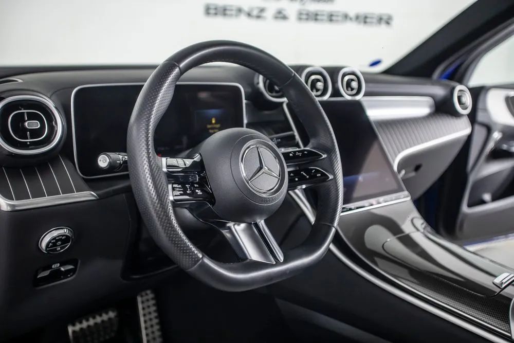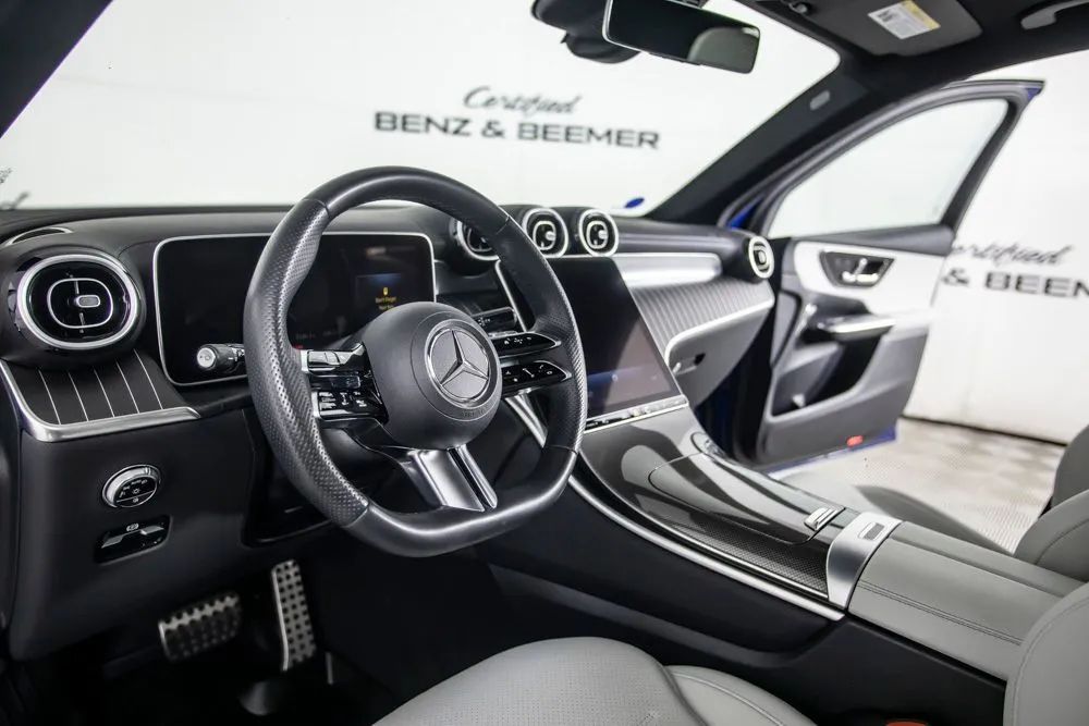 With an original MSRP of $59,795, this 2023 Mercedes-Benz GLC 300 delivers a refined balance of luxury, performance, and cutting-edge technology. Finished in elegant Starling Blue Metallic over an AMG Neva Grey leather interior, this GLC presents a sophisticated yet sporty appearance that reflects Mercedes-Benzs signature design language. Equipped with the $3,450 AMG Line Package, this GLC features AMG Line body styling, distinctive exterior accents, and striking 20-inch AMG 5-spoke wheels that enhance its athletic stance and road presence. The $2,250 Exclusive Trim Package elevates the interior with premium materials, advanced technology enhancements, and additional comfort features that create a more immersive driving experience. A $1,500 panoramic sunroof floods the cabin with natural light, adding openness and refinement to every drive. Comfort is prioritized with 16-way power-adjustable front seats offering exceptional customization, along with heated and ventilated front seats for year-round comfort. Heated rear seats extend that luxury to second-row passengers, while enhanced ambient interior lighting allows you to personalize the cabin atmosphere to suit your mood. Technology is seamlessly integrated through the large 11.9-inch center touchscreen display, providing intuitive access to navigation, media, and vehicle settings. Active Distance Assist enhances highway confidence by maintaining a preset following distance from vehicles ahead. The Surround View Camera System, paired with a rear view camera, provides a comprehensive 360-degree perspective to simplify parking and tight maneuvers. Certified & Inspected: This vehicle has been rigorously inspected and is backed by a 2-Year/100,000 Mile Signature Certified Limited Warranty, powered by Allstate The CBB Advantage: Your vehicle has been enhanced with the CBB Advantage Package, which includes: Premium Ceramic Paint Coating Ceramic Window Tint Applied immediately after our expert detailing process when the paint surface is at its cleanest these upgrades provide long-lasting protection, easier cleaning, and a showroom finish. While these enhancements typically cost $3,000+ at specialty shops, you’ll enjoy them for just $998 that will be added to the sales price. Ask a CBB Product Specialist about the many other benefits of the CBB Advantage. Certified Benz & Beemer Redefining the Luxury Car-Buying Experience. At Certified Benz & Beemer (CBB), our mission is simple: provide the highest-quality pre-owned luxury vehicles in a friendly, pressure-free environment. We believe that when trust and transparency lead the way, the result is the best car-buying experience you’ll ever have. Our dedication to customer satisfaction has earned us national recognition:DealerRater.com No. 1 Independent Dealer in the U.S. (2013)DealerRater.com No. 1 Independent Dealer in Arizona (since 2012) As the most trusted source for dealership reviews, DealerRater.com highlights what matters most: exceptional service, transparent pricing, and unforgettable experiences. Why Shop with CBB? We hand-select our luxury vehicles from across the Southwest and showcase them in our 92,000-square-foot climate-controlled showrooms. Every car we offer comes with full transparency: Best Upfront Pricing The CARFAX Vehicle History Report is based on data provided to CARFAX and may not include all information. We encourage every customer to review the CARFAX report, complete a physical inspection, and take a test drive for complete confidence. Second key & floor mats are included if pictured. Trade-in values can only be finalized after a physical inspection at our dealership. Certified Benz & Beemer. Luxury. Transparency. Trust.