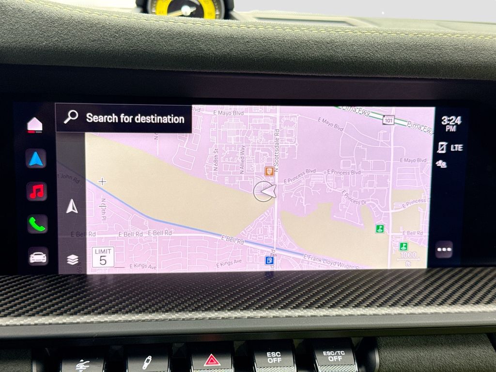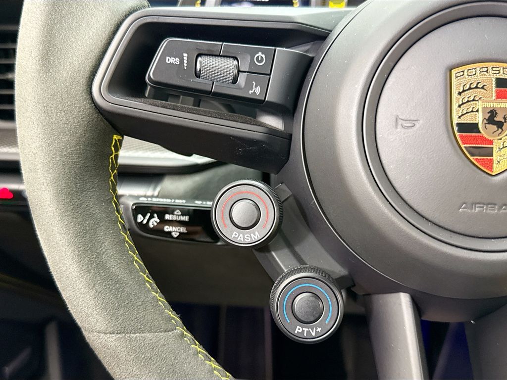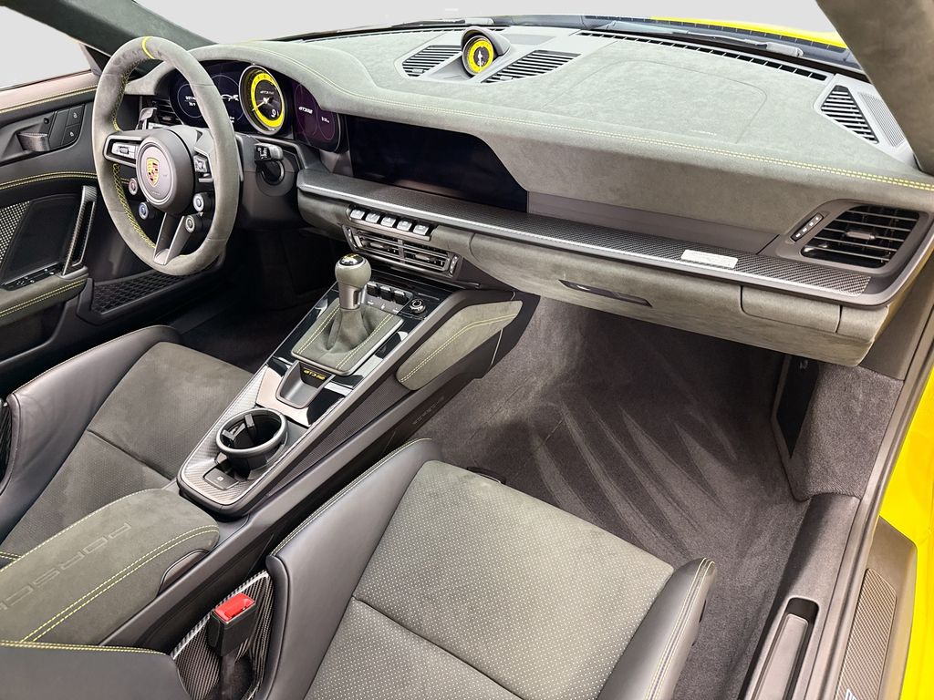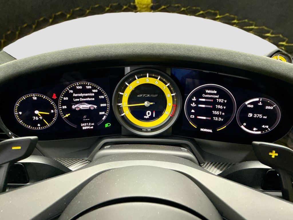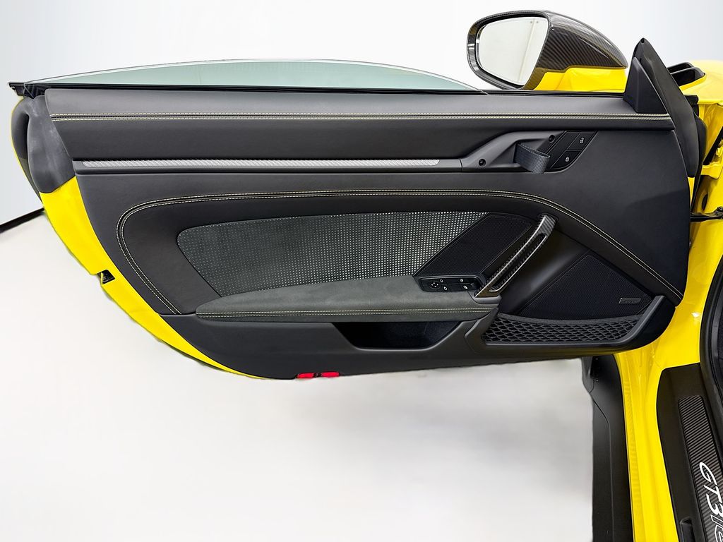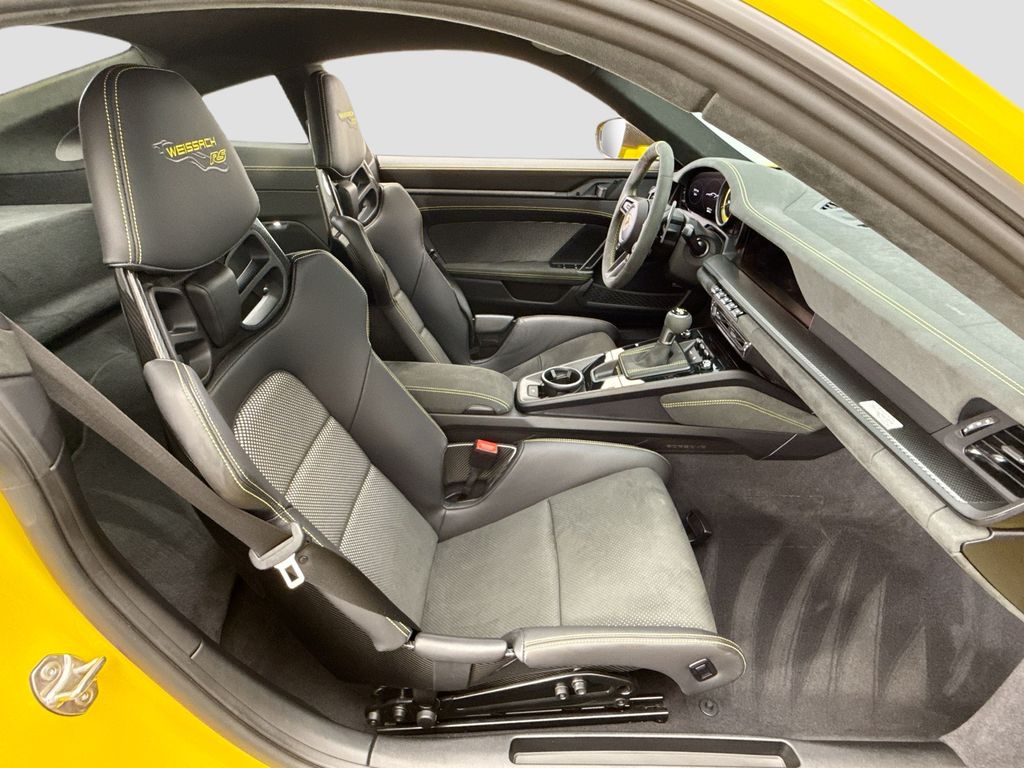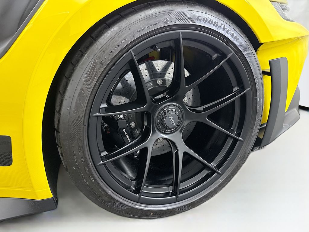 Navigation system: Porsche Communication Management (PCM)|Weissach Package|8 Speakers|BOSE Surround Sound System|Radio data system|Air Conditioning|Automatic temperature control|Front dual zone A/C|Rear window defroster|Porsche Communication Management|Power driver seat|Power steering|Power windows|Remote keyless entry|Steering wheel mounted audio controls|Adaptive suspension|Four wheel independent suspension|Front Axle Lift System|Speed-sensing steering|Traction control|4-Wheel Disc Brakes|ABS brakes|Dual front impact airbags|Dual front side impact airbags|Front anti-roll bar|Low tire pressure warning|Occupant sensing airbag|Overhead airbag|Porsche Ceramic Composite Brakes (PCCB) in Black|Rear anti-roll bar|Brake assist|Electronic Stability Control|Exterior Parking Camera Rear|Delay-off headlights|Fully automatic headlights|Rear fog lights|Security system|Speed control|Bumpers: body-color|Exterior Mirror Upper Housing in Carbon Fiber|Heated door mirrors|LED Headlights in Black w/PDLS|Power door mirrors|Spoiler|Central Tachometer in Racing Yellow|Driver door bin|Driver vanity mirror|Front reading lights|Full Bucket Seats|Garage door transmitter: HomeLink|Illuminated entry|Outside temperature display|Overhead console|Passenger vanity mirror|Sport steering wheel|Tachometer|Telescoping steering wheel|Tilt steering wheel|Trip computer|Front Bucket Seats|Front Center Armrest|Leather/Race-Tex Seat Trim|Power passenger seat|23.7 Gal. Extended Range Fuel Tank|Passenger door bin|Alloy wheels|Wheels Painted in Satin Black|Wheels: 20″ Fr/21″ Rr GT3 RS Forged Ltwt Magnesium|Wheels: 20″ Front/21″ Rear GT3 RS Forged Aluminum|Variably intermittent wipers