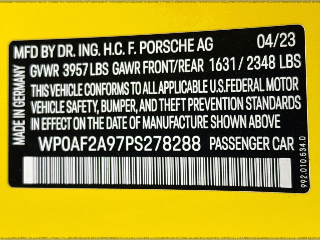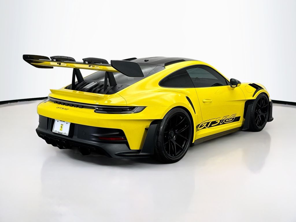 Experience the pinnacle of performance and exclusivity with this exceptional 2023 Porsche 911 GT3 RS. This stunning sports car is a true testament to Porsche’s engineering prowess, delivering an unparalleled driving experience that will captivate your senses.Adorned in a vibrant Yellow exterior, this GT3 RS is equipped with a remarkable array of features that elevate its capabilities. Key highlights include the – Weissach Package, BOSE Surround Sound System, Front Axle Lift System, Porsche Ceramic Composite Brakes (PCCB) in Black, and LED Headlights in Black with PDLS. The 23.7 Gal. Extended Range Fuel Tank and 20″ Front/21″ Rear GT3 RS Forged Lightweight Magnesium Wheels further enhance the vehicle’s performance and endurance.Beneath the sculpted bodywork, this GT3 RS is powered by a potent 4.0L H6 DOHC 24V engine that delivers an exhilarating 518 horsepower, channeled through a lightning-fast 7-Speed Porsche Doppelkupplung (PDK) transmission. The rear-wheel-drive configuration and adaptive suspension system ensure exceptional handling and responsiveness, allowing you to carve through corners with precision and confidence.Step inside the cockpit, and you’ll be greeted by a cabin that seamlessly blends performance and luxury. The Porsche Communication Management (PCM) system, 8-speaker BOSE Surround Sound, and Leather/Race-Tex Seat Trim create an immersive and refined driving experience. The centrally-mounted tachometer in Racing Yellow further emphasizes the vehicle’s racing heritage and driver-focused design.With a mere 2,858 miles on the odometer, this 2023 Porsche 911 GT3 RS represents an exceptional opportunity to own a virtually new, high-performance sports car. Porsche’s unwavering commitment to excellence is evident in every detail, from the precision engineering to the exquisite craftsmanship.If you’re seeking a sports car that combines raw power, exceptional handling, and unparalleled exclusivity, this 2023 Porsche 911 GT3 RS is the embodiment of your dreams. Experience the thrill of the open road and the pure adrenaline of driving a true masterpiece. We invite you to visit our showroom and witness the perfection of this remarkable vehicle for yourself.