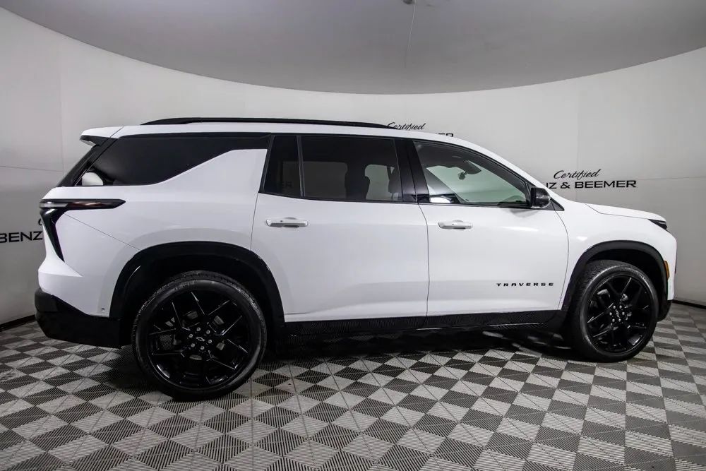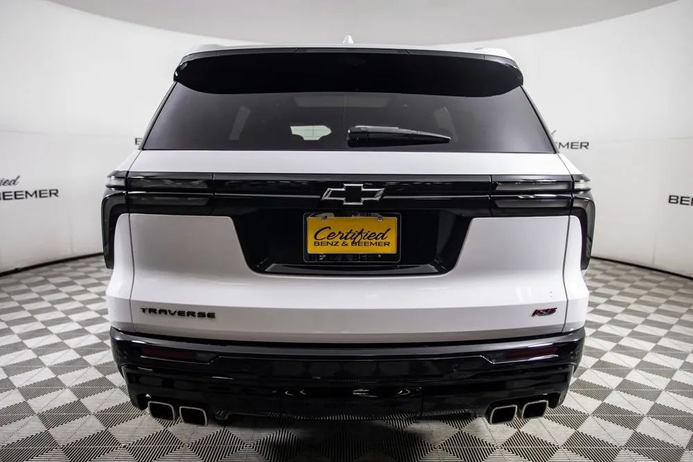 2024 Chevrolet Traverse RS Original MSRP: $55,870 This 2024 Chevrolet Traverse RS is a stylish and well-equipped midsize SUV that blends bold design, modern technology, and family-friendly versatility. Finished in Summit White with a striking Jet Black/Torch Red leather interior, it offers a sporty and premium look throughout. Inside, three-row seating provides ample space for passengers, while 8-way power front seats and heated and ventilated front seats ensure comfort on every drive. A massive 17.7-inch diagonal infotainment display serves as the command center for navigation, media, and connectivity, complemented by the Bose Premium Sound System for an enhanced audio experience. Convenience features include a power moonroof and a power liftgate, making loading cargo and enjoying fresh air effortless. Apple CarPlay provides seamless smartphone integration for music, calls, and apps, while a Rear View Camera enhances visibility and maneuvering confidence. Combining advanced technology, premium comfort, and modern styling, this 2024 Chevrolet Traverse RS stands out as a versatile, upscale, and exceptionally capable three-row SUV. Certified & Inspected: This vehicle has been rigorously inspected and is backed by a 2-Year/100,000 Mile Signature Certified Limited Warranty, powered by Allstate The CBB Advantage: Your vehicle has been enhanced with the CBB Advantage Package, which includes: Premium Ceramic Paint Coating Ceramic Window Tint Applied immediately after our expert detailing process when the paint surface is at its cleanest these upgrades provide long-lasting protection, easier cleaning, and a showroom finish. While these enhancements typically cost $3,000+ at specialty shops, you’ll enjoy them for just $998 that will be added to the sales price. Ask a CBB Product Specialist about the many other benefits of the CBB Advantage. Certified Benz & Beemer Redefining the Luxury Car-Buying Experience. At Certified Benz & Beemer (CBB), our mission is simple: provide the highest-quality pre-owned luxury vehicles in a friendly, pressure-free environment. We believe that when trust and transparency lead the way, the result is the best car-buying experience you’ll ever have. Our dedication to customer satisfaction has earned us national recognition:DealerRater.com No. 1 Independent Dealer in the U.S. (2013)DealerRater.com No. 1 Independent Dealer in Arizona (since 2012) As the most trusted source for dealership reviews, DealerRater.com highlights what matters most: exceptional service, transparent pricing, and unforgettable experiences. Why Shop with CBB? We hand-select our luxury vehicles from across the Southwest and showcase them in our 92,000-square-foot climate-controlled showrooms. Every car we offer comes with full transparency: Best Upfront Pricing The CARFAX Vehicle History Report is based on data provided to CARFAX and may not include all information. We encourage every customer to review the CARFAX report, complete a physical inspection, and take a test drive for complete confidence. Second key & floor mats are included if pictured. Trade-in values can only be finalized after a physical inspection at our dealership. Certified Benz & Beemer. Luxury. Transparency. Trust.