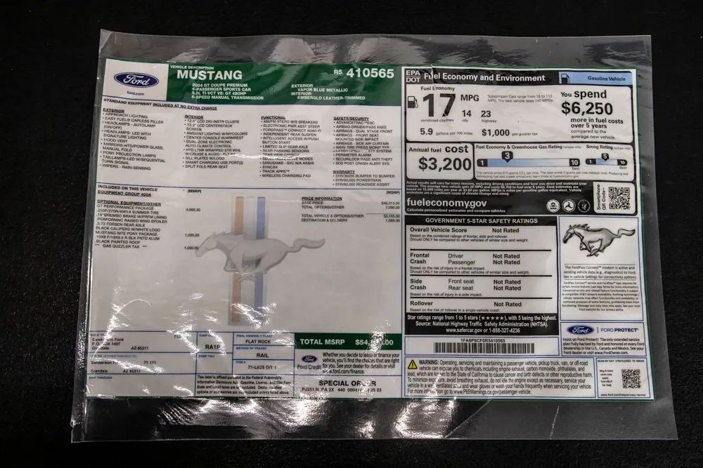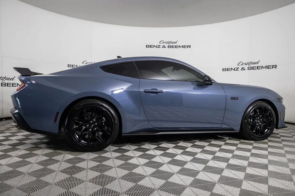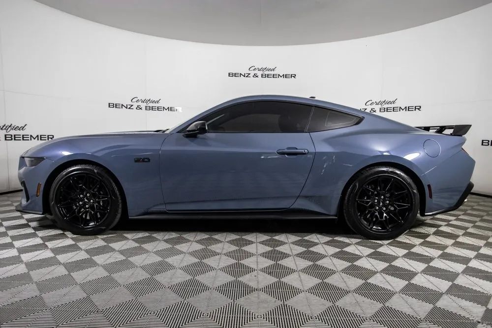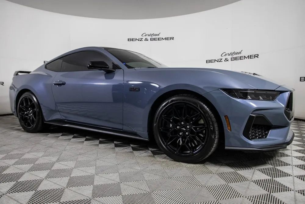{“Aggressive performance meets modern muscle car refinement in this striking Ford Mustang GT, featuring an original MSRP of $53,995. Finished in eye-catching Vapor Blue Metallic and enhanced by the exclusive Mustang Nite Pony Package ($1,095), this Mustang delivers thrilling capability wrapped in a head-turning design. At its core is the highly desirable GT Performance Package ($4,995), which adds unique chassis tuning, performance-tuned components, and bold design upgrades like the Performance Raised Rear Spoiler. A 6-Speed Manual Transmission ensures a visceral, connected driving experience, while the Electric Drift Brake adds track-inspired control. Inside, Heated & Ventilated Front Seats and a 9-Speaker Premium Sound System bring comfort and entertainment into the performance cockpit. Black Exterior Badging, exclusive trim elements, and Apple CarPlay integration complete this modern American icon. Certified & Inspected: This vehicle is rigorously inspected and comes with a 2-Year/100,000 Mile Signature Certified Limited Warranty, powered by Allstate. The CBB Advantage Enhance your vehicle with the CBB Advantage Package, which includes: Premium Ceramic Paint Coating Ceramic Window Tint Applied immediately after our expert detailing process when the paint surface is at its cleanest these upgrades provide long-lasting protection, easier cleaning, and a showroom finish. While these enhancements typically cost $3,000+ at specialty shops, you’ll enjoy them for just $998 added to the sales price. Ask a CBB Product Specialist about the many other benefits of the CBB Advantage. Certified Benz & Beemer Redefining the Luxury Car-Buying Experience At Certified Benz & Beemer (CBB), our mission is simple: provide the highest-quality pre-owned luxury vehicles in a friendly, pressure-free environment. We believe that when trust and transparency lead the way, the result is the best car-buying experience you’ll ever have. Our dedication to customer satisfaction has earned us national recognition: DealerRater.com No. 1 Independent Dealer in the U.S. (2013) DealerRater.com No. 1 Independent Dealer in Arizona (since 2012) As the most trusted source for dealership reviews, DealerRater.com highlights what matters most: exceptional service, transparent pricing, and unforgettable experiences. Why Shop with CBB? We hand-select our luxury vehicles from across the Southwest and showcase them in our 92,000-square-foot climate-controlled showrooms. Every car we offer comes with full transparency: Best Upfront Pricing CARFAX Vehicle History Report Comprehensive Service Inspection Report Kelley Blue Book Report Market Analysis Report Certified Confidence For added peace of mind, every Certified vehicle includes: 2-Year / 100,000-Mile Warranty backed by Allstate 3-Day Satisfaction Guarantee (with exclusions for select high-performance vehicles) Important Notes The CARFAX Vehicle History Report is based on data provided to CARFAX and may not include all information. We encourage every customer to review the CARFAX report, complete a physical inspection, and take a test drive for complete confidence. Second key & floor mats are included if pictured. Trade-in values can only be finalized after a physical inspection at our dealership. Certified Benz & Beemer Luxury. Transparency. Trust.”}