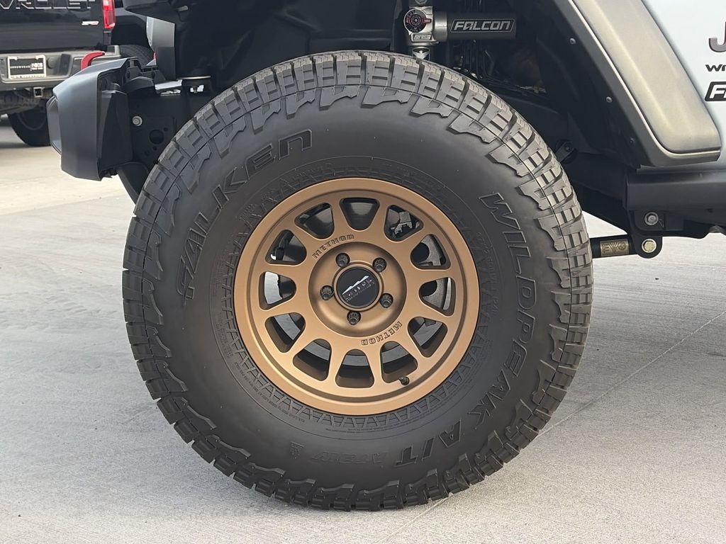 Convenience Group|Quick Order Package 24R Rubicon|8 Speakers|AM/FM radio: SiriusXM|Apple CarPlay|Google Android Auto|Integrated Center Stack Radio|Integrated Voice Command w/Bluetooth|Radio data system|Radio: Uconnect 5 w/12.3″ Display|Air Conditioning|Automatic temperature control|Front dual zone A/C|Rear Window Defroster|Power steering|Power windows|Remote keyless entry|Steering wheel mounted audio controls|Performance Suspension|Traction control|4-Wheel Disc Brakes|ABS brakes|Dual front impact airbags|Dual front side impact airbags|Emergency communication system: Jeep Connect|Front anti-roll bar|Integrated roll-over protection|Low tire pressure warning|Occupant sensing airbag|Overhead airbag|Rear anti-roll bar|Remote Start System|Brake assist|Electronic Stability Control|ParkView Rear Back-Up Camera|Delay-off headlights|Front fog lights|Fully automatic headlights|Panic alarm|Security system|Speed control|Aux Battery|Stop-Start Dual Battery System|Black 3-Piece Hard Top|Heated door mirrors|No Soft Top|Non-Lock Fuel Cap w/o Discriminator|Power door mirrors|12.3″ Touchscreen Display|97 MPH Vehicle Max Speed Calibration|Apple CarPlay/Android Auto|Compass|Connectivity – US/Canada|Disassociated Touchscreen Display|Driver door bin|Driver vanity mirror|Front reading lights|Heated Steering Wheel|Illuminated entry|Outside temperature display|Passenger vanity mirror|Rear reading lights|Tachometer|Telescoping steering wheel|Tilt steering wheel|Trip computer|Voltmeter|Cloth Low-Back Bucket Seats|Front Bucket Seats|Heated Front Seats|Split folding rear seat|Freedom Panel Storage Bag|Front Center Armrest w/Storage|Passenger door bin|Alloy wheels|Wheels: 17″ x 7.5″ Machined/Painted Black|Rear Window Wiper/Washer|Variably intermittent wipers|4.10 Rear Axle Ratio|3.5” EVO OVERLAND LIFT|FALCON SP2 SHOCKS|17” AFTERMARKET METHOD WHEELS|37” TIRES