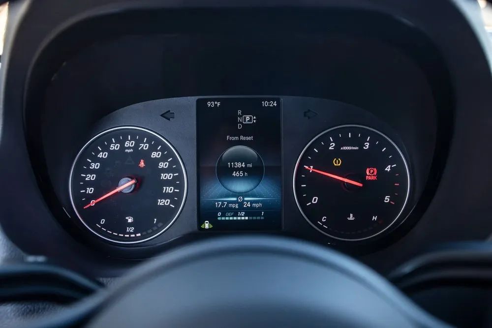 Safety and Security@Front Pedestrian Automatic emergency braking~Safety and Security@Front Automatic emergency braking~Safety and Security@Pedestrian Detection Pre-collision warning system~Safety and Security@Audible Warning Pre-collision warning system~Safety and Security@Visual Warning Pre-collision warning system~Safety and Security@Rearview Camera system~Safety and Security@Front Side airbags~Safety and Security@Front Side curtain airbags~Safety and Security@4-wheel ABS~Safety and Security@Emergency braking preparation~Safety and Security@Auto-locking Power door locks~Safety and Security@Crosswind stabilization~Safety and Security@Ventilated Disc Rear brake~Safety and Security@Braking assist~Safety and Security@Hill holder control~Safety and Security@Ventilated Disc Front brake~Safety and Security@Dual Front airbags~Safety and Security@Vehicle Immobilizer Anti-theft system~Safety and Security@Power brakes~Safety and Security@Electronic brakeforce distribution~Safety and Security@Stability control~Safety and Security@Traction control~Safety and Security@Occupant Sensing Passenger Airbag deactivation~Safety and Security@Front Seatbelt pretensioners~Safety and Security@Front Seatbelt force limiters~Safety and Security@Front Emergency locking retractors~Safety and Security@Post-collision Safety System Impact sensor~Safety and Security@Alert System Impact sensor~Safety and Security@Roll stability control~Safety and Security@Front Seatbelt warning sensor~Safety and Security@In Mirror Rearview monitor~Entertainment and Technology@Hotspot Wi-Fi~Entertainment and Technology@Mercedes Me Smart device app compatibility~Entertainment and Technology@Bluetooth Wireless data link~Entertainment and Technology@Bluetooth Auxiliary audio input~Entertainment and Technology@Engine Start Smart device app function~Entertainment and Technology@Hands-free phone call integration~Entertainment and Technology@USB Auxiliary audio input~Entertainment and Technology@5 Total speakers~Entertainment and Technology@Vehicle Location Smart device app function~Entertainment and Technology@Lock Operation Smart device app function~Entertainment and Technology@Maintenance Status Smart device app function~Entertainment and Technology@AM/FM Radio~Entertainment and Technology@3 In. Infotainment screen size~Entertainment and Technology@Radio data system~Interior@Paddle Shifter Steering wheel mounted controls~Interior@Push-button start~Interior@Heated Driver seat~Interior@Heated Passenger seat~Interior@Variable/speed-proportional Power steering~Interior@Cruise control~Interior@Cloth Upholstery~Interior@Bucket Front seat~Interior@Front air conditioning~Interior@Keyless Entry Multi-function remote~Interior@Air filtration~Interior@USB-C Front Power outlet(s)~Interior@12V Front Power outlet(s)~Interior@5.5 In. Instrument cluster screen size~Interior@Tilt And Telescopic Steering wheel~Interior@Multi-function display~Interior@External temperature display~Interior@MPG Fuel economy display~Interior@Range Fuel economy display~Interior@6 Driver seat manual adjustments~Interior@6 Passenger seat manual adjustments~Interior@Front Reading lights~Interior@Tachometer Gauge~Interior@Manual Day/night Rearview mirror~Interior@Lockbox Storage~Interior@Front Cupholders~Interior@Maintenance Due Warnings and reminders~Interior@Front Overhead console~Interior@Cargo area light~Interior@2 One-touch windows~Interior@Under Front Seats Storage~Interior@Cargo Tie-down Anchors And Hooks Storage~Interior@Rubber/vinyl Floor material~Interior@Cruise Control Steering wheel mounted controls~Interior@Phone Steering wheel mounted controls~Interior@Multi-function Steering wheel mounted controls~Interior@Single Front air conditioning zones~Interior@Dual Front Armrests~Exterior@Rear Mudguards~Exterior@Front Mudguards~Exterior@Power Side mirror adjustments~Exterior@Heated Side mirrors~Exterior@Daytime running lights~Exterior@Front Power windows~Exterior@Steel Wheels~Exterior@Steel Spare wheel~Exterior@Variable Intermittent Front wipers~Exterior@Tire Pressure Monitoring System~Exterior@Integrated Turn Signals Side mirrors~Exterior@Front Solar-tinted glass~Exterior@Full-size Spare tire size~Exterior@Auto On/off Headlights~Exterior@Auto Delay Off Headlights~Exterior@Passenger-side Manual Sliding Side door~Exterior@Barn Rear trunk/liftgate~Exterior@Black Rear bumper color~Exterior@Black Window trim~Exterior@Black Door handle color~Exterior@Black Mirror color~Exterior@Manual Folding Side mirror adjustments~Exterior@Black Grille color~Exterior@Black Body side moldings~Exterior@Black Front bumper color~Exterior@Standard OEM roof height~Performance@4-pin Trailer wiring~Performance@7-pin Trailer wiring~Performance@On Demand 4WD~Performance@AGM Battery~Performance@850 CCA Battery rating~Performance@Independent Front suspension classification~Performance@250 Amps Alternator~Performance@Solid Live Axle Rear suspension classification~Performance@Front stabilizer bar