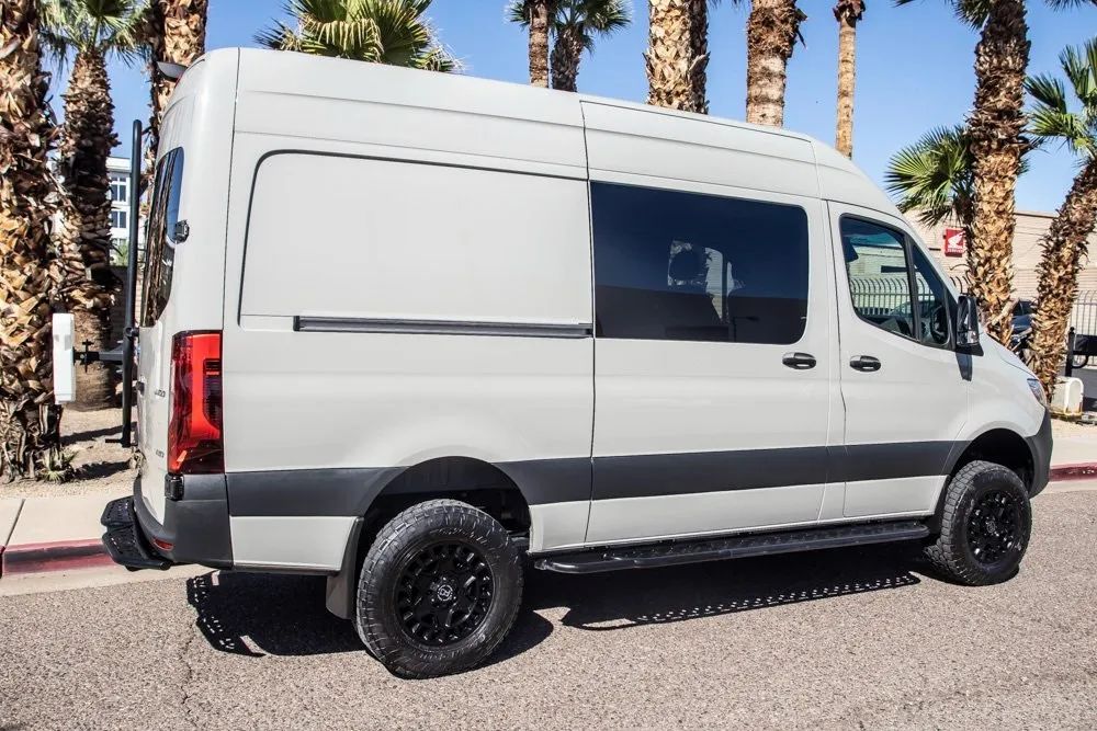Versatile, capable, and built for comfort, this Mercedes-Benz Sprinter arrives with an original MSRP of $83,267 and is finished in sophisticated Stone Gray Exterior Paint. Equipped with the All-Wheel Drive Package ($6,700) and upgraded High Roof ($3,500), this van is ready for any job, road, or weather condition with ease and confidence. The Comfort Package and Driver Convenience Package add valuable upgrades including Comfort Front Seats, Heated Front Seats, Cruise Control, and Bluetooth Connectivity perfect for long hauls or daily business use. The Black Leather Interior offers a refined, durable cabin environment, while the Wood Floor with 6 D-Rings provides both functionality and cargo flexibility. Safety is a priority with Active Brake Assist, and the Rear View Camera ensures easy maneuvering in tight spaces. Whether you’re running a business or building out a custom conversion, this Sprinter combines performance, practicality, and premium features in one expertly engineered package. Certified & Inspected: This vehicle is rigorously inspected and comes with a 2-Year/100,000 Mile Signature Certified Limited Warranty, powered by Allstate. The CBB Advantage Enhance your vehicle with the CBB Advantage Package, which includes: Premium Ceramic Paint Coating Ceramic Window Tint Applied immediately after our expert detailing process when the paint surface is at its cleanest these upgrades provide long-lasting protection, easier cleaning, and a showroom finish. While these enhancements typically cost $3,000+ at specialty shops, you’ll enjoy them for just $998 added to the sales price. Ask a CBB Product Specialist about the many other benefits of the CBB Advantage. Certified Benz & Beemer Redefining the Luxury Car-Buying Experience At Certified Benz & Beemer (CBB), our mission is simple: provide the highest-quality pre-owned luxury vehicles in a friendly, pressure-free environment. We believe that when trust and transparency lead the way, the result is the best car-buying experience you’ll ever have. Our dedication to customer satisfaction has earned us national recognition: DealerRater.com No. 1 Independent Dealer in the U.S. (2013) DealerRater.com No. 1 Independent Dealer in Arizona (since 2012) As the most trusted source for dealership reviews, DealerRater.com highlights what matters most: exceptional service, transparent pricing, and unforgettable experiences. Why Shop with CBB? We hand-select our luxury vehicles from across the Southwest and showcase them in our 92,000-square-foot climate-controlled showrooms. Every car we offer comes with full transparency: Best Upfront Pricing CARFAX Vehicle History Report Comprehensive Service Inspection Report Kelley Blue Book Report Market Analysis Report Certified Confidence For added peace of mind, every Certified vehicle includes: 2-Year / 100,000-Mile Warranty backed by Allstate 3-Day Satisfaction Guarantee (with exclusions for select high-performance vehicles) Important Notes The CARFAX Vehicle History Report is based on data provided to CARFAX and may not include all information. We encourage every customer to review the CARFAX report, complete a physical inspection, and take a test drive for complete confidence. Second key & floor mats are included if pictured. Trade-in values can only be finalized after a physical inspection at our dealership. Certified Benz & Beemer Luxury. Transparency. Trust.