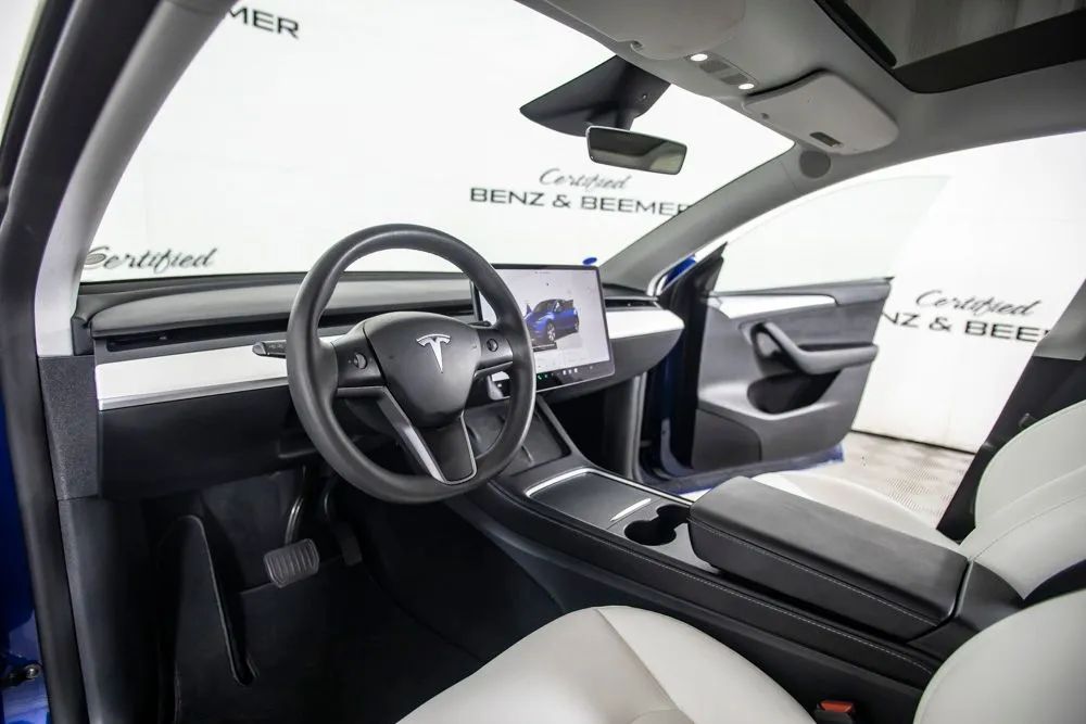 This 2024 Tesla Model Y Long Range combines cutting-edge electric performance with sleek, modern design and everyday practicality. Finished in striking Blue exterior paint over a White leather interior, this Model Y presents a clean, contemporary aesthetic that highlights Teslas minimalist approach to luxury and technology. Powered by dual electric motors with all-wheel drive, the Long Range variant delivers impressive acceleration and confident traction in various driving conditions while offering an extended driving range ideal for both daily commutes and longer road trips. The instant torque characteristic of Teslas electric powertrain provides smooth, responsive performance, making every drive engaging and efficient. Inside, the White premium interior enhances the cabins open and airy feel, complemented by a panoramic all-glass roof that floods the space with natural light. The expansive central touchscreen serves as the command center for navigation, media, climate control, and vehicle settings, reflecting Teslas streamlined, technology-forward design philosophy. Advanced driver assistance features, over-the-air software updates, and seamless smartphone integration further enhance convenience and connectivity. With its combination of long-range capability, all-electric efficiency, modern styling, and innovative technology, this 2024 Tesla Model Y Long Range stands out as a highly desirable electric SUV offering both performance and practicality. Certified & Inspected: This vehicle has been rigorously inspected and is backed by a 2-Year/100,000 Mile Signature Certified Limited Warranty, powered by Allstate The CBB Advantage: Your vehicle has been enhanced with the CBB Advantage Package, which includes: Premium Ceramic Paint Coating Ceramic Window Tint Applied immediately after our expert detailing process when the paint surface is at its cleanest these upgrades provide long-lasting protection, easier cleaning, and a showroom finish. While these enhancements typically cost $3,000+ at specialty shops, you’ll enjoy them for just $998 that will be added to the sales price. Ask a CBB Product Specialist about the many other benefits of the CBB Advantage. Certified Benz & Beemer Redefining the Luxury Car-Buying Experience. At Certified Benz & Beemer (CBB), our mission is simple: provide the highest-quality pre-owned luxury vehicles in a friendly, pressure-free environment. We believe that when trust and transparency lead the way, the result is the best car-buying experience you’ll ever have. Our dedication to customer satisfaction has earned us national recognition:DealerRater.com No. 1 Independent Dealer in the U.S. (2013)DealerRater.com No. 1 Independent Dealer in Arizona (since 2012) As the most trusted source for dealership reviews, DealerRater.com highlights what matters most: exceptional service, transparent pricing, and unforgettable experiences. Why Shop with CBB? We hand-select our luxury vehicles from across the Southwest and showcase them in our 92,000-square-foot climate-controlled showrooms. Every car we offer comes with full transparency: Best Upfront Pricing The CARFAX Vehicle History Report is based on data provided to CARFAX and may not include all information. We encourage every customer to review the CARFAX report, complete a physical inspection, and take a test drive for complete confidence. Second key & floor mats are included if pictured. Trade-in values can only be finalized after a physical inspection at our dealership. Certified Benz & Beemer. Luxury. Transparency. Trust.