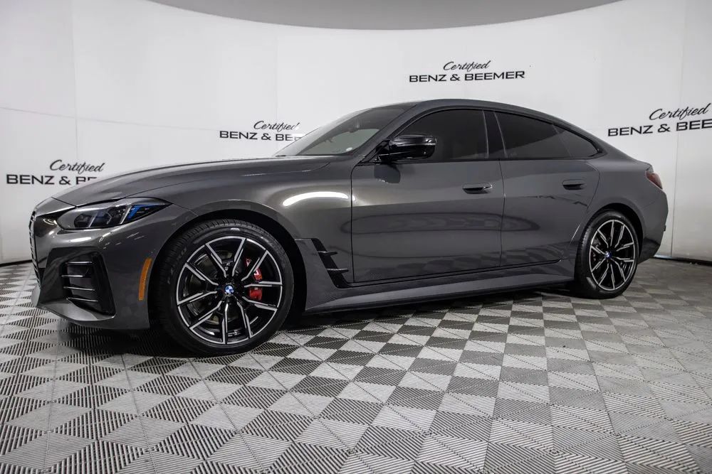 With an original MSRP of $74,695, this 2025 BMW i4 M50 represents the pinnacle of BMWs all-electric performance sedan lineup. Combining exhilarating acceleration with advanced electric innovation, the i4 M50 delivers instant torque, precise handling, and everyday practicality in a sleek four-door coupe design. Finished in Dravit Grey Metallic, a $1,500 premium color, this example is enhanced by the Shadowline Package and M Sport Package Pro, giving it a bold and athletic presence. M Sport brakes with red calipers, 19-inch M Y-spoke wheels, and M Shadowline lights further emphasize its performance-focused character. Full LED headlights with Laserlight taillights provide distinctive styling and advanced illumination technology. Equipped with the Parking Assistance Package, this i4 M50 features Active Park Distance Control and Parking View with 3D View for added confidence in tight spaces. Active Driving Assistant supports enhanced safety and driver awareness, while Comfort Access keyless entry adds convenience. Inside, heated front seats and a heated steering wheel ensure comfort in cooler conditions, and Connected Package Pro with Apple CarPlay integration keeps you seamlessly connected. A rearview camera rounds out the technology suite, making this 2025 BMW i4 M50 a compelling combination of electric performance, luxury, and cutting-edge design. Certified & Inspected: This vehicle has been rigorously inspected and is backed by a 2-Year/100,000 Mile Signature Certified Limited Warranty, powered by Allstate The CBB Advantage: Your vehicle has been enhanced with the CBB Advantage Package, which includes: Premium Ceramic Paint Coating Ceramic Window Tint Applied immediately after our expert detailing process when the paint surface is at its cleanest these upgrades provide long-lasting protection, easier cleaning, and a showroom finish. While these enhancements typically cost $3,000+ at specialty shops, you’ll enjoy them for just $998 that will be added to the sales price. Ask a CBB Product Specialist about the many other benefits of the CBB Advantage. Certified Benz & Beemer Redefining the Luxury Car-Buying Experience. At Certified Benz & Beemer (CBB), our mission is simple: provide the highest-quality pre-owned luxury vehicles in a friendly, pressure-free environment. We believe that when trust and transparency lead the way, the result is the best car-buying experience you’ll ever have. Our dedication to customer satisfaction has earned us national recognition:DealerRater.com No. 1 Independent Dealer in the U.S. (2013)DealerRater.com No. 1 Independent Dealer in Arizona (since 2012) As the most trusted source for dealership reviews, DealerRater.com highlights what matters most: exceptional service, transparent pricing, and unforgettable experiences. Why Shop with CBB? We hand-select our luxury vehicles from across the Southwest and showcase them in our 92,000-square-foot climate-controlled showrooms. Every car we offer comes with full transparency: Best Upfront Pricing The CARFAX Vehicle History Report is based on data provided to CARFAX and may not include all information. We encourage every customer to review the CARFAX report, complete a physical inspection, and take a test drive for complete confidence. Second key & floor mats are included if pictured. Trade-in values can only be finalized after a physical inspection at our dealership. Certified Benz & Beemer. Luxury. Transparency. Trust.