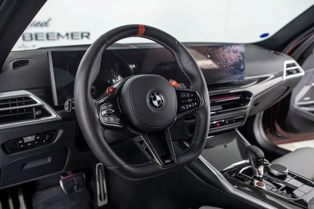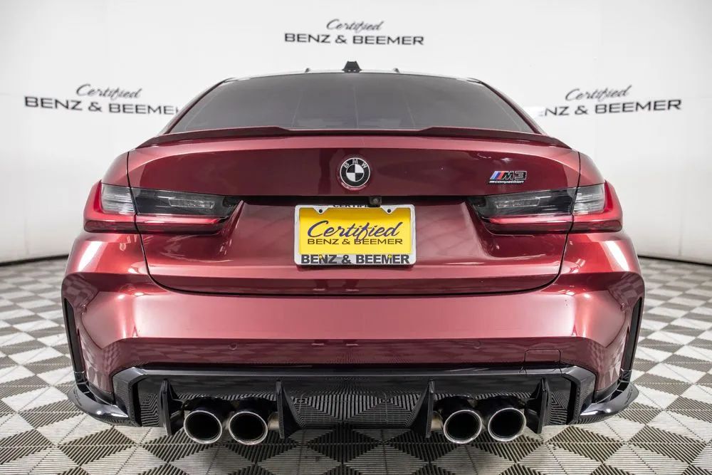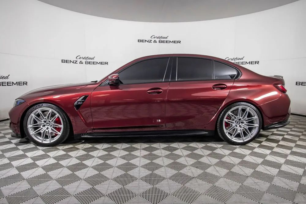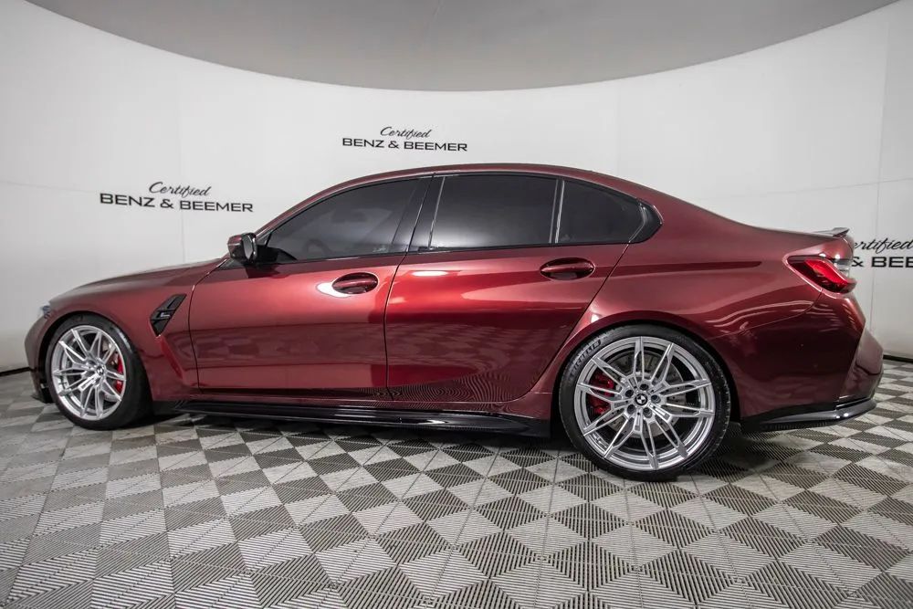Experience precision engineering and unmistakable performance with this 2025 BMW M3 Competition, offered with a total predicted price of $89,975. Finished in an exclusive Aventurin Red Metallic paint, this M3 Competition delivers a striking, stealth-inspired appearance that perfectly complements its aggressive design and motorsport heritage. Under the hood, a 3.0-liter TwinPower Turbo inline 6-cylinder engine produces exhilarating power, delivering rapid acceleration and razor-sharp responsiveness. Paired with BMWs performance-focused engineering and M Compound brakes with red calipers, this sedan offers exceptional control and confidence whether on the open road or pushing through tight corners. The staggered 19-inch front and 20-inch rear forged wheels further enhance both performance and stance. Inside, the cabin is crafted to balance sport and luxury. M Sport seats provide exceptional support during spirited driving, while heated and ventilated front seats, along with lumbar support and power adjustability, ensure comfort on every journey. The Silverstone and Black interior color combination is complemented by premium carbon fiber trim, reinforcing the M divisions racing DNA. Technology is seamlessly integrated, featuring BMWs curved display with head-up display for an immersive and driver-focused interface. Connectivity is enhanced with Apple CarPlay and Android Auto compatibility, wireless device charging, and ConnectedDrive services, keeping you in control and connected at all times. The Harman Kardon surround sound system delivers rich, high-quality audio throughout the cabin. This M3 Competition is equipped with the Executive Package, adding upscale conveniences such as remote engine start, a heated steering wheel, and full LED headlights with cornering capability. Certified & Inspected: This vehicle has been rigorously inspected and is backed by a 2-Year/100,000 Mile Signature Certified Limited Warranty, powered by Allstate The CBB Advantage: Your vehicle has been enhanced with the CBB Advantage Package, which includes: Premium Ceramic Paint Coating Ceramic Window Tint Applied immediately after our expert detailing process when the paint surface is at its cleanest these upgrades provide long-lasting protection, easier cleaning, and a showroom finish. While these enhancements typically cost $3,000+ at specialty shops, you’ll enjoy them for just $998 that will be added to the sales price. Ask a CBB Product Specialist about the many other benefits of the CBB Advantage. Certified Benz & Beemer Redefining the Luxury Car-Buying Experience. At Certified Benz & Beemer (CBB), our mission is simple: provide the highest-quality pre-owned luxury vehicles in a friendly, pressure-free environment. We believe that when trust and transparency lead the way, the result is the best car-buying experience you’ll ever have. Our dedication to customer satisfaction has earned us national recognition:DealerRater.com No. 1 Independent Dealer in the U.S. (2013)DealerRater.com No. 1 Independent Dealer in Arizona (since 2012) As the most trusted source for dealership reviews, DealerRater.com highlights what matters most: exceptional service, transparent pricing, and unforgettable experiences. Why Shop with CBB? We hand-select our luxury vehicles from across the Southwest and showcase them in our 92,000-square-foot climate-controlled showrooms. Every car we offer comes with full transparency: Best Upfront Pricing The CARFAX Vehicle History Report is based on data provided to CARFAX and may not include all information. We encourage every customer to review the CARFAX report, complete a physical inspection, and take a test drive for complete confidence. Second key & floor mats are included if pictured. Trade-in values can only be finalized after a physical inspection at our dealership. Certified Benz & Beemer. Luxury. Transparency.