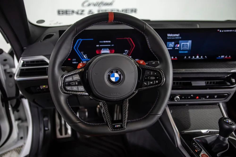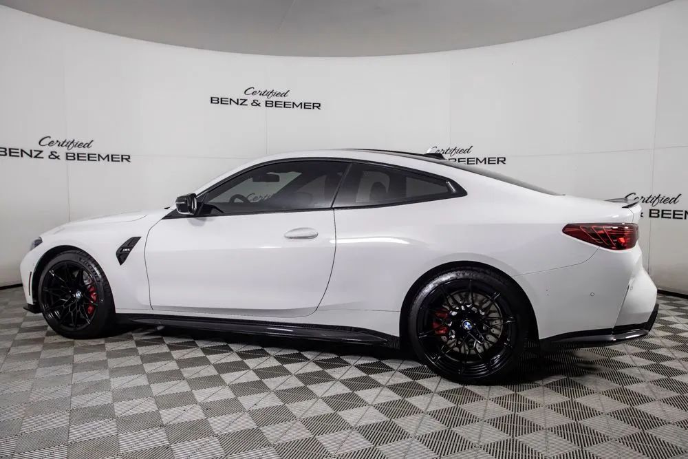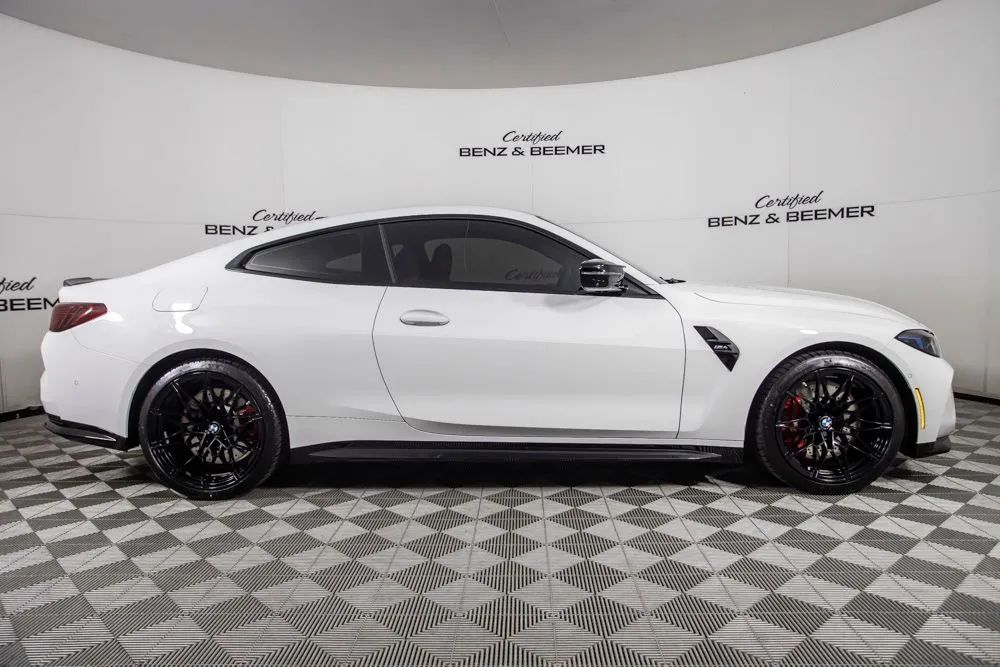 With an original MSRP of $86,925, this 2025 BMW M4 delivers uncompromising performance, precision engineering, and unmistakable M design. Finished in Alpine White, the exterior is accented by 19-inch front and 20-inch rear staggered forged black wheels, a $1,300 upgrade that enhances both stance and performance. M Shadowline lights further sharpen the vehicles aggressive appearance, reinforcing the M4s track-inspired character. The interior is appointed with Fiona Red and Black leather, creating a bold and performance-focused cabin highlighted by carbon fiber interior trim. Equipped with the Executive Package, originally priced at $1,200, the M4 offers premium comfort features including heated and ventilated front seats for year-round driving enjoyment. The available M Drive Professional system enhances performance capability with advanced driving modes and track-focused functionality, while the 6-speed manual transmission delivers an engaging, driver-centered experience that true enthusiasts will appreciate. Technology and connectivity are seamlessly integrated, with the Harman Kardon premium sound system providing rich, immersive audio and Apple CarPlay allowing effortless smartphone integration for navigation, communication, and entertainment. A rearview camera supports confident maneuvering at low speeds. Combining exhilarating performance, striking design, and modern luxury, this 2025 BMW M4 stands out as an exceptional choice for drivers seeking a true high-performance sports coupe. Certified & Inspected: This vehicle has been rigorously inspected and is backed by a 2-Year/100,000 Mile Signature Certified Limited Warranty, powered by Allstate The CBB Advantage: Your vehicle has been enhanced with the CBB Advantage Package, which includes: Premium Ceramic Paint Coating Ceramic Window Tint Applied immediately after our expert detailing process when the paint surface is at its cleanest these upgrades provide long-lasting protection, easier cleaning, and a showroom finish. While these enhancements typically cost $3,000+ at specialty shops, you’ll enjoy them for just $998 that will be added to the sales price. Ask a CBB Product Specialist about the many other benefits of the CBB Advantage. Certified Benz & Beemer Redefining the Luxury Car-Buying Experience. At Certified Benz & Beemer (CBB), our mission is simple: provide the highest-quality pre-owned luxury vehicles in a friendly, pressure-free environment. We believe that when trust and transparency lead the way, the result is the best car-buying experience you’ll ever have. Our dedication to customer satisfaction has earned us national recognition:DealerRater.com No. 1 Independent Dealer in the U.S. (2013)DealerRater.com No. 1 Independent Dealer in Arizona (since 2012) As the most trusted source for dealership reviews, DealerRater.com highlights what matters most: exceptional service, transparent pricing, and unforgettable experiences. Why Shop with CBB? We hand-select our luxury vehicles from across the Southwest and showcase them in our 92,000-square-foot climate-controlled showrooms. Every car we offer comes with full transparency: Best Upfront Pricing The CARFAX Vehicle History Report is based on data provided to CARFAX and may not include all information. We encourage every customer to review the CARFAX report, complete a physical inspection, and take a test drive for complete confidence. Second key & floor mats are included if pictured. Trade-in values can only be finalized after a physical inspection at our dealership. Certified Benz & Beemer. Luxury. Transparency. Trust.