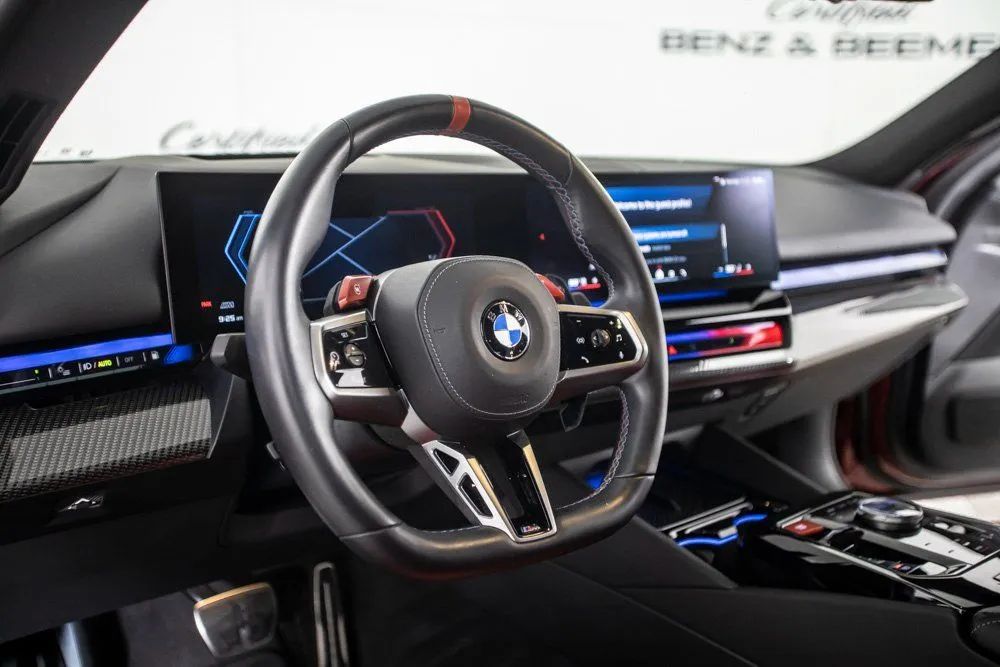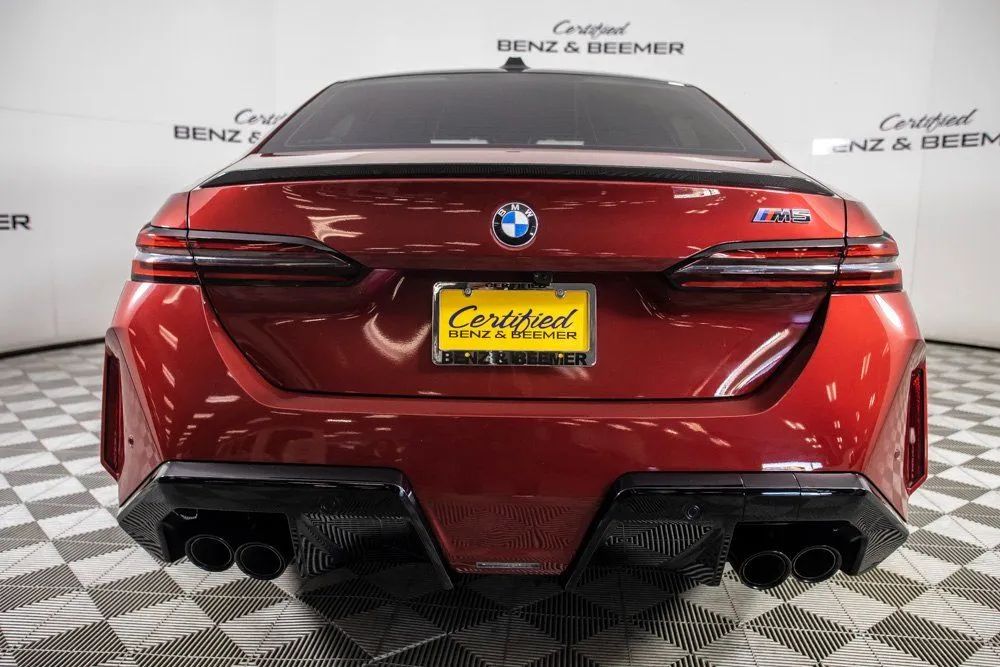 2025 BMW M5 Original MSRP: $128,525 This 2025 BMW M5 is a high-performance luxury sedan engineered for exhilarating power, advanced technology, and premium refinement. Equipped with the Carbon Package and the M Carbon Exterior Package, it features aggressive lightweight accents that enhance both aerodynamics and appearance. The Executive Package, a $1,850 upgrade, adds premium comfort amenities, while the Driving Assistance Pro Package, a $1,700 enhancement, delivers cutting-edge driver assistance and safety technology. Inside, the cabin pairs luxury with motorsport-inspired design, offering heated front and rear seats, ventilated front seats, rear sunshades, M seat belts, and Comfort Access keyless entry. The Harman Kardon Premium Sound System provides an immersive audio experience, while M Drive Pro and M Compound brakes with red calipers reinforce the M5s track-ready performance capabilities. Parking Assistant Plus and Active Driving Assistant Pro elevate confidence and convenience behind the wheel. Additional highlights include the BMW Iconic Glow Kidney Grille, Navigation/GPS, Apple CarPlay, and a Rear View Camera for modern connectivity and ease of use. Combining supercar-level performance with advanced technology and premium craftsmanship, this 2025 BMW M5 stands out as a thrilling, luxurious, and exceptionally well-equipped performance sedan. Certified & Inspected: This vehicle has been rigorously inspected and is backed by a 2-Year/100,000 Mile Signature Certified Limited Warranty, powered by Allstate The CBB Advantage: Your vehicle has been enhanced with the CBB Advantage Package, which includes: Premium Ceramic Paint Coating Ceramic Window Tint Applied immediately after our expert detailing process when the paint surface is at its cleanest these upgrades provide long-lasting protection, easier cleaning, and a showroom finish. While these enhancements typically cost $3,000+ at specialty shops, you’ll enjoy them for just $998 that will be added to the sales price. Ask a CBB Product Specialist about the many other benefits of the CBB Advantage. Certified Benz & Beemer Redefining the Luxury Car-Buying Experience. At Certified Benz & Beemer (CBB), our mission is simple: provide the highest-quality pre-owned luxury vehicles in a friendly, pressure-free environment. We believe that when trust and transparency lead the way, the result is the best car-buying experience you’ll ever have. Our dedication to customer satisfaction has earned us national recognition:DealerRater.com No. 1 Independent Dealer in the U.S. (2013)DealerRater.com No. 1 Independent Dealer in Arizona (since 2012) As the most trusted source for dealership reviews, DealerRater.com highlights what matters most: exceptional service, transparent pricing, and unforgettable experiences. Why Shop with CBB? We hand-select our luxury vehicles from across the Southwest and showcase them in our 92,000-square-foot climate-controlled showrooms. Every car we offer comes with full transparency: Best Upfront Pricing The CARFAX Vehicle History Report is based on data provided to CARFAX and may not include all information. We encourage every customer to review the CARFAX report, complete a physical inspection, and take a test drive for complete confidence. Second key & floor mats are included if pictured. Trade-in values can only be finalized after a physical inspection at our dealership. Certified Benz & Beemer. Luxury. Transparency. Trust.