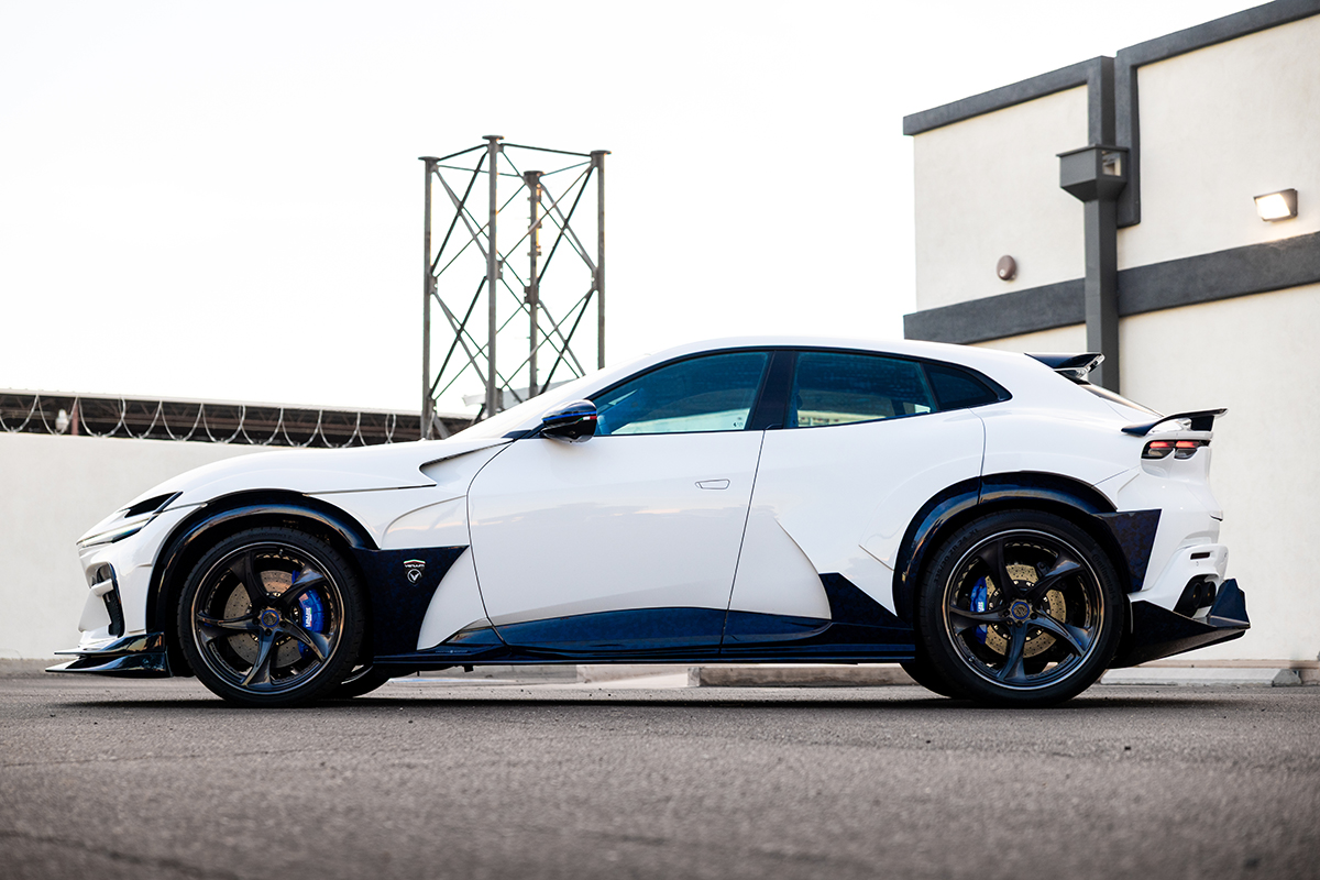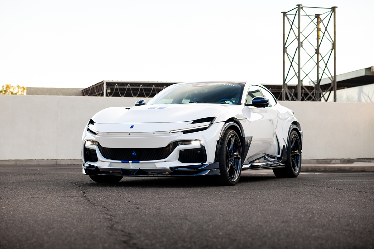 The 2025 Ferrari Purosangue is already a masterpiece—Ferrari’s first four-door, four-seat luxury performance SUV. Powered by a naturally aspirated 6.5-liter V12 producing 715 horsepower and engineered with a front-mid engine layout, it delivers an exhilarating top speed nearing 200 mph. But this is not your typical Purosangue. This exclusive model is equipped with the Venum Black Forged Carbon Widebody Kit, limited to only 25 units worldwide, and this is the only example available in North America. The widebody transformation dramatically reshapes the vehicle’s stance, presence, and overall aggression—turning a refined super-SUV into a commanding work of automotive art. What truly sets this Venum kit apart is the Blue Kandy Forged Carbon, a striking finish that elevates every sculpted component into a visual statement. Venuum Black, together with Creative Bespoke, brought this masterpiece to life — and this exclusive build is now available for sale.