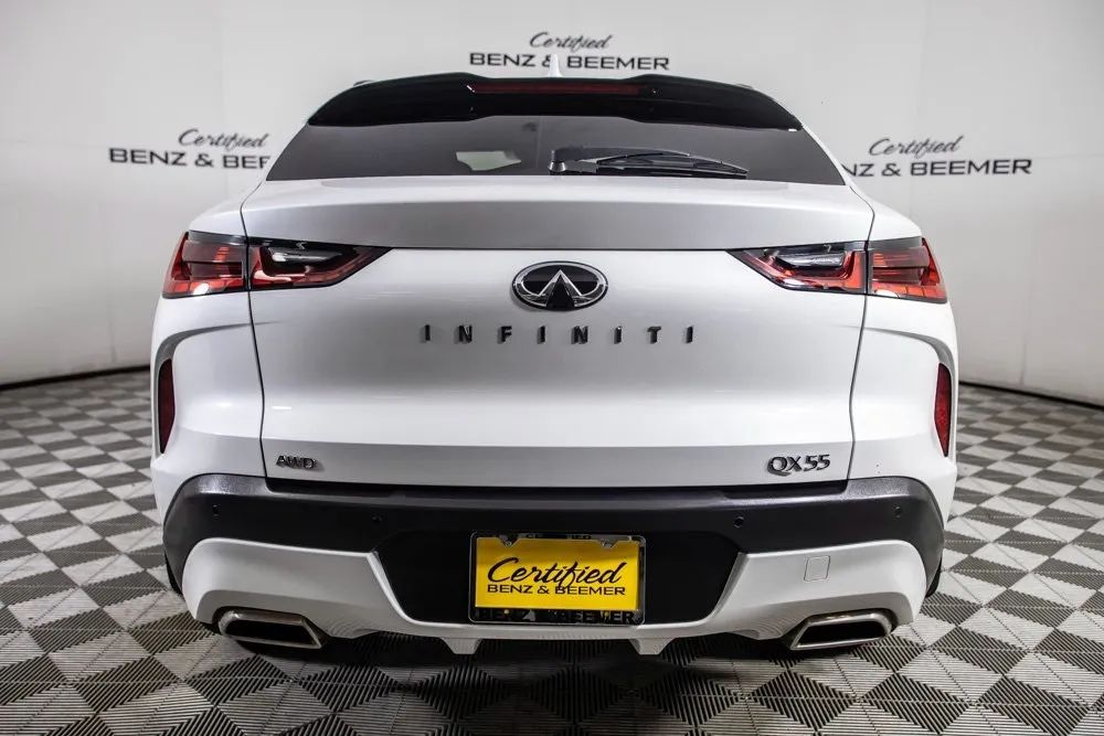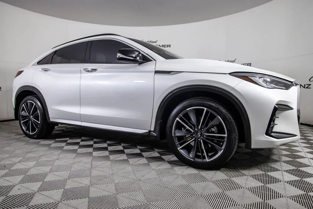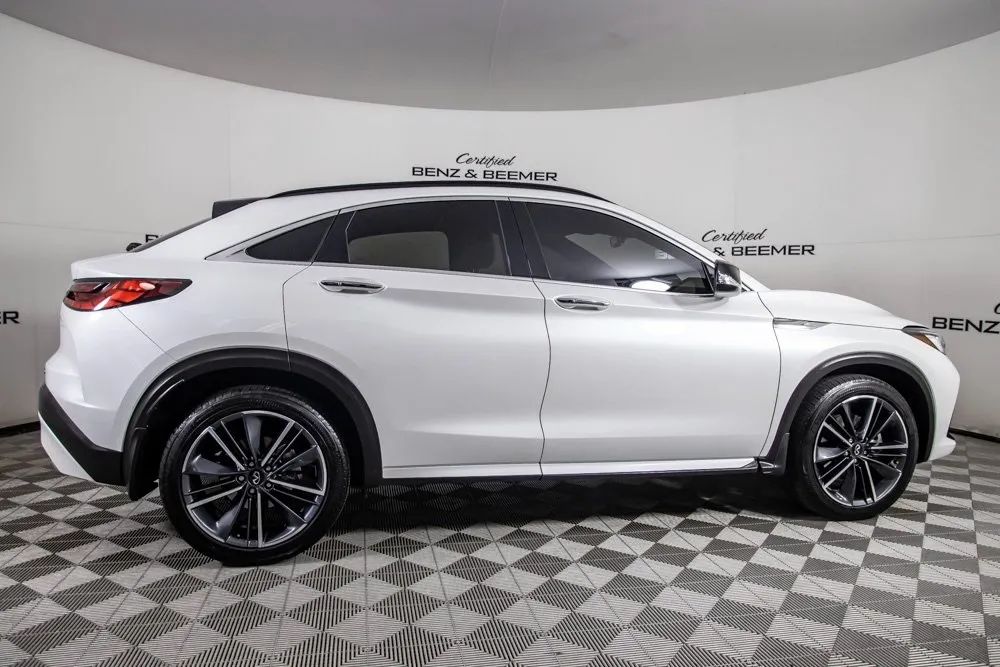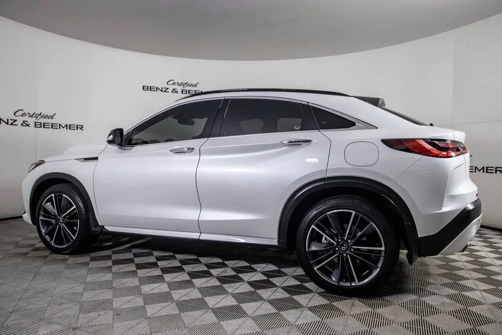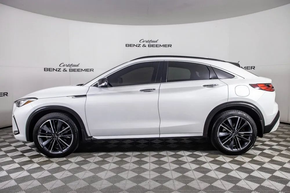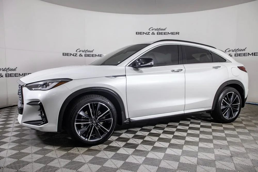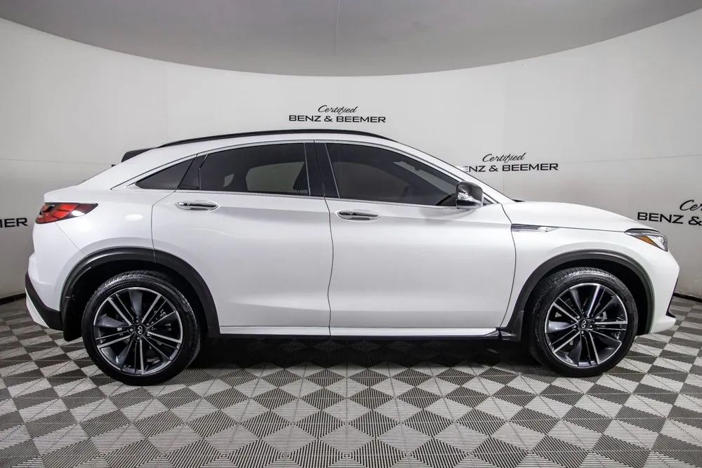 2025 Infiniti QX55 Luxe Original MSRP: $53,650 This 2025 Infiniti QX55 Luxe offers a modern blend of style, comfort, and everyday practicality, highlighted by its sleek Radiant White exterior finish and refined Stone Leather interior. Its coupe-inspired crossover design delivers a sporty and upscale presence, while the cabin provides a welcoming environment with thoughtful craftsmanship and premium materials throughout. Comfort features include Heated Front Seats, Front Dual Zone Climate Control, and a Power Moonroof that enhances the interior with natural light and an open, airy feel. Practicality is elevated with the Cargo Package, a Power Liftgate, and Remote Keyless Entry, making daily use convenient and efficient. Technology is seamlessly integrated with Apple CarPlay, a Rear View Camera for improved visibility, and a 6-speaker sound system that provides crisp audio quality. Combining stylish design, modern connectivity, and a well-appointed interior, this 2025 QX55 Luxe delivers a versatile and sophisticated driving experience. Certified & Inspected: This vehicle has been rigorously inspected and is backed by a 2-Year/100,000 Mile Signature Certified Limited Warranty, powered by Allstate The CBB Advantage: Your vehicle has been enhanced with the CBB Advantage Package, which includes: Premium Ceramic Paint Coating Ceramic Window Tint Applied immediately after our expert detailing process when the paint surface is at its cleanest these upgrades provide long-lasting protection, easier cleaning, and a showroom finish. While these enhancements typically cost $3,000+ at specialty shops, you’ll enjoy them for just $998 that will be added to the sales price. Ask a CBB Product Specialist about the many other benefits of the CBB Advantage. Certified Benz & Beemer Redefining the Luxury Car-Buying Experience. At Certified Benz & Beemer (CBB), our mission is simple: provide the highest-quality pre-owned luxury vehicles in a friendly, pressure-free environment. We believe that when trust and transparency lead the way, the result is the best car-buying experience you’ll ever have. Our dedication to customer satisfaction has earned us national recognition:DealerRater.com No. 1 Independent Dealer in the U.S. (2013)DealerRater.com No. 1 Independent Dealer in Arizona (since 2012) As the most trusted source for dealership reviews, DealerRater.com highlights what matters most: exceptional service, transparent pricing, and unforgettable experiences. Why Shop with CBB? We hand-select our luxury vehicles from across the Southwest and showcase them in our 92,000-square-foot climate-controlled showrooms. Every car we offer comes with full transparency: Best Upfront Pricing The CARFAX Vehicle History Report is based on data provided to CARFAX and may not include all information. We encourage every customer to review the CARFAX report, complete a physical inspection, and take a test drive for complete confidence. Second key & floor mats are included if pictured. Trade-in values can only be finalized after a physical inspection at our dealership. Certified Benz & Beemer. Luxury. Transparency. Trust.