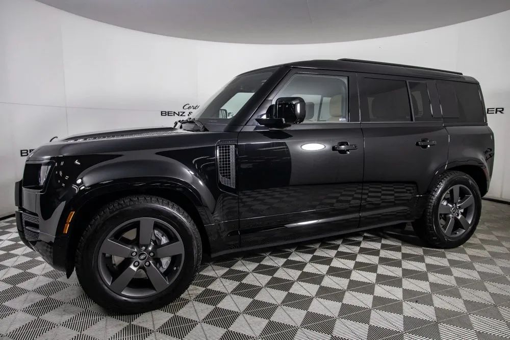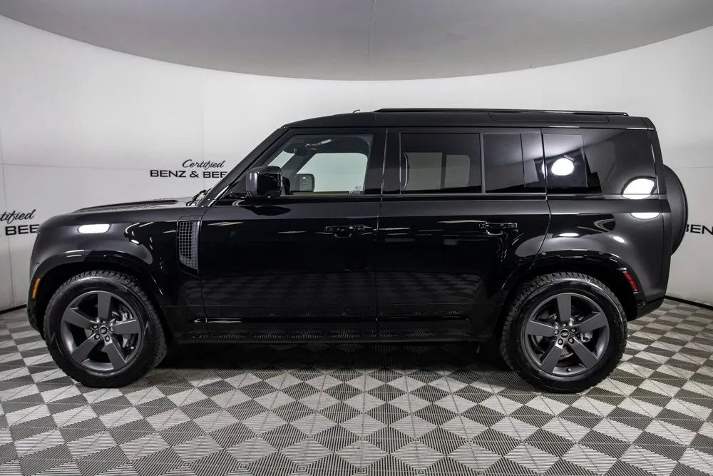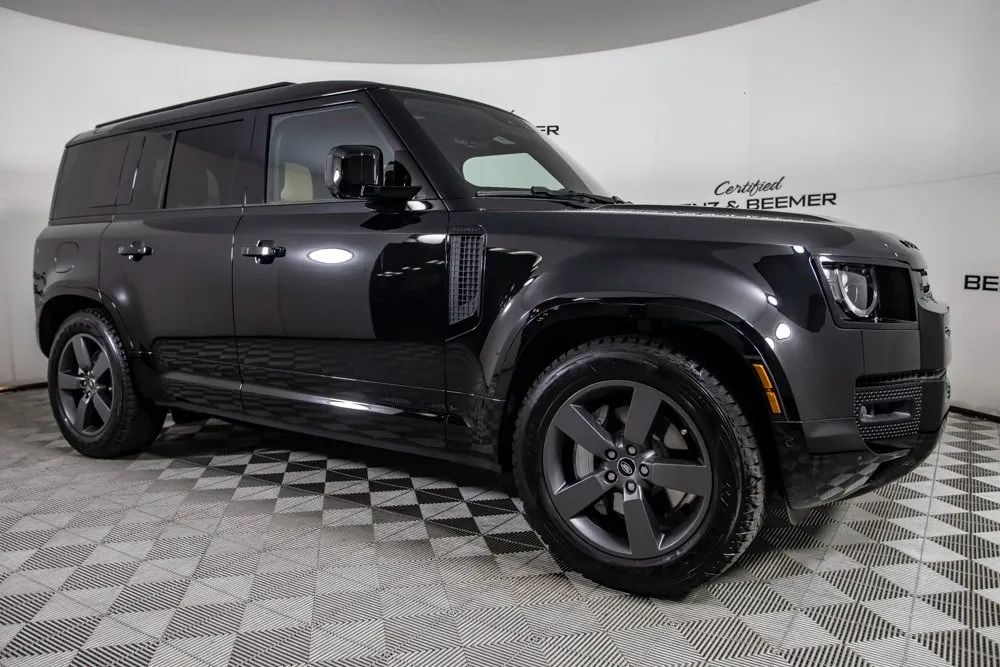 2025 Land Rover Defender 110X blends iconic off-road capability with elevated luxury and modern refinement. Finished in striking Santorini Black Metallic and equipped with 20-inch Satin Dark Grey Wheels, it commands attention with a bold, sophisticated presence. The Caraway/Ebony Windsor Leather Interior showcases exquisite craftsmanship, complemented by 14-Way Power Front Seats that are both Heated and Cooled for personalized comfort in any climate. A Power Moonroof enhances the cabins airy atmosphere, while the Meridian Premium Sound System delivers rich, immersive audio worthy of the Defenders upscale environment. Technology and convenience are seamlessly integrated with Remote Keyless Entry, Apple CarPlay, and a Rear View Camera for added confidence. Designed to excel on rugged terrain yet refined enough for daily driving, this Defender 110X offers a perfect balance of adventure-ready capability and high-end luxury crafted for those who demand strength, sophistication, and unmistakable Land Rover presence. Certified & Inspected: This vehicle has been rigorously inspected and is backed by a 2-Year/100,000 Mile Signature Certified Limited Warranty, powered by Allstate The CBB Advantage: Your vehicle has been enhanced with the CBB Advantage Package, which includes: Premium Ceramic Paint Coating Ceramic Window Tint Applied immediately after our expert detailing process when the paint surface is at its cleanest these upgrades provide long-lasting protection, easier cleaning, and a showroom finish. While these enhancements typically cost $3,000+ at specialty shops, you’ll enjoy them for just $998 added to the sales price. Ask a CBB Product Specialist about the many other benefits of the CBB Advantage. Certified Benz & Beemer Redefining the Luxury Car-Buying Experience. At Certified Benz & Beemer (CBB), our mission is simple: provide the highest-quality pre-owned luxury vehicles in a friendly, pressure-free environment. We believe that when trust and transparency lead the way, the result is the best car-buying experience you’ll ever have. Our dedication to customer satisfaction has earned us national recognition:DealerRater.com No. 1 Independent Dealer in the U.S. (2013)DealerRater.com No. 1 Independent Dealer in Arizona (since 2012) As the most trusted source for dealership reviews, DealerRater.com highlights what matters most: exceptional service, transparent pricing, and unforgettable experiences. Why Shop with CBB? We hand-select our luxury vehicles from across the Southwest and showcase them in our 92,000-square-foot climate-controlled showrooms. Every car we offer comes with full transparency: Best Upfront Pricing The CARFAX Vehicle History Report is based on data provided to CARFAX and may not include all information. We encourage every customer to review the CARFAX report, complete a physical inspection, and take a test drive for complete confidence. Second key & floor mats are included if pictured. Trade-in values can only be finalized after a physical inspection at our dealership. Certified Benz & Beemer. Luxury. Transparency. Trust.