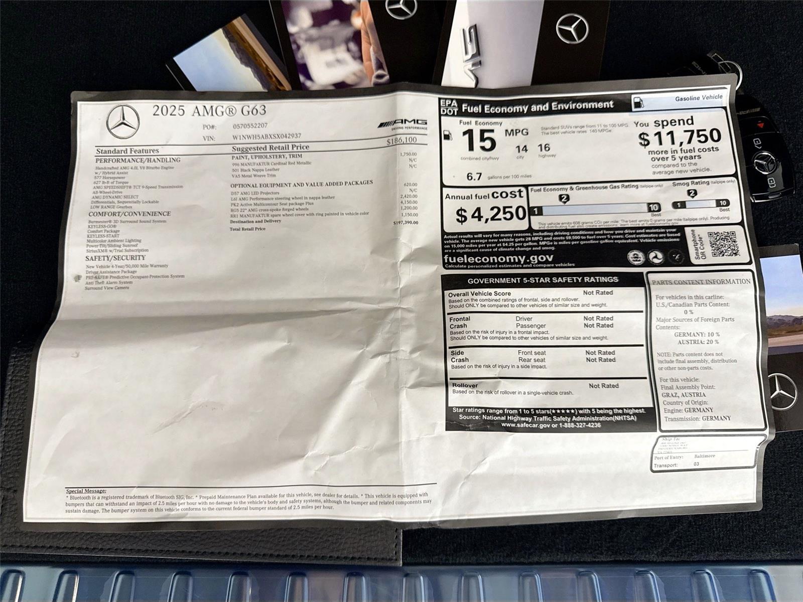 Luxury Auto Collection is pleased to offer this 2025 Mercedes-Benz G-Class AMG G 63 | Seat Comfort Pkg | Paint Matched Wheel Cover.nnNo Accidents! n nOTHER NOTABLE FEATURES AND OPTIONS YOU SHOULD KNOW ABOUT:nn*Wheels: 22 AMG Cross Spoke Forged – $4,150 nn*Seat Comfort Package – $2,420nn*Spare Wheel Cover in Vehicle Color – $1,200nnn