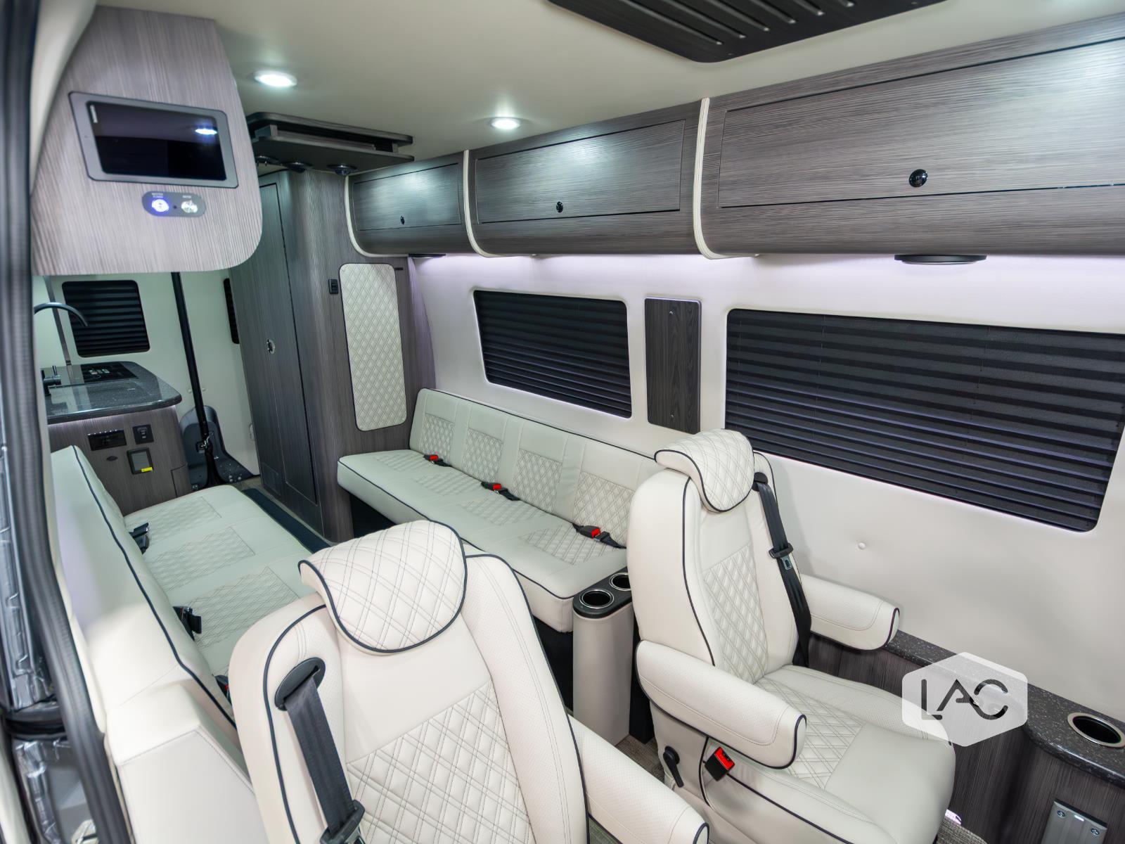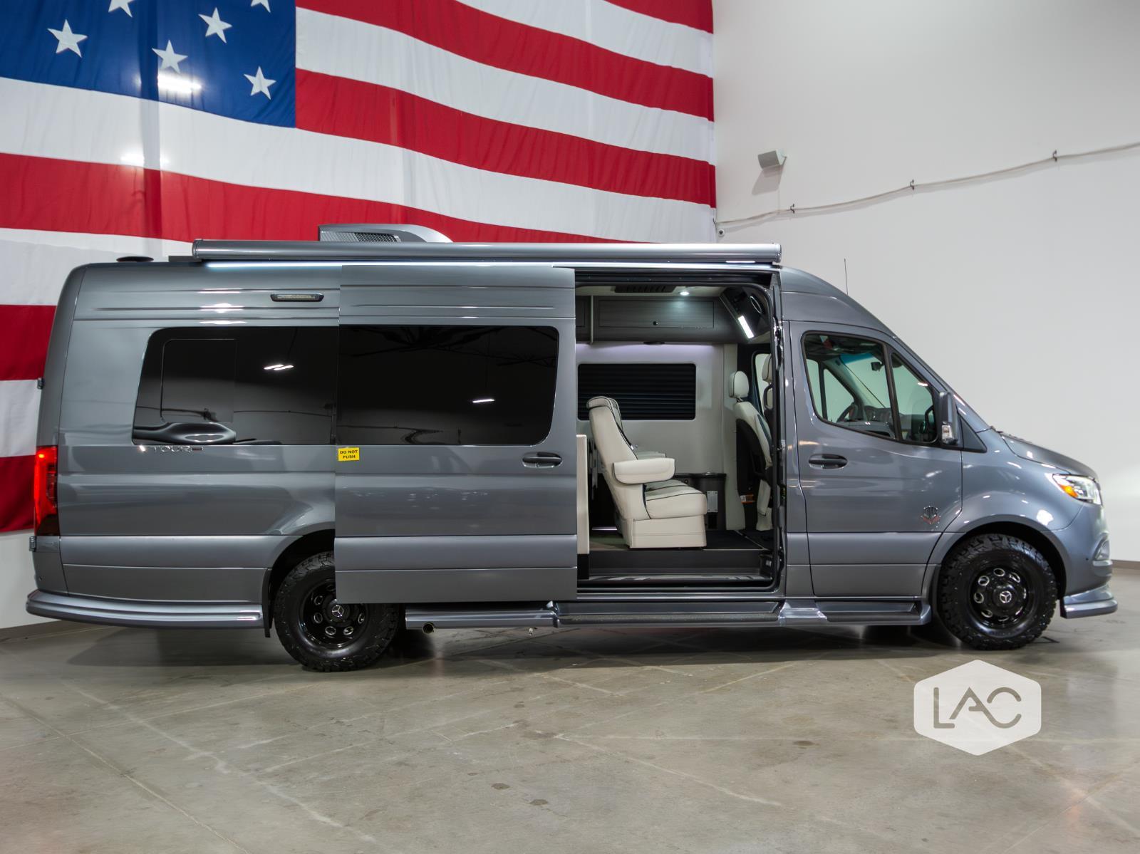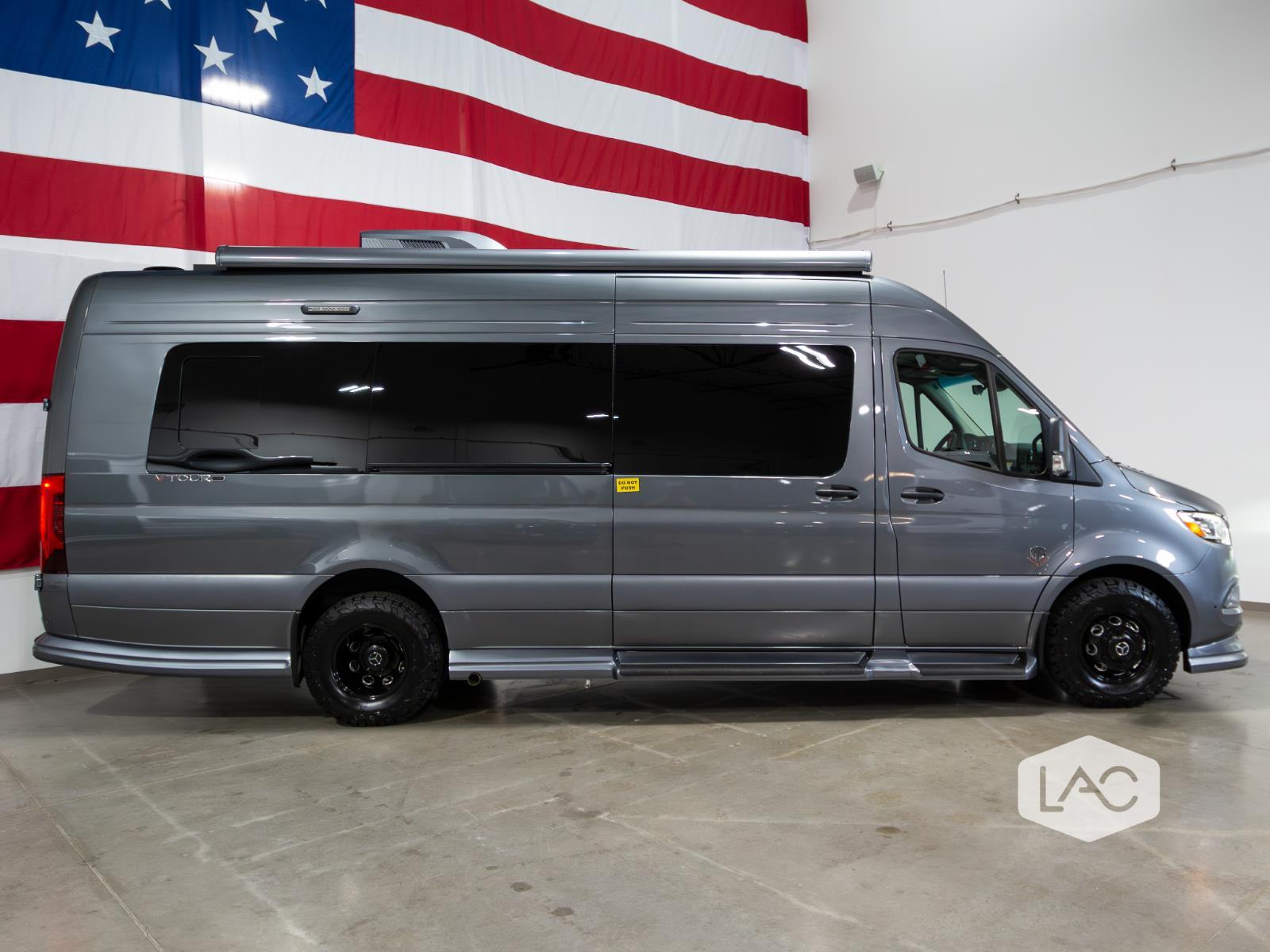 NEW 2025 OGV Luxury Coach V-TOUR Lithium Coach 10-Pass/Sleeps-2 Rear Full Bath Not all luxury vans are created equal, and this fantastic V-TOUR is proof! Check out its eye-catching Tenorite Grey Metallic exterior and Cream w/ Black Stitch interior.