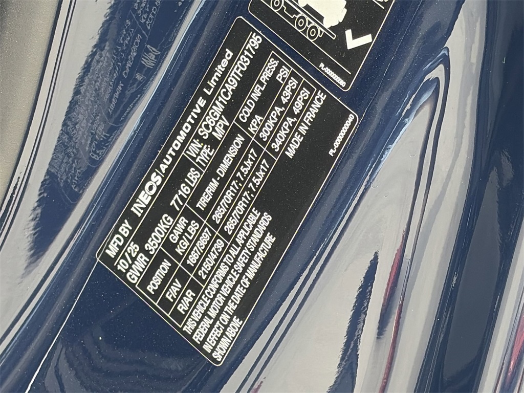 This NEW 2026 Blue INEOS Grenadier 3.0L I6 8-Speed Automatic 4WD is well equipped and includes these features and benefits:4-Wheel Disc Brakes, ABS brakes, Air Conditioning, AM/FM radio, Anti-whiplash front head restraints, Auto High-beam Headlights, Automatic temperature control, Bodyside moldings, Bumpers: body-color, Compass, Driver door bin, Dual front impact airbags, Dual front side impact airbags, Electronic Stability Control, Exterior Parking Camera Rear, Front anti-roll bar, Front Bucket Seats, Front Center Armrest, Front reading lights, Heated door mirrors, Illuminated entry, Knee airbag, Leather Seat Trim, Leather steering wheel, Low tire pressure warning, Navigation System, Occupant sensing airbag, Outside temperature display, Overhead airbag, Overhead console, Panic alarm, Passenger door bin, Power door mirrors, Power steering, Power windows, Premium Sound System, Radio: Central Control System with Navigation, Rear anti-roll bar, Rear fog lights, Rear window defroster, Rear window wiper, Remote keyless entry, Security system, Speed control, Speed-sensing steering, Split folding rear seat, Steering wheel mounted audio controls, Tachometer, Telescoping steering wheel, Tilt steering wheel, Traction control, Trip computer, Variably intermittent wipers.Looking for a rugged 4X4 built for real work and real adventure? Our sales team knows the INEOS Grenadier inside and out. We’ll walk you through its uncompromising capability and ensure you find the right model for your off-road ambitions.