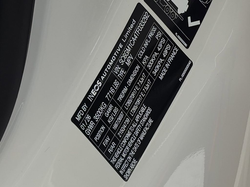 This NEW 2026 Scottish White INEOS Grenadier 3.0L I6 8-Speed Automatic 4WD is well equipped and includes these features and benefits:4-Wheel Disc Brakes, ABS brakes, Air Conditioning, AM/FM radio, Anti-whiplash front head restraints, Auto High-beam Headlights, Automatic temperature control, Bodyside moldings, Bumpers: body-color, Compass, Driver door bin, Dual front impact airbags, Dual front side impact airbags, Electronic Stability Control, Exterior Parking Camera Rear, Front anti-roll bar, Front Bucket Seats, Front Center Armrest, Front reading lights, Heated door mirrors, Illuminated entry, Knee airbag, Leather Seat Trim, Leather steering wheel, Low tire pressure warning, Navigation System, Occupant sensing airbag, Outside temperature display, Overhead airbag, Overhead console, Panic alarm, Passenger door bin, Power door mirrors, Power steering, Power windows, Premium Sound System, Radio: Central Control System with Navigation, Rear anti-roll bar, Rear fog lights, Rear window defroster, Rear window wiper, Remote keyless entry, Security system, Speed control, Speed-sensing steering, Split folding rear seat, Steering wheel mounted audio controls, Tachometer, Telescoping steering wheel, Tilt steering wheel, Traction control, Trip computer, Variably intermittent wipers.Looking for a rugged 4X4 built for real work and real adventure? Our sales team knows the INEOS Grenadier inside and out. We’ll walk you through its uncompromising capability and ensure you find the right model for your off-road ambitions.